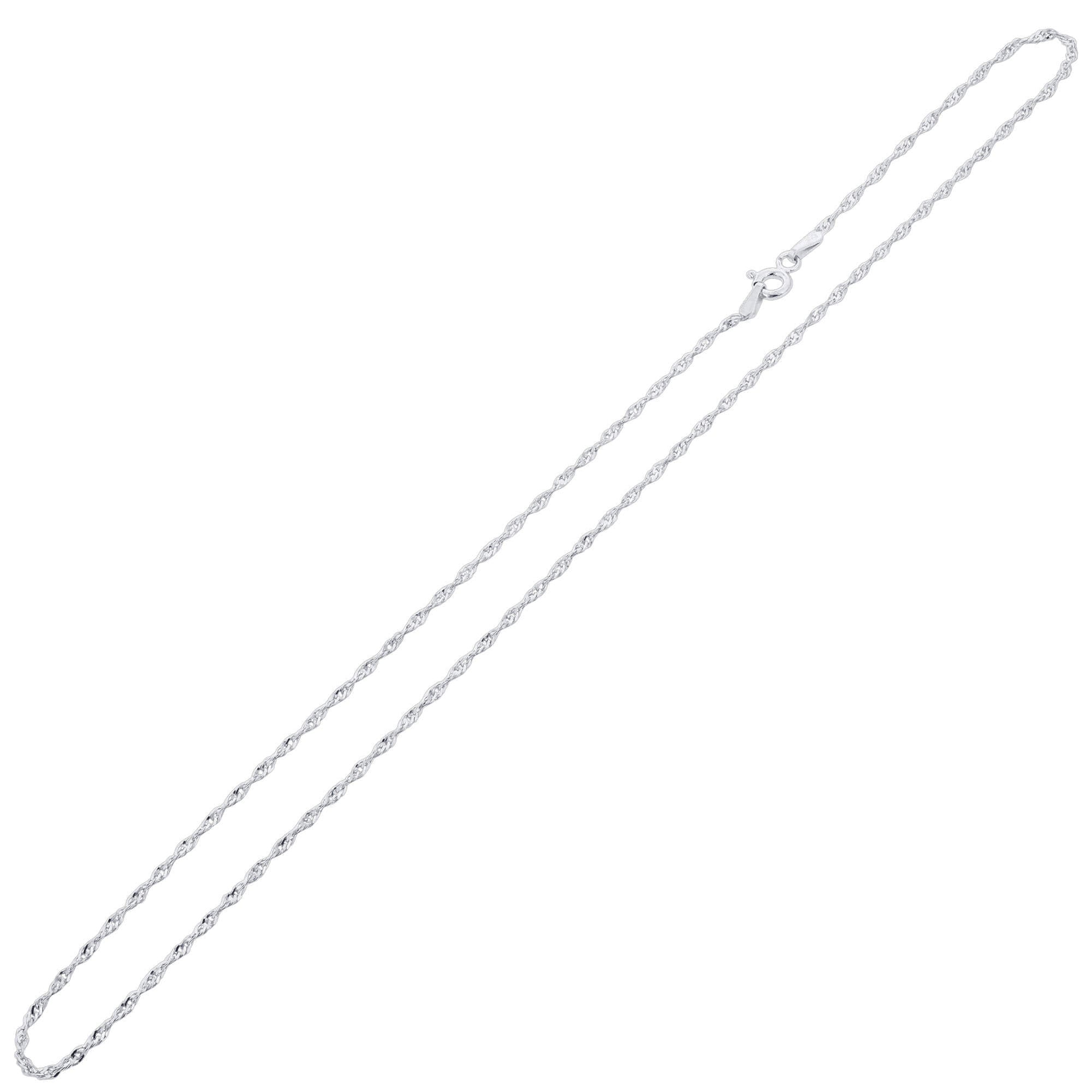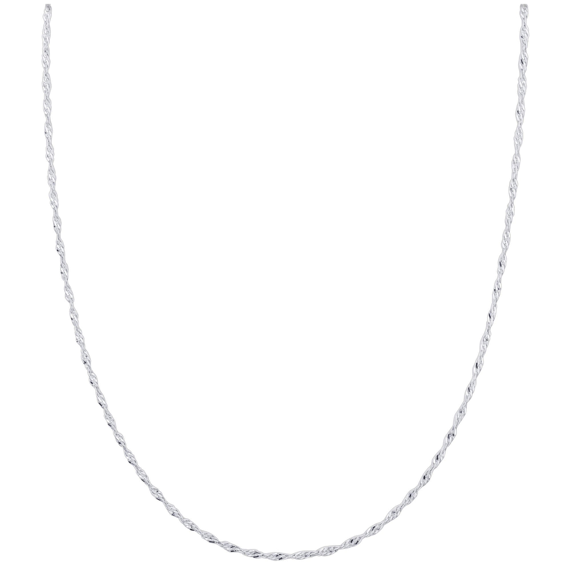 These fabulous rhodium-plated sterling silver chain necklaces are a must-have with any outfit to add a nice, subtle, chic touch! We offer these Singapore chain necklaces in a variety of sizes in order for you to get the perfect fit you’re searching for. We have sizes 16 in, 18 in, 20 in, 22 in, 24 in, and 30 in. These chain necklaces contain a thickness of 1 mm along with a lobster clasp to ensure a secure and comfortable fit. Wear it alone or add a pop of color with one of our stunning pendants from our extensive collection. Here at Gem Avenue, we pride ourselves on providing great-quality products in order to bring satisfaction to all customers!