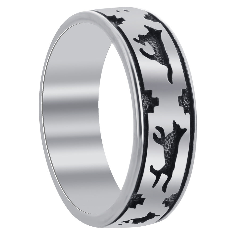 Crafted from .925 sterling silver, this 6mm band ring features the classic Running Wolf design. Intricately engraved into the metal, the polished silver finish brings out the timeless beauty. Enjoy a lasting reminder of strength and power with this elegant symbol. This Running Wolf 925 Sterling Silver 6mm Band Ring features a distinctive Southwestern Style design. Crafted from the finest sterling silver, this accessory adds a touch of sophistication and class to any ensemble.