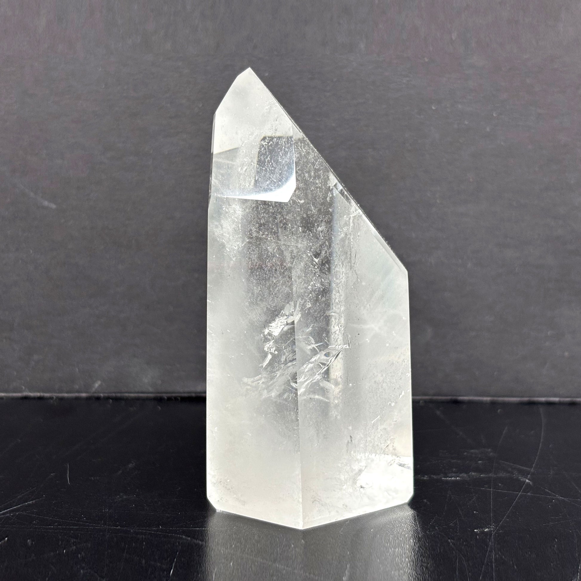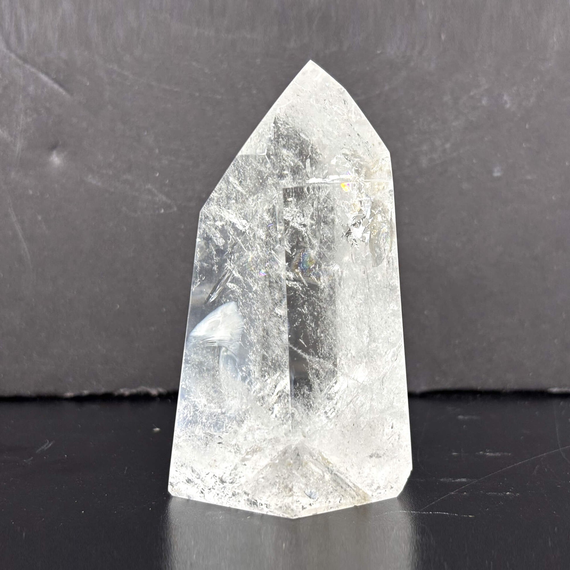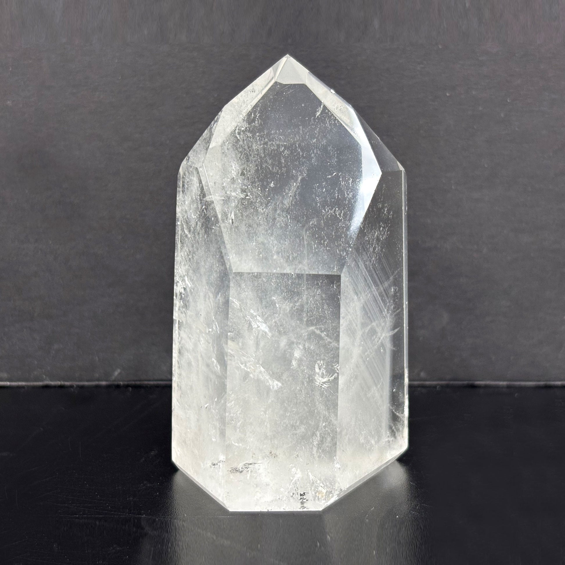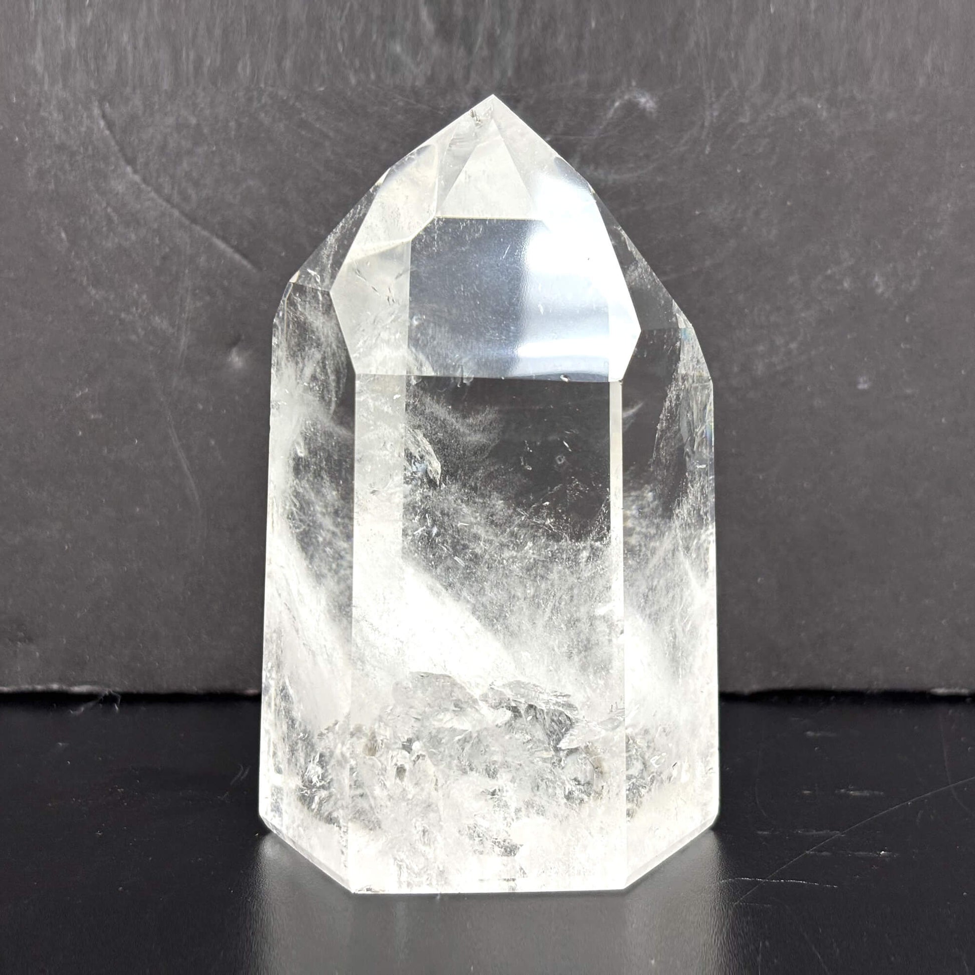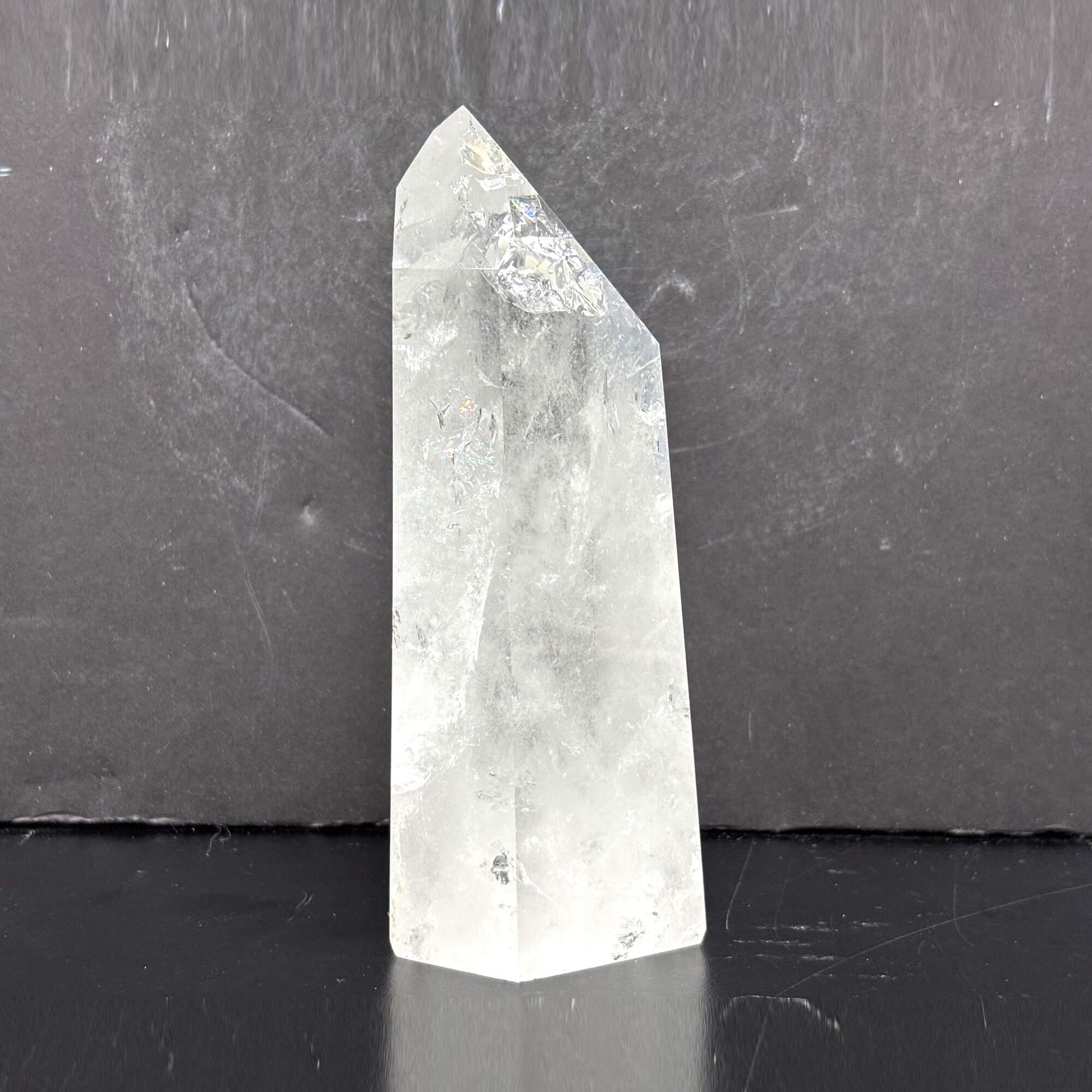 Introducing our Natural Clear Quartz Tower, a stunning and powerful crystal point meticulously crafted from high-quality Brazilian quartz. The crystal's natural clarity and smooth, glossy finish make it a beautiful addition to any space.