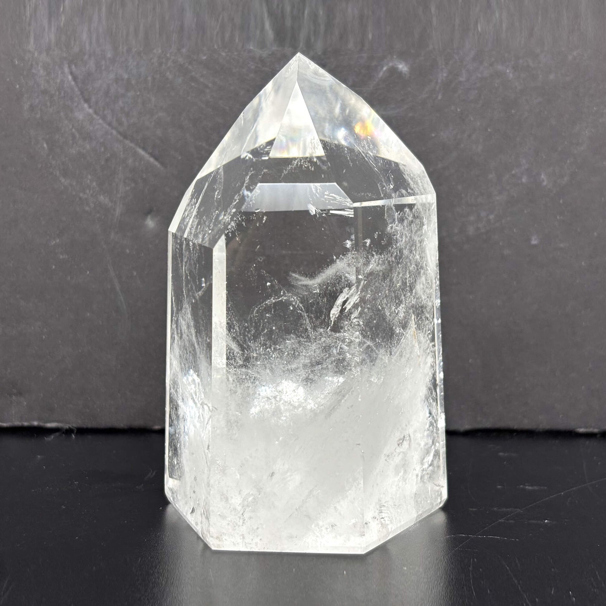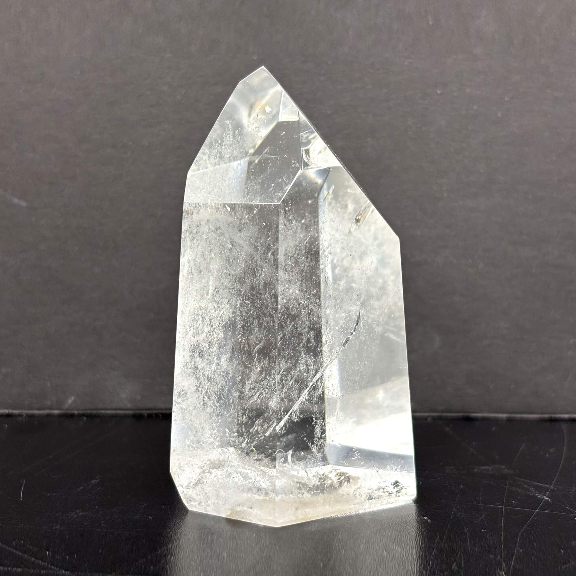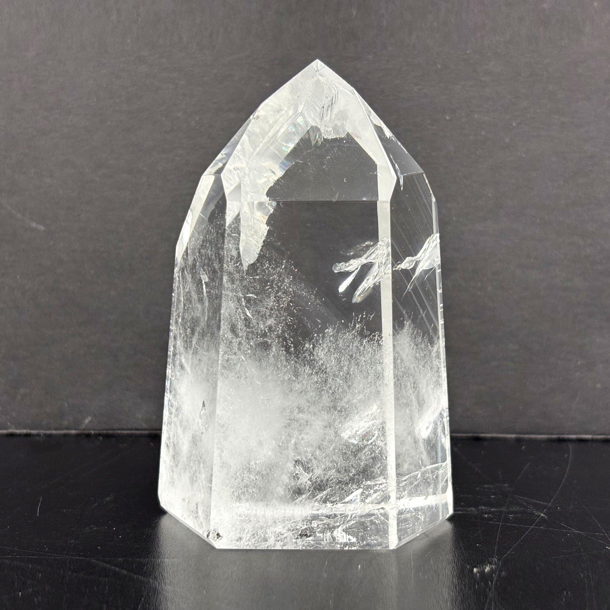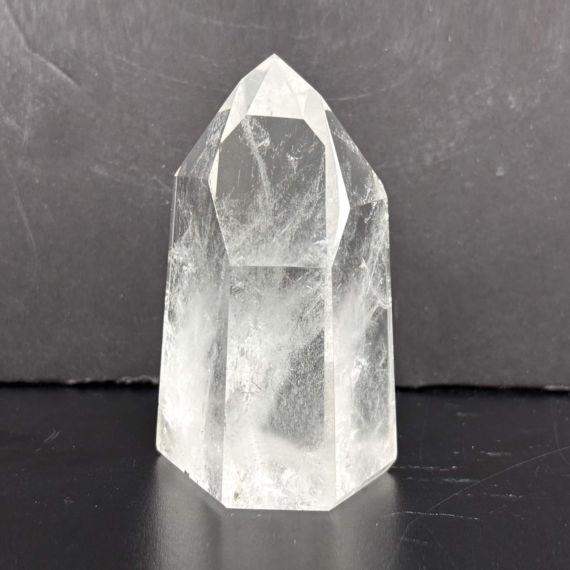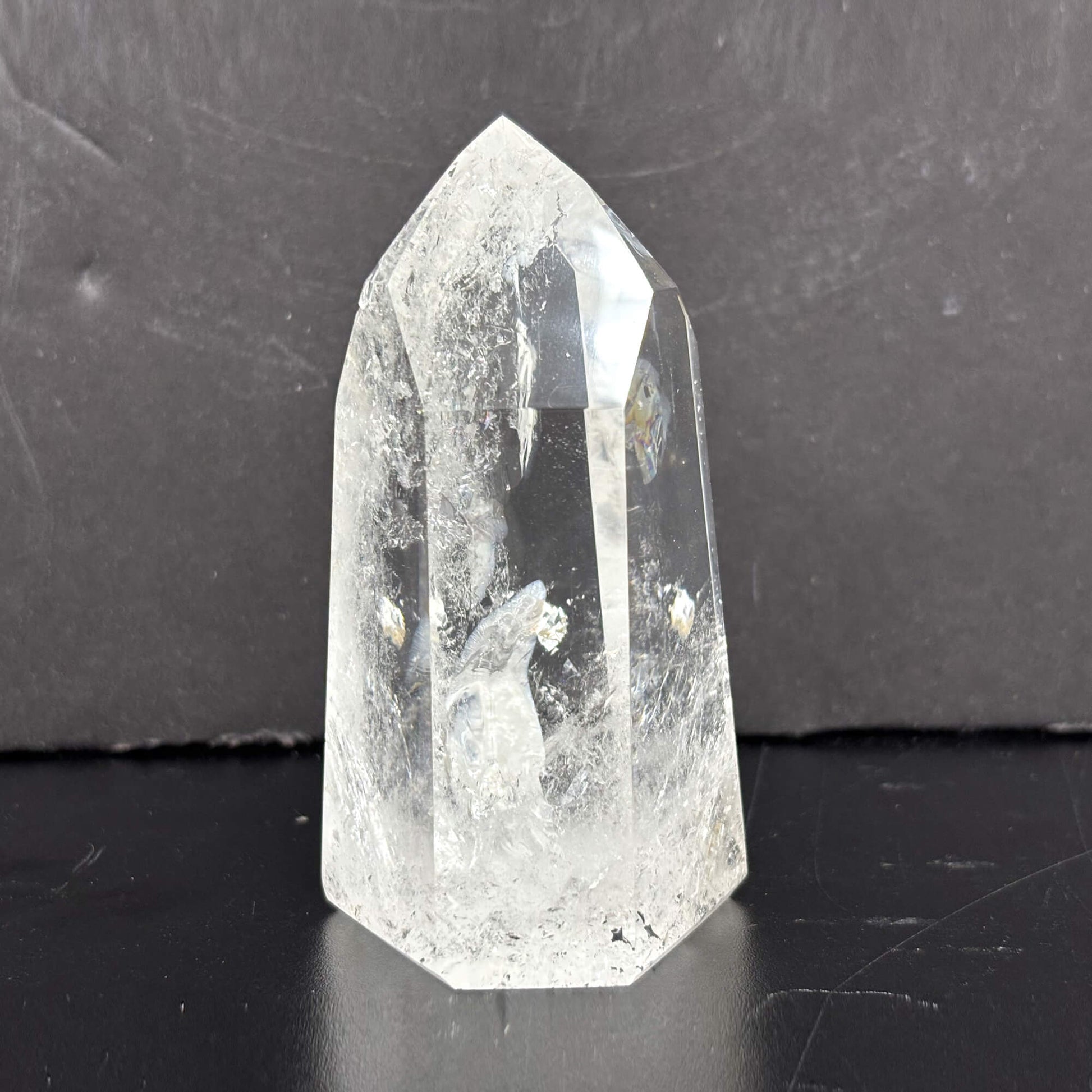Introducing our Natural Clear Quartz Tower, a stunning and powerful crystal point meticulously crafted from high-quality Brazilian quartz. The crystal's natural clarity and smooth, glossy finish make it a beautiful addition to any space.