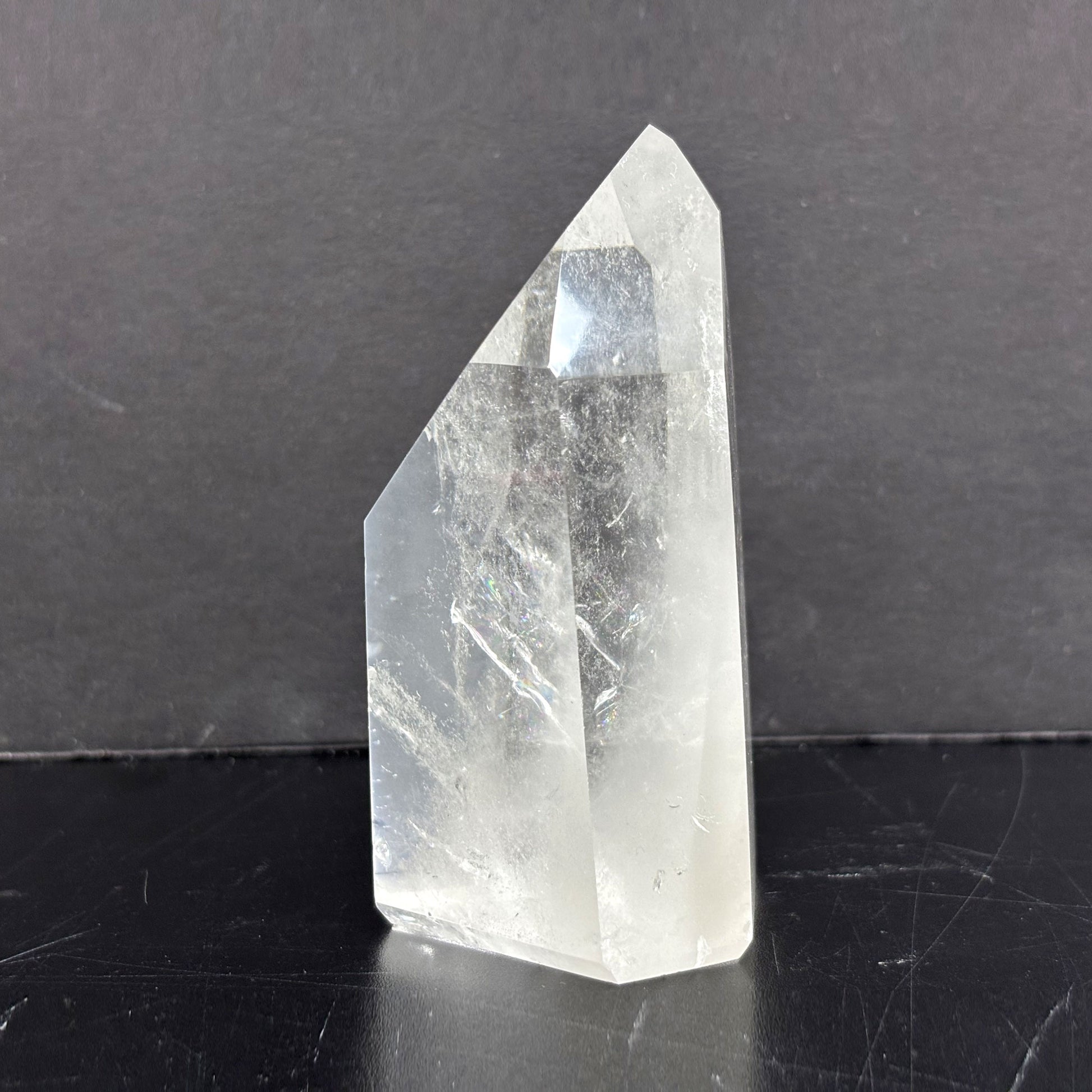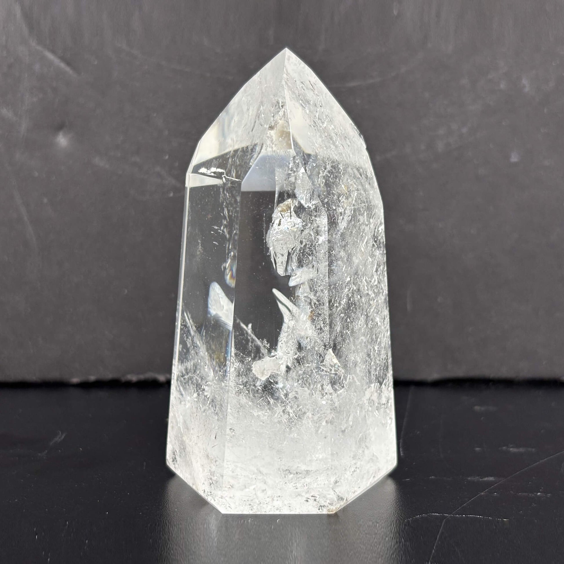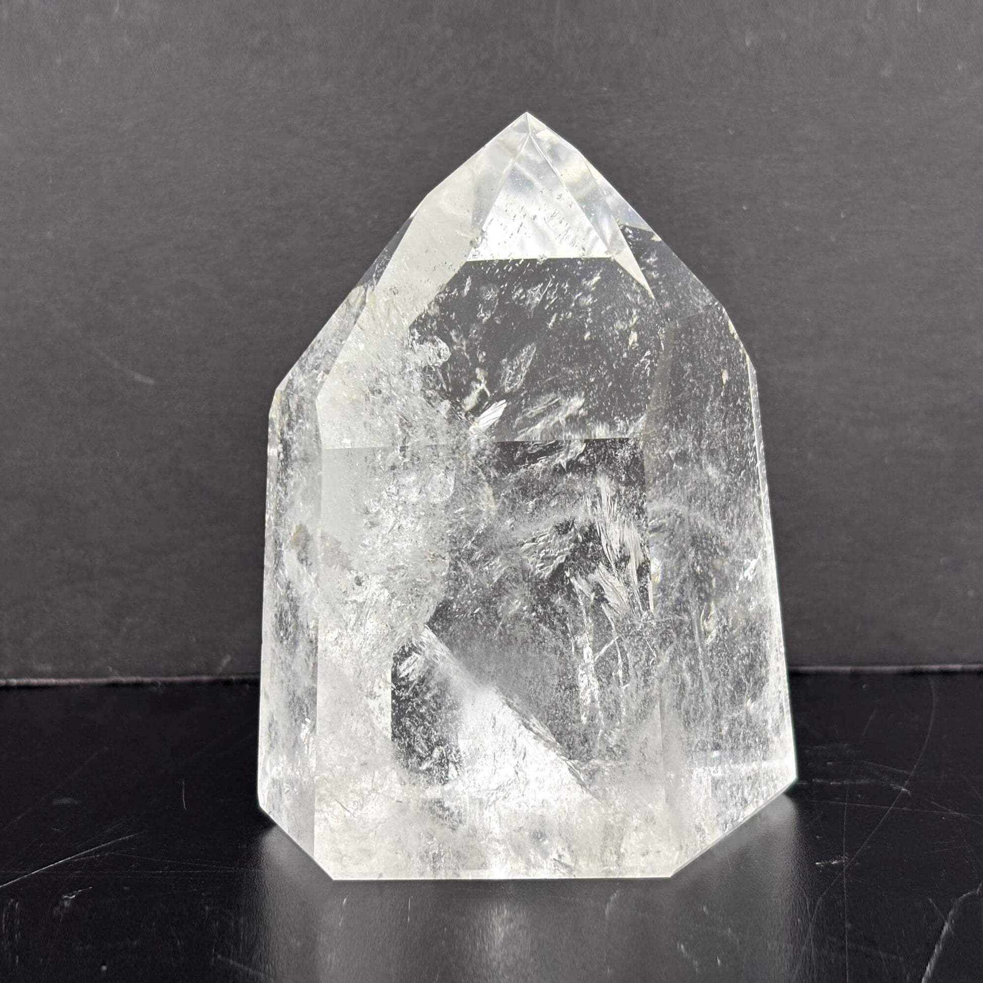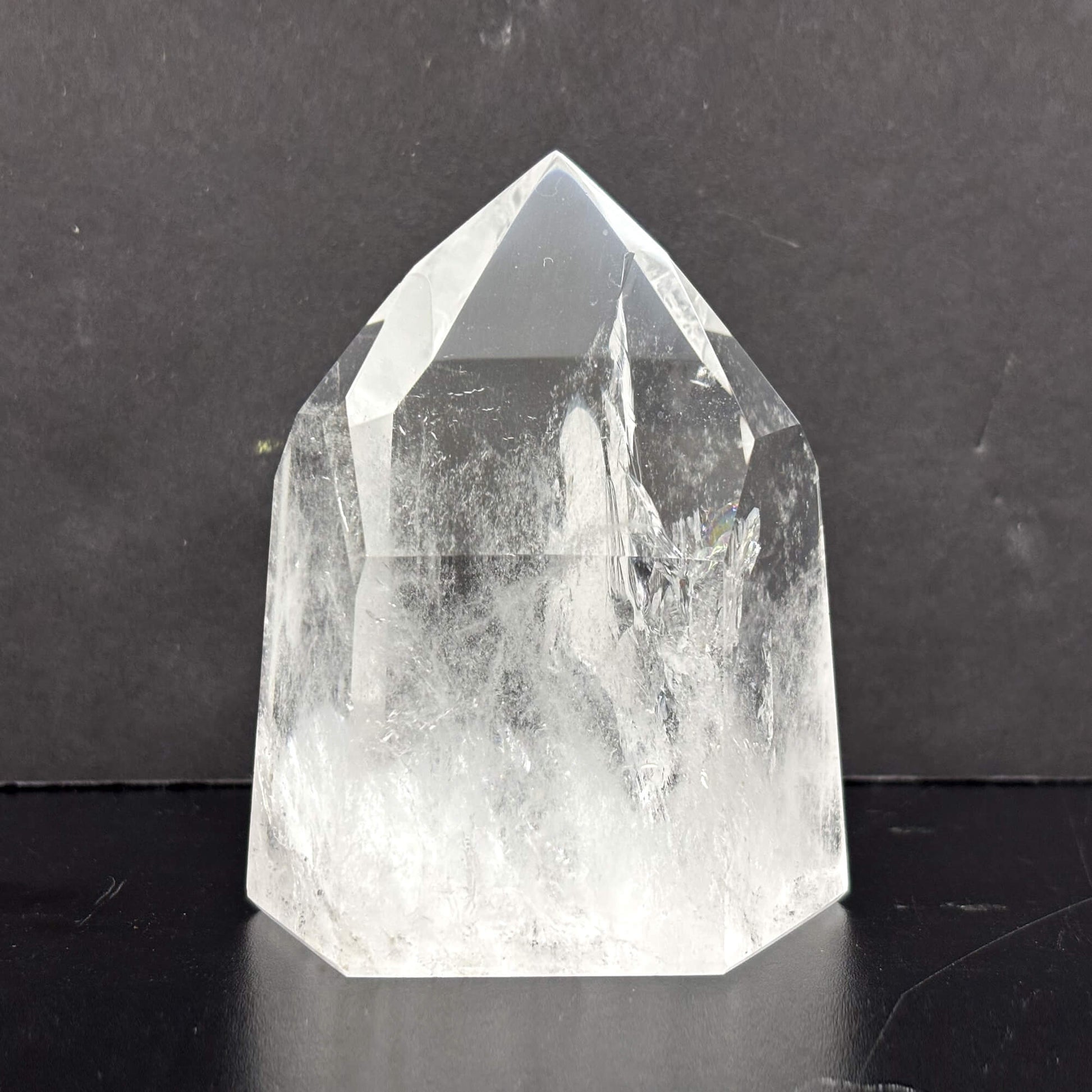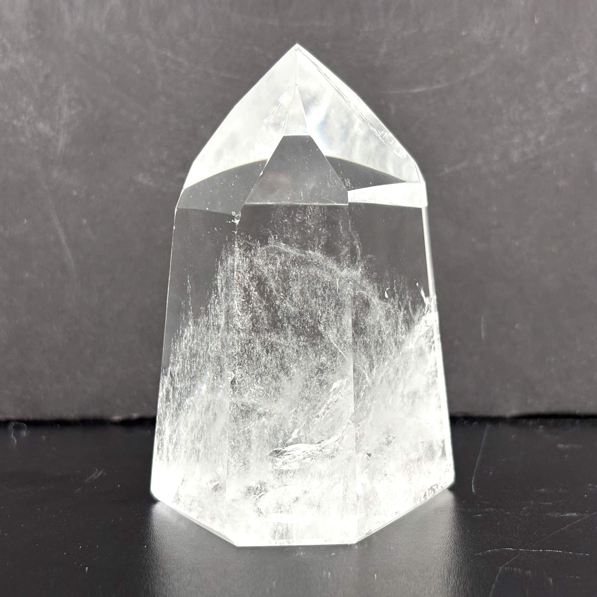 Introducing our Natural Clear Quartz Tower, a stunning and powerful crystal point meticulously crafted from high-quality Brazilian quartz. The crystal's natural clarity and smooth, glossy finish make it a beautiful addition to any space.