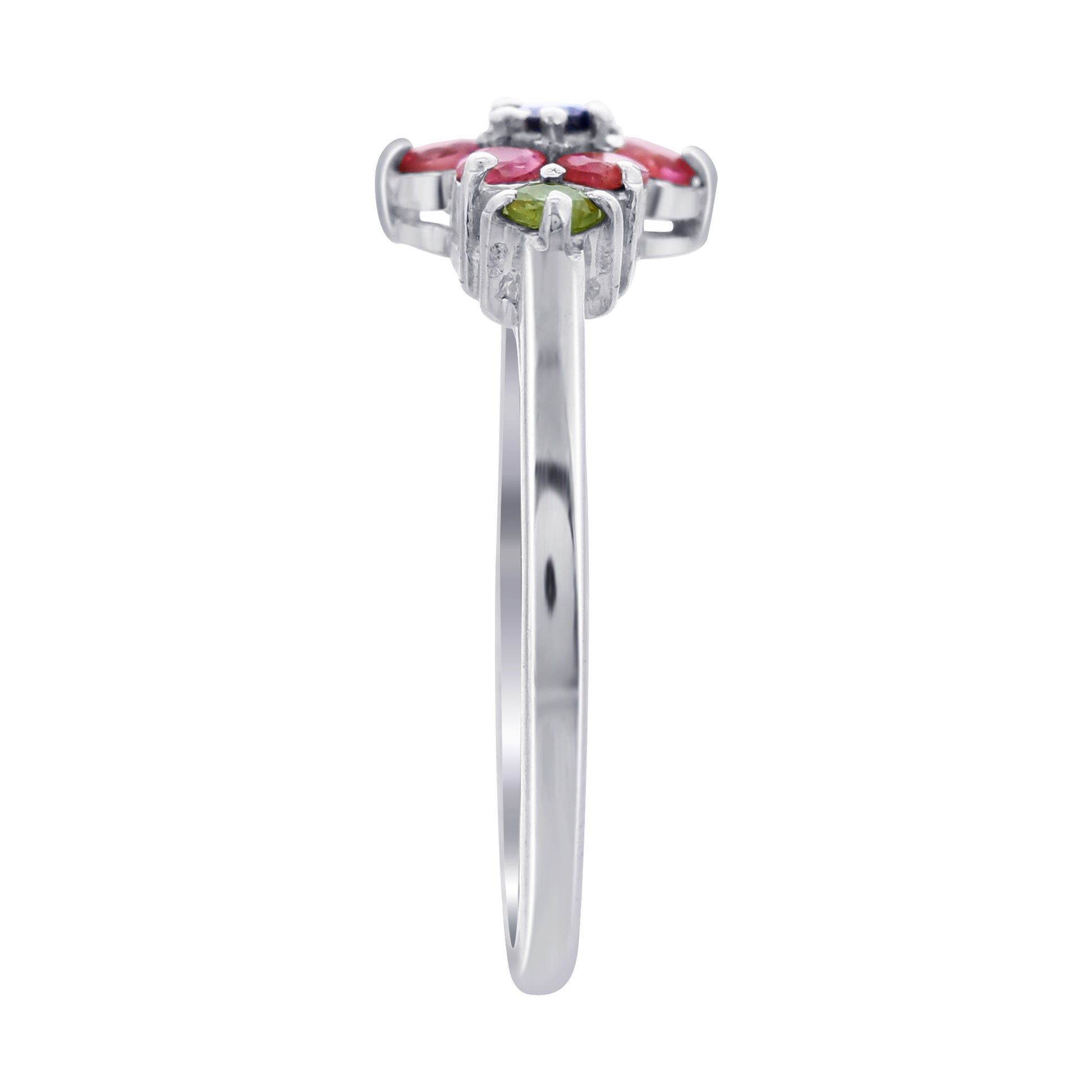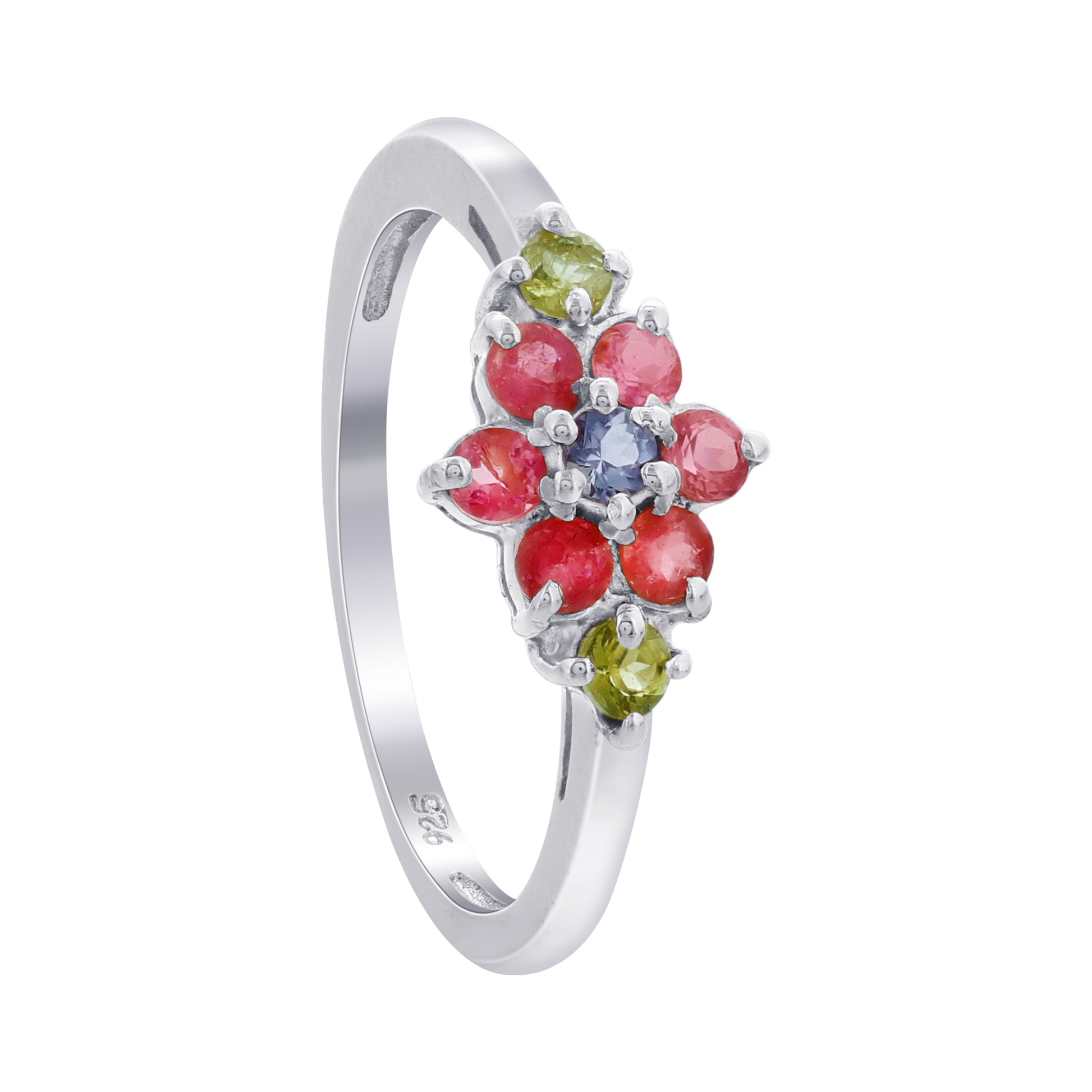 Add a splash of elegance and color to your jewelry collection with this 925 Sterling Silver Floral Gemstone Ring. Expertly crafted for women, this ring features a multicolor tourmaline flower design that radiates charm and sophistication. Its delicate 2mm band ensures comfort, while the vibrant gemstone measuring 9mm in length and 7mm in width serves as the centerpiece of this statement piece. Weighing just 2.14 grams, this lightweight yet durable ring is perfect for daily wear or special occasions. Ideal as an anniversary, promise, or gift ring, its a timeless treasure for yourself or a loved one.