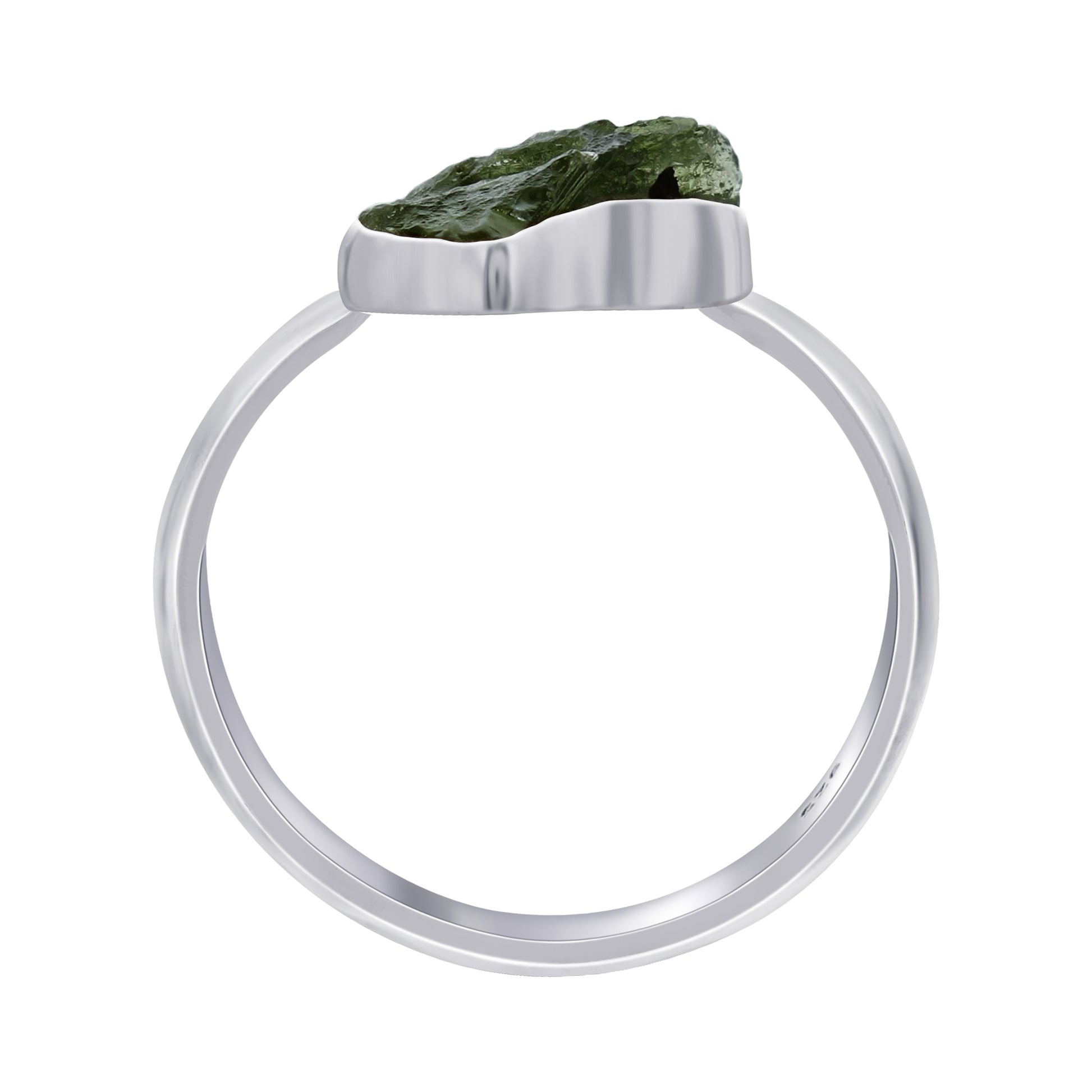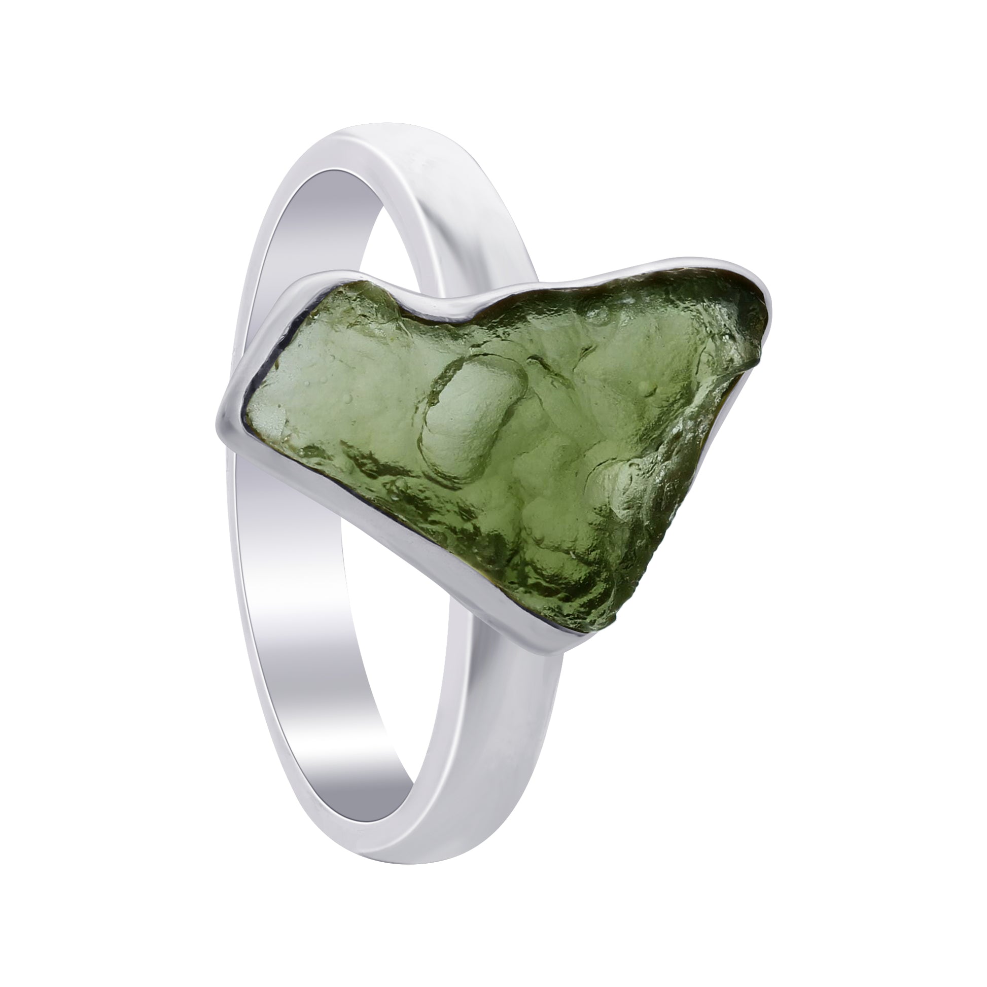 - title_tag : Sterling Silver Raw Moldavite Ring Size 8 Natural Green Crystal - GR543