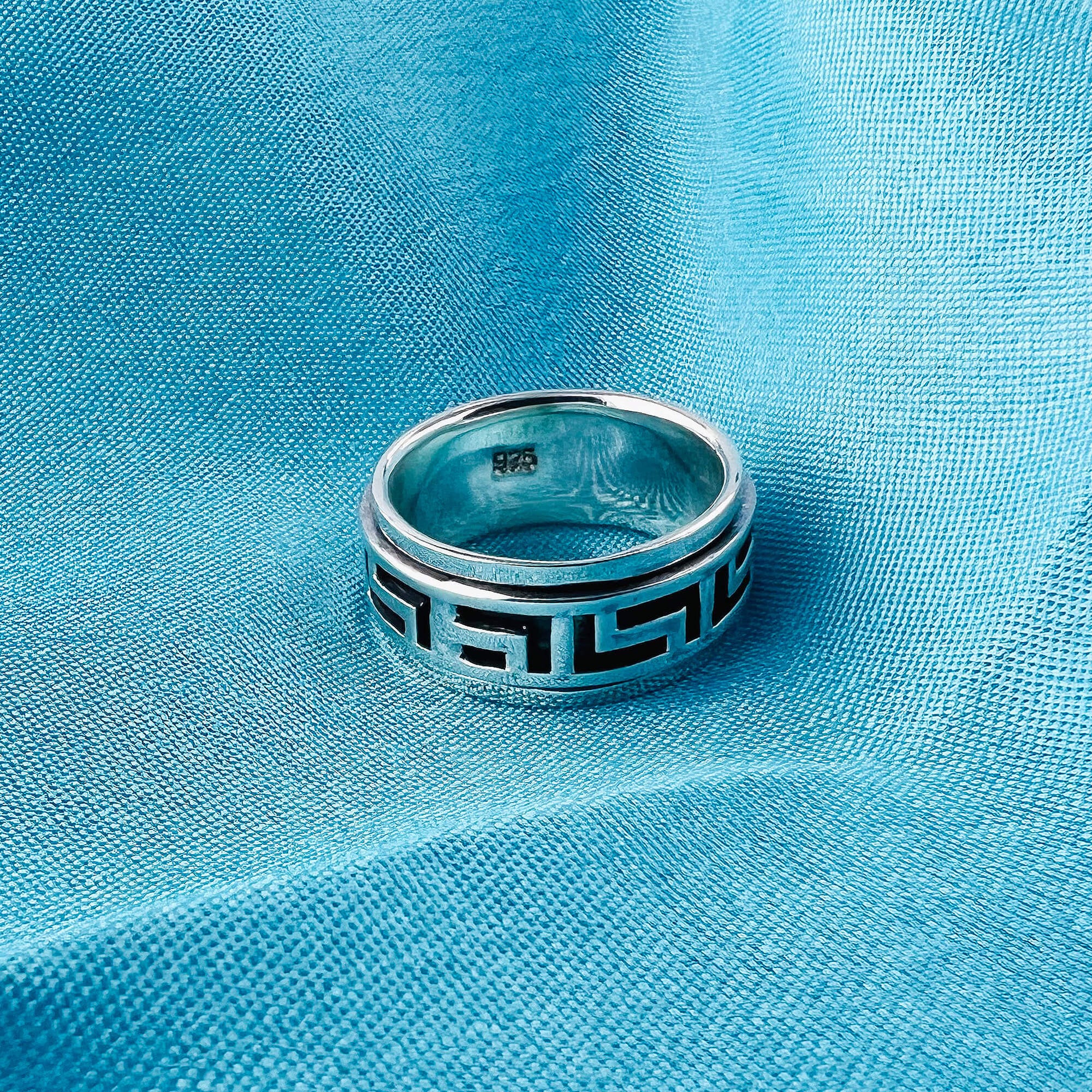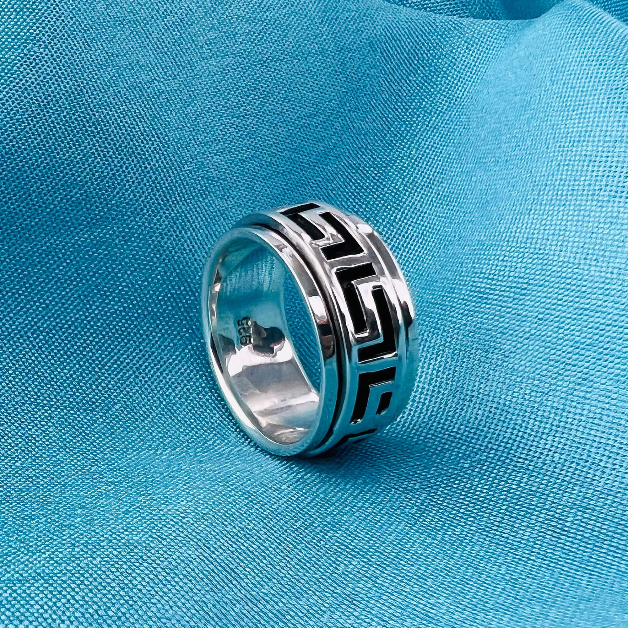 This 925 Sterling Silver Spinner Band Fidget Ring has a striking Greek Key pattern that will add a touch of elegance to your look. The ring is made of high-quality sterling silver and is perfect for everyday wear. The perfect blend of timeless style and modern sophistication, this ring is sure to be the perfect accessory for any occasion.