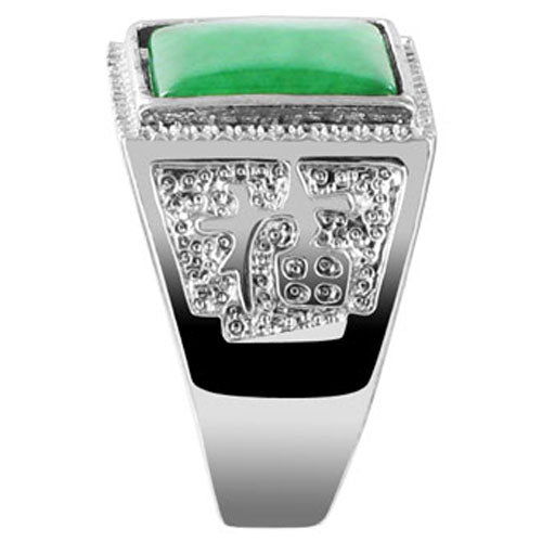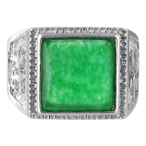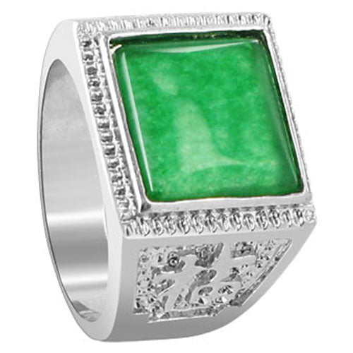13mm Square Green Nephrite Gemstone Silver-Plated Band Ring. It's made to make a bold statement, with its intricate details and eye-catching stones and will be sure to become an unforgettable addition to any outfit.