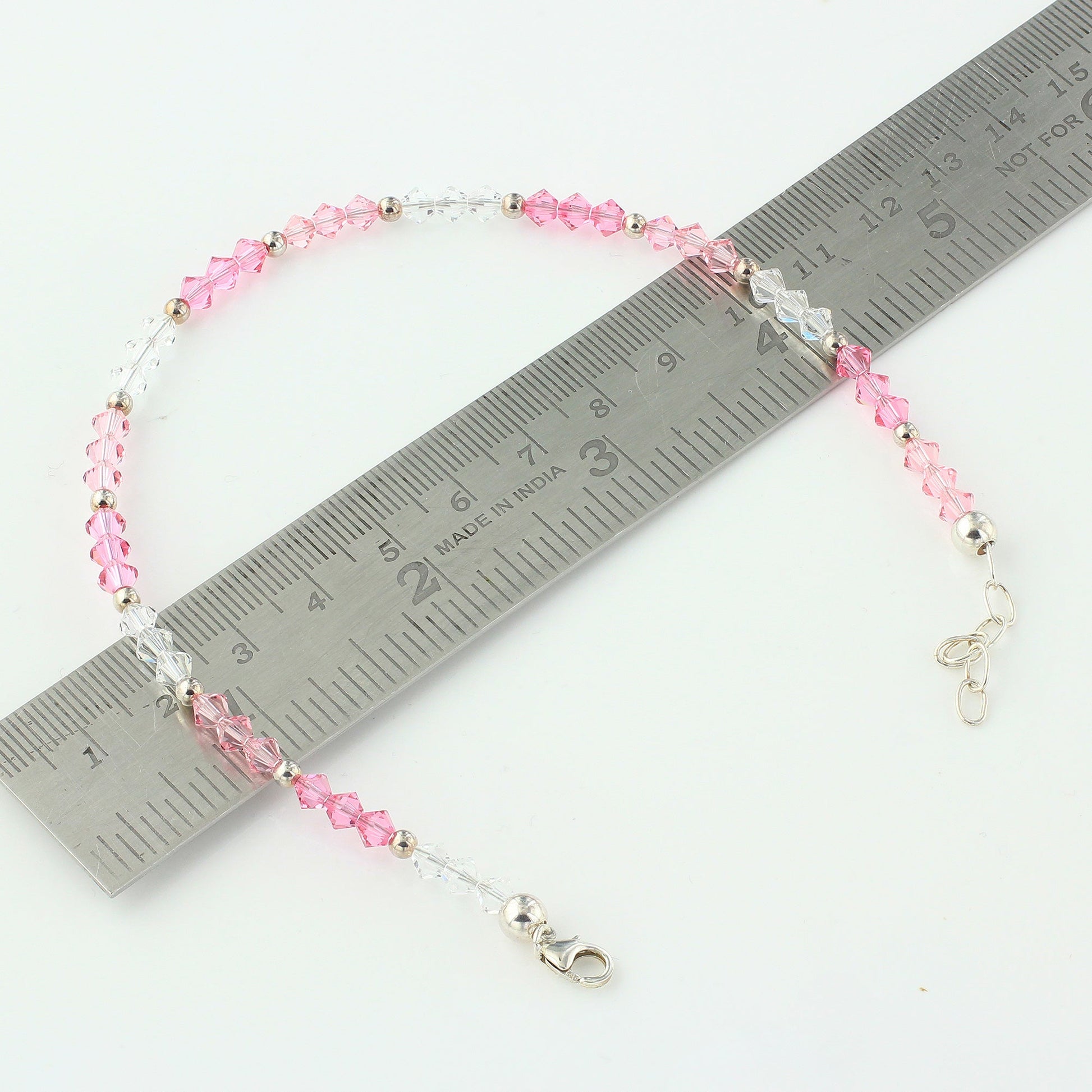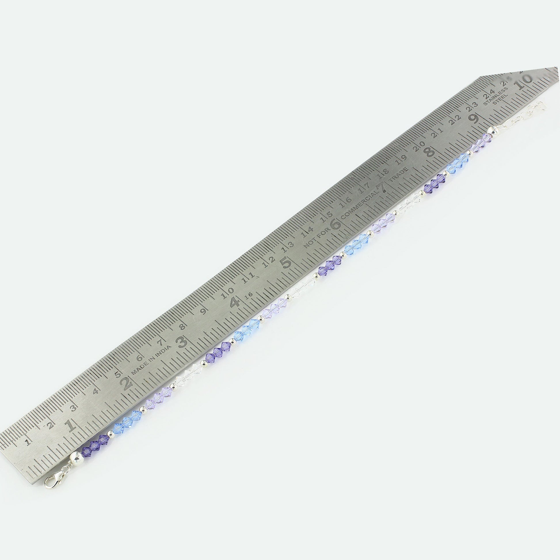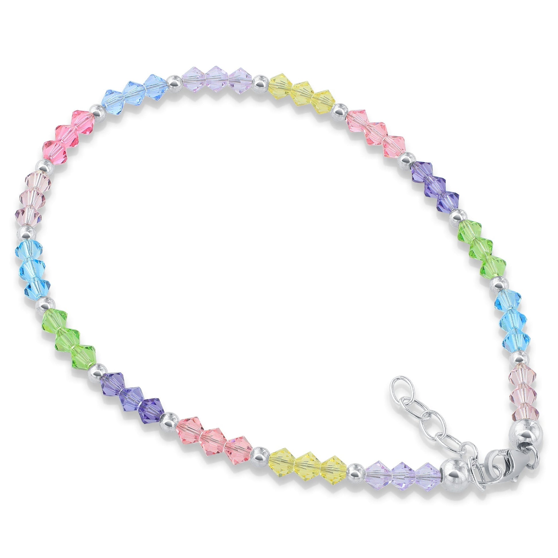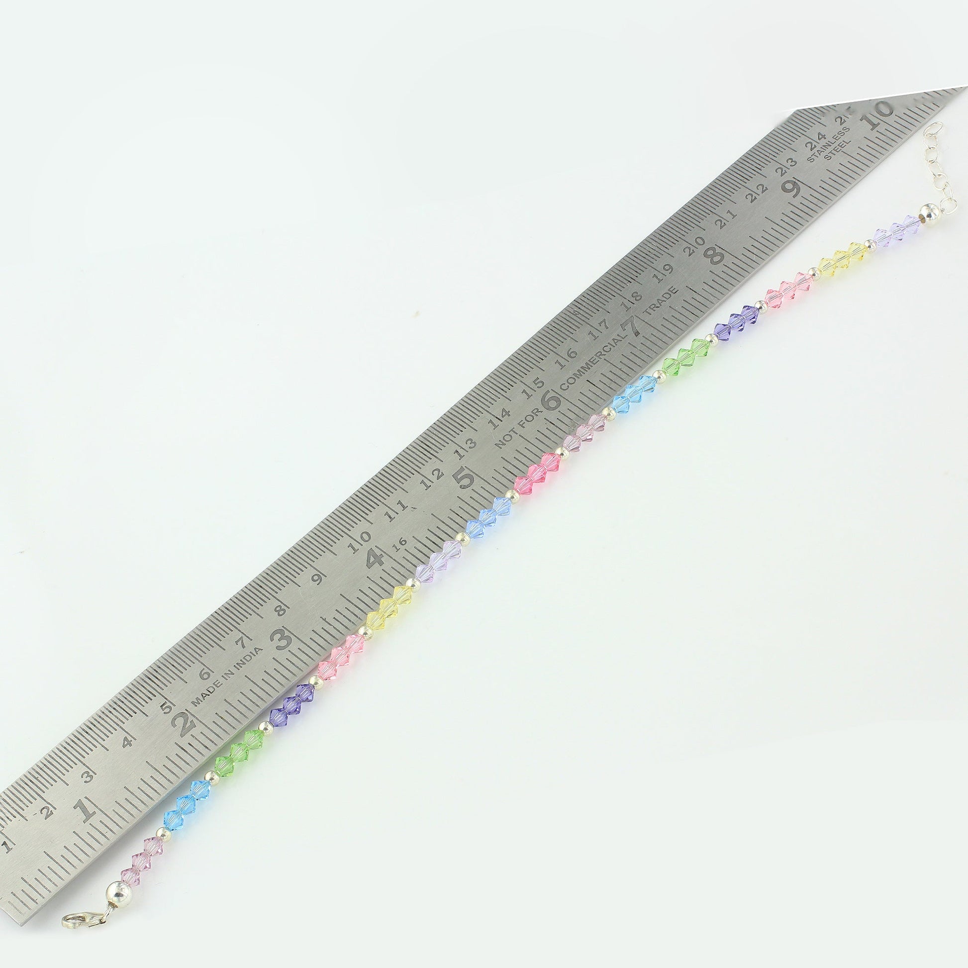 .925 Silver 10 inch Ankle Bracelet with Multicolored Austrian Crystal