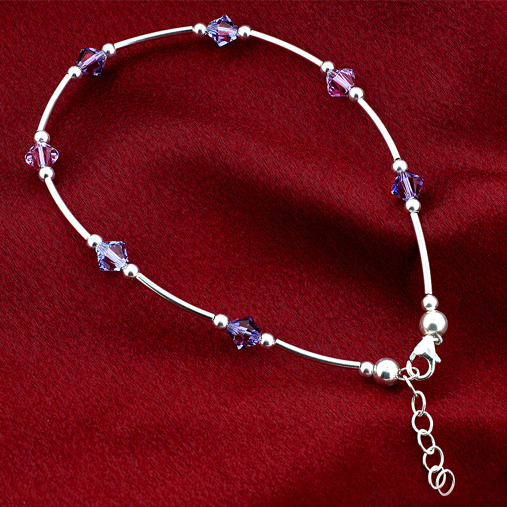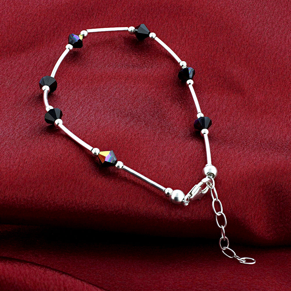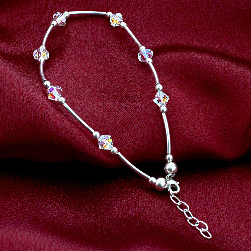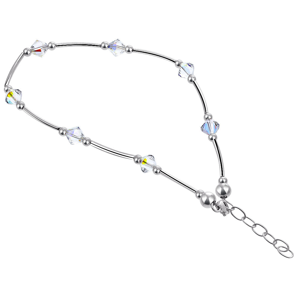 .925 Silver Ankle Bracelet Anklet with Bicone Austrian Crystals