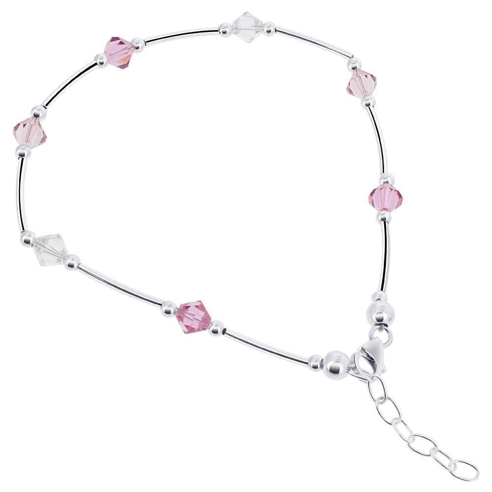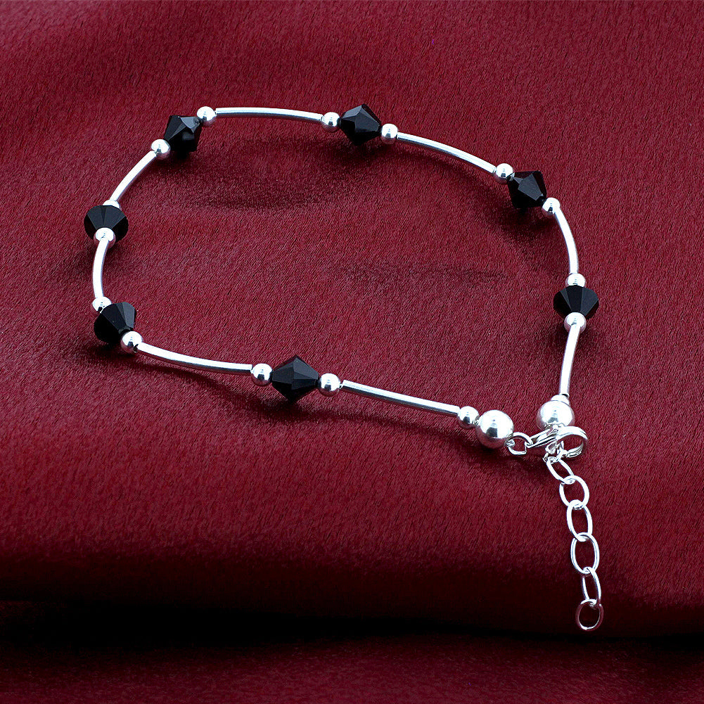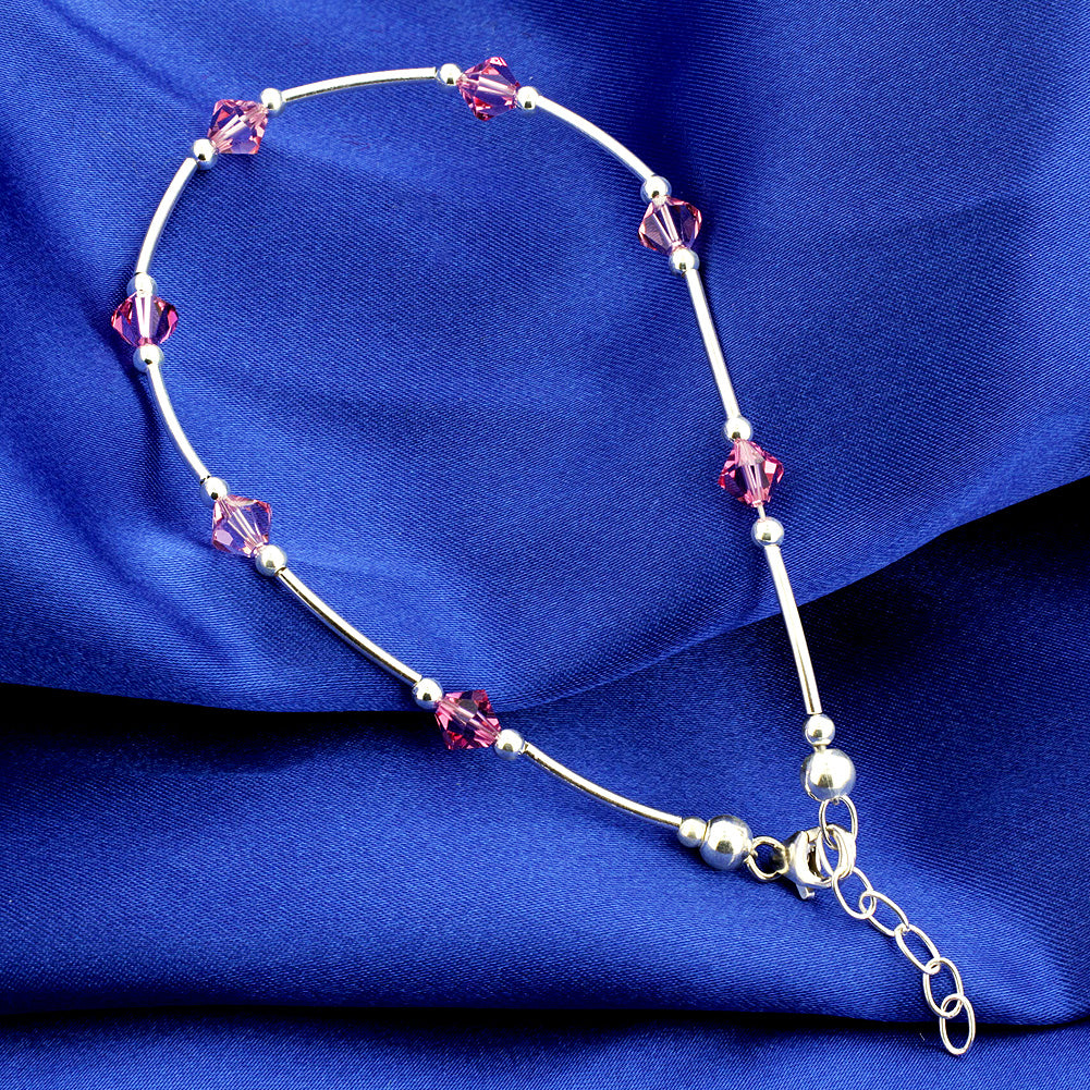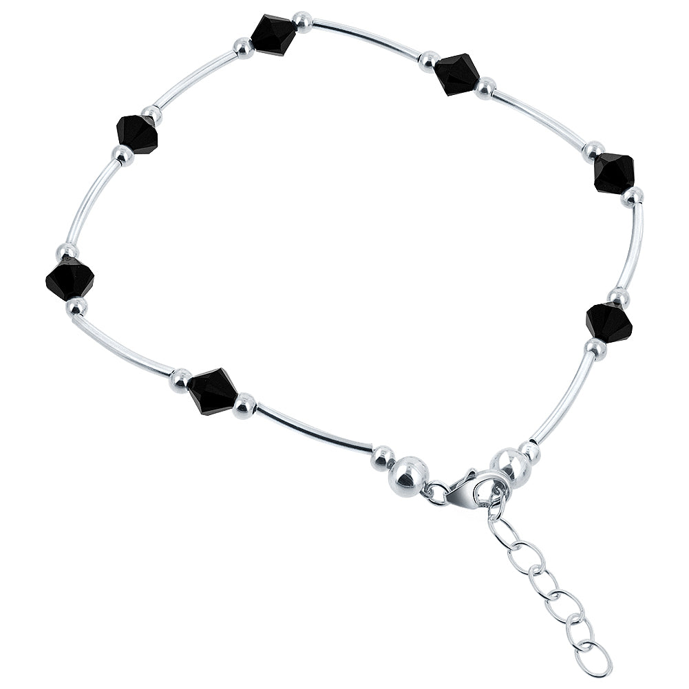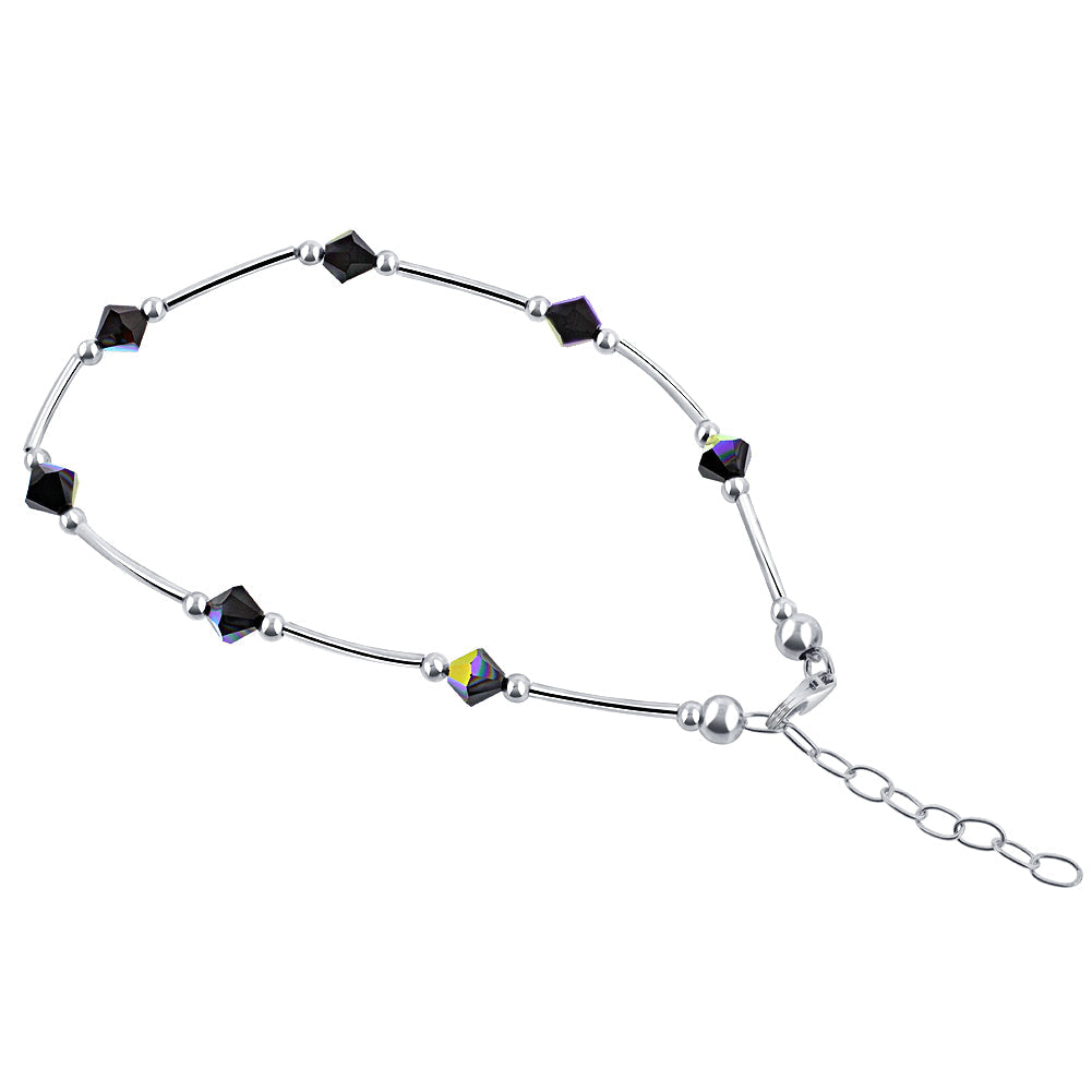 .925 Silver Ankle Bracelet Anklet with Bicone Austrian Crystals