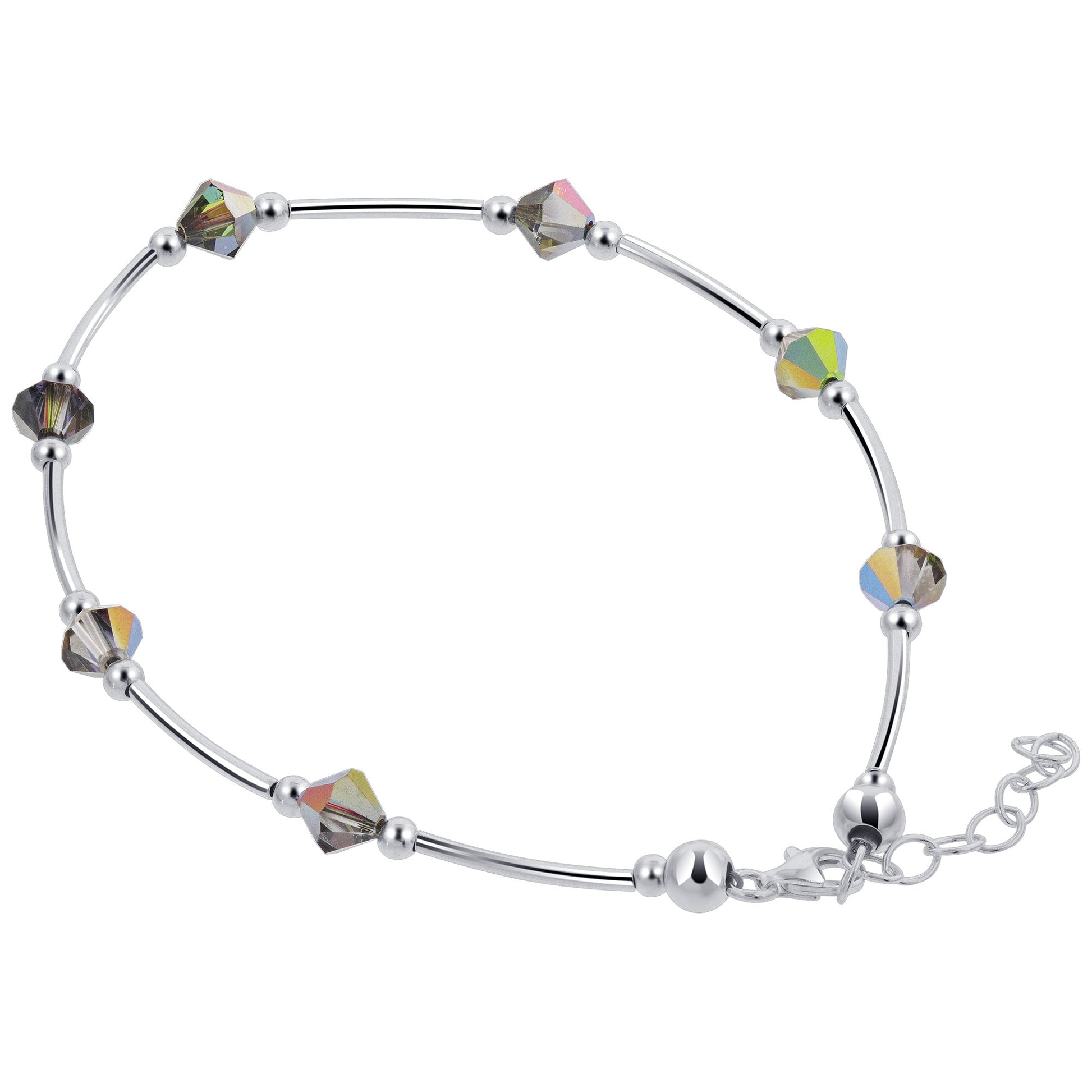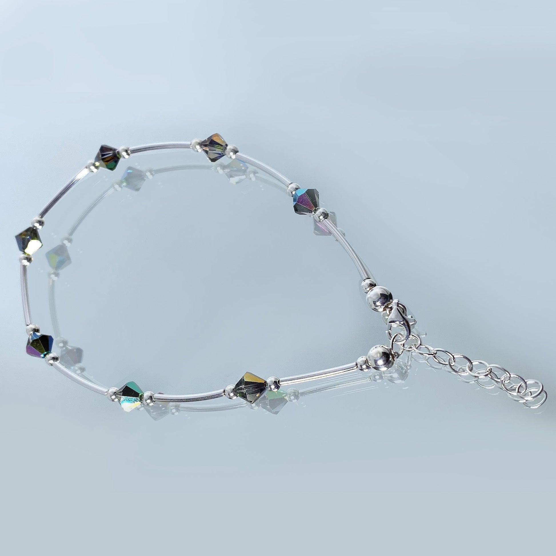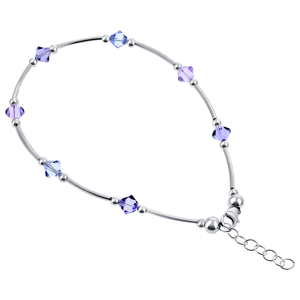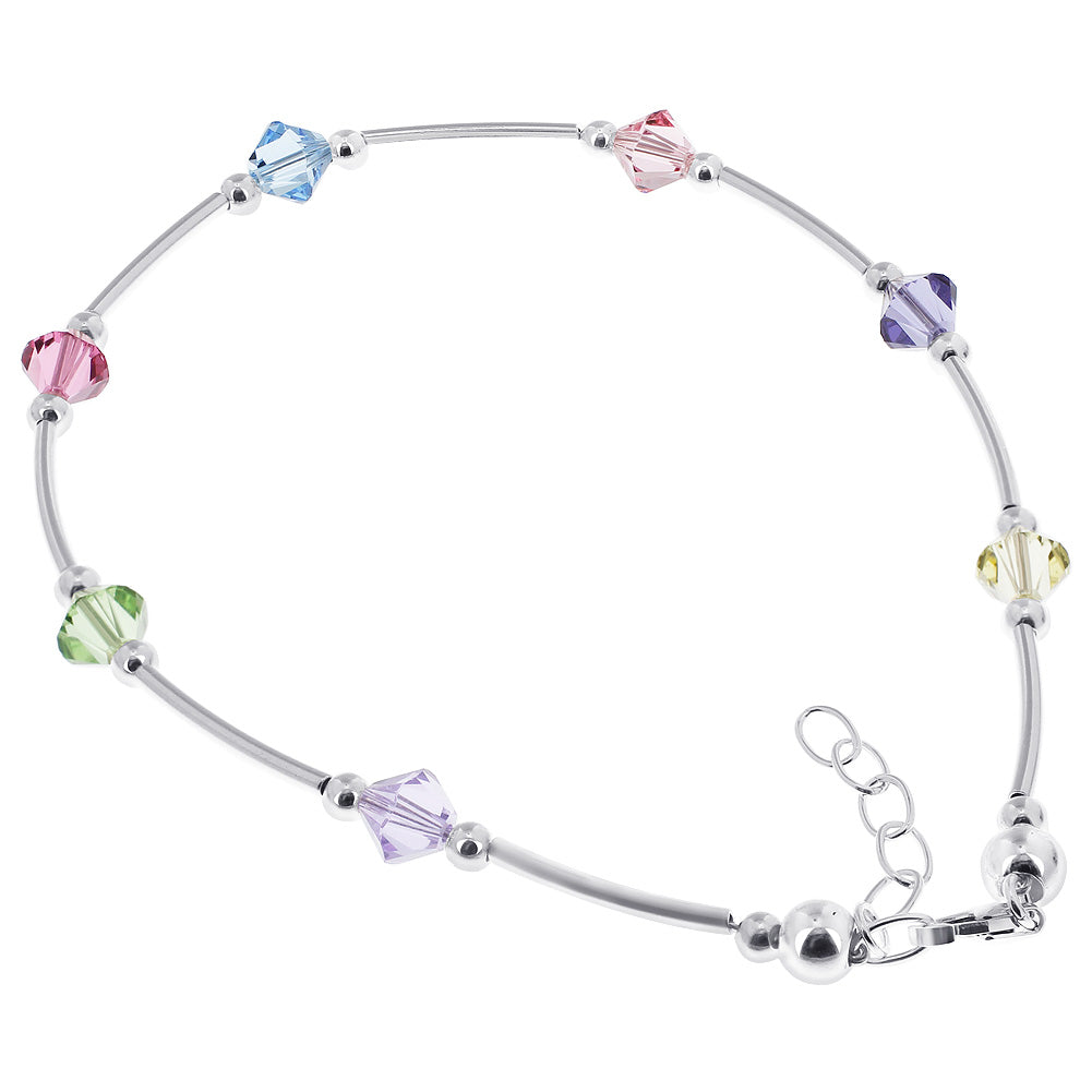 .925 Silver Ankle Bracelet Anklet with Bicone Austrian Crystals