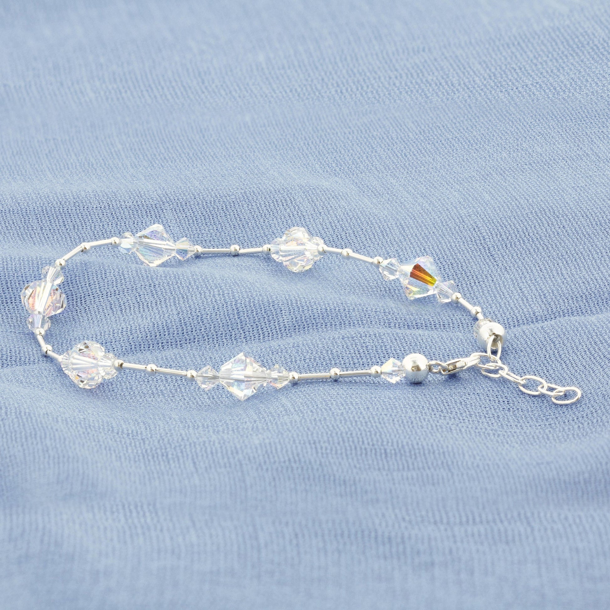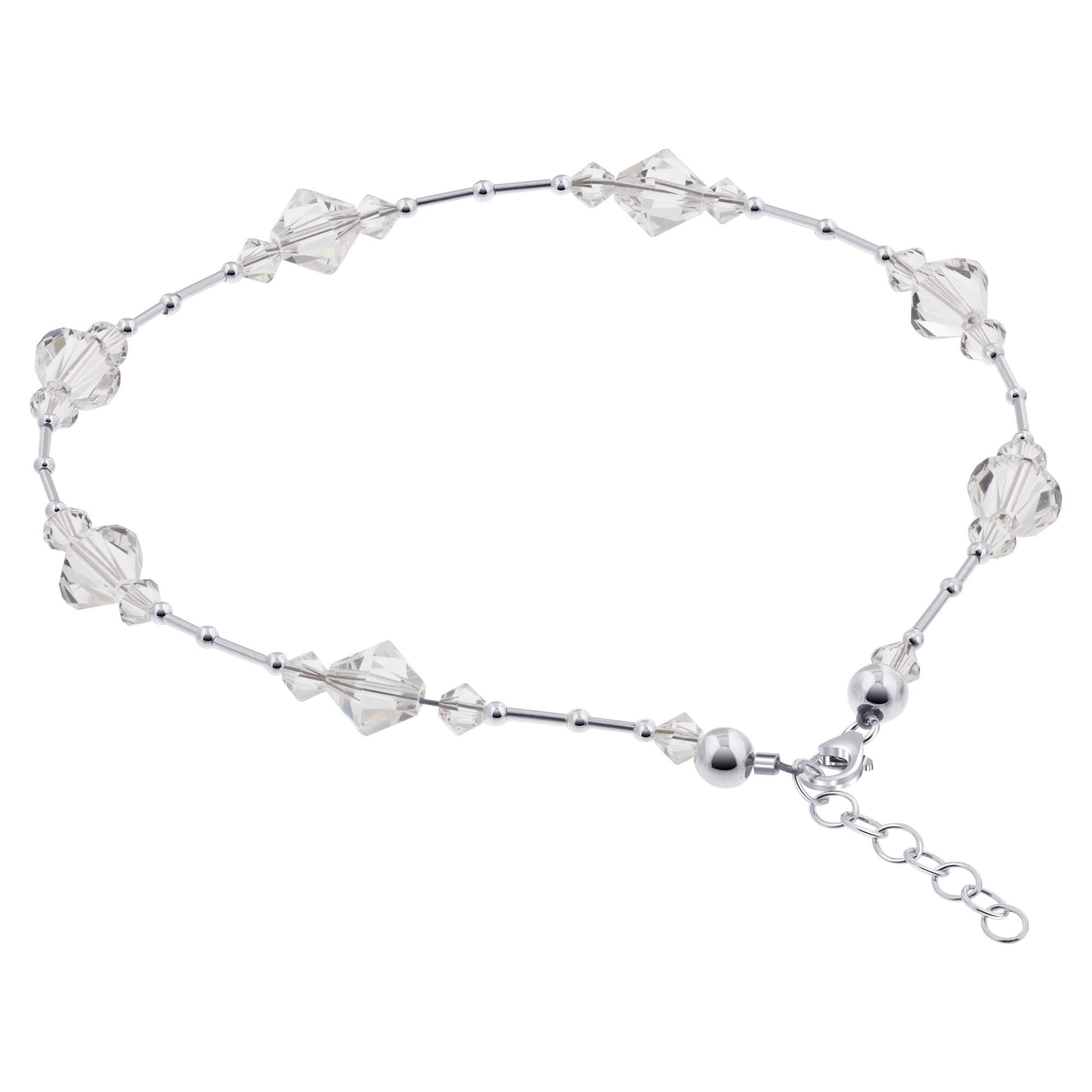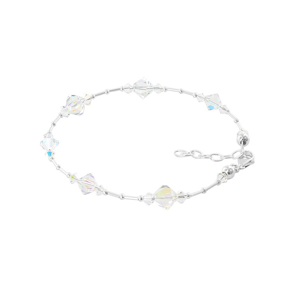 .925 Silver Anklet 9 to 10.5 Inch Long with Bicone Austrian Crystal