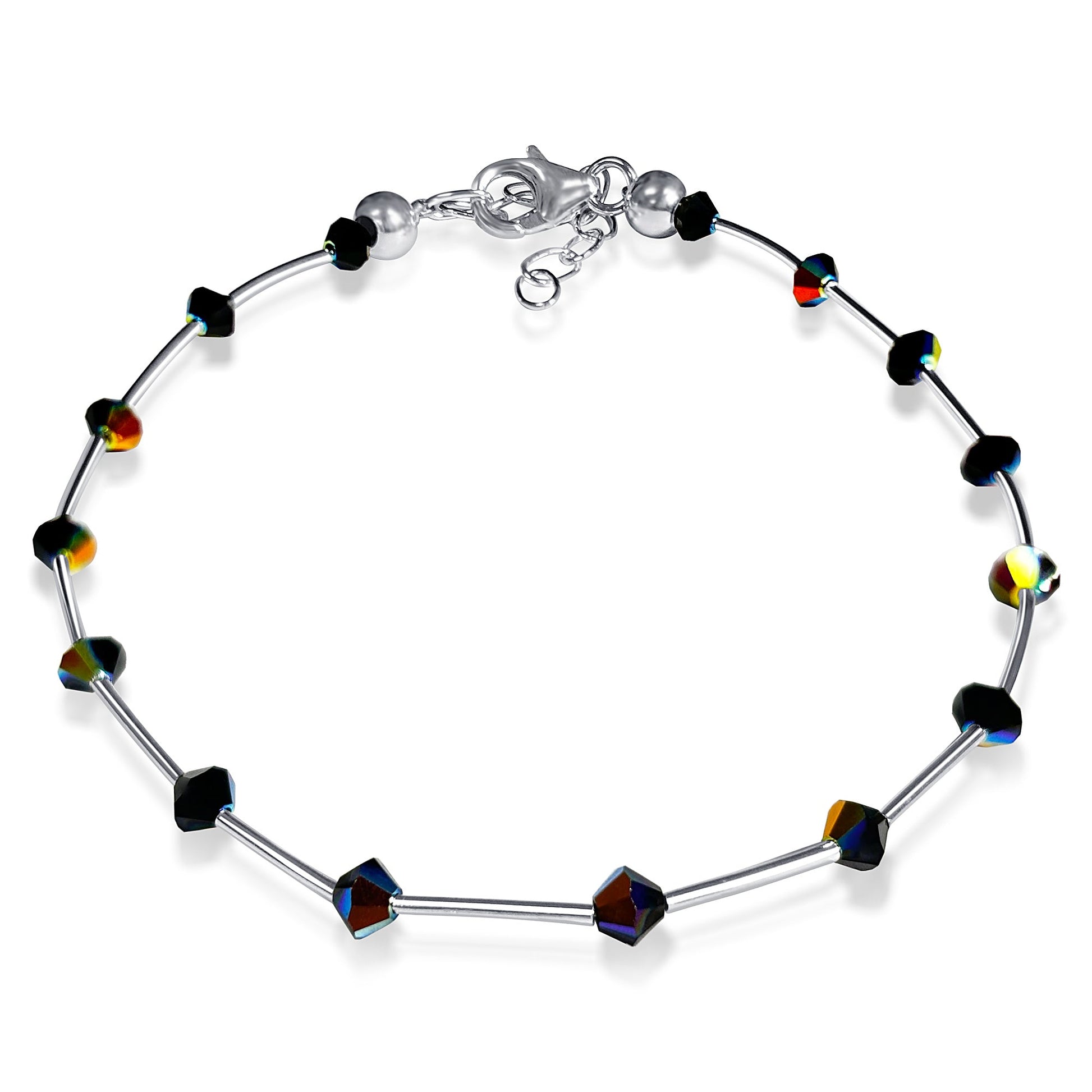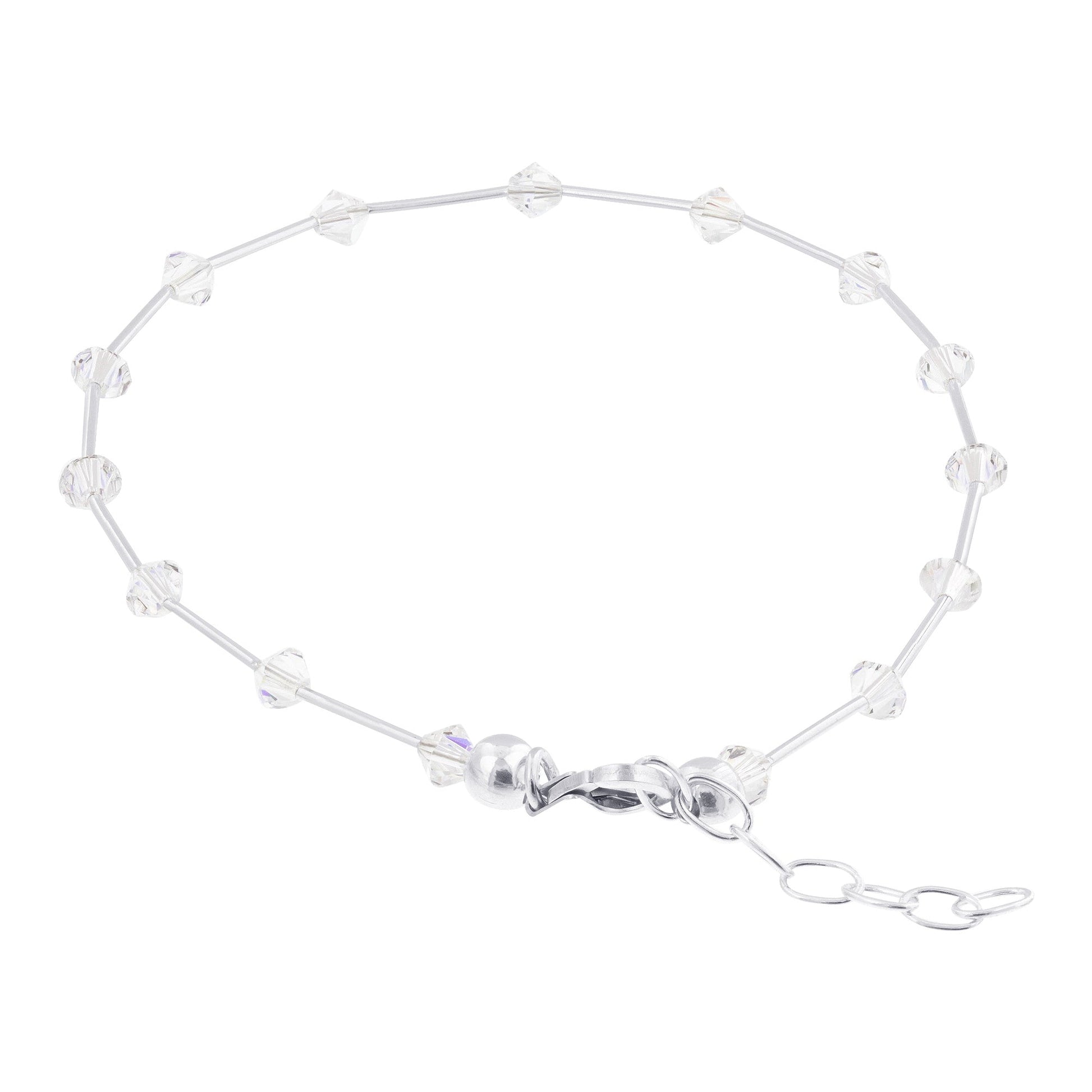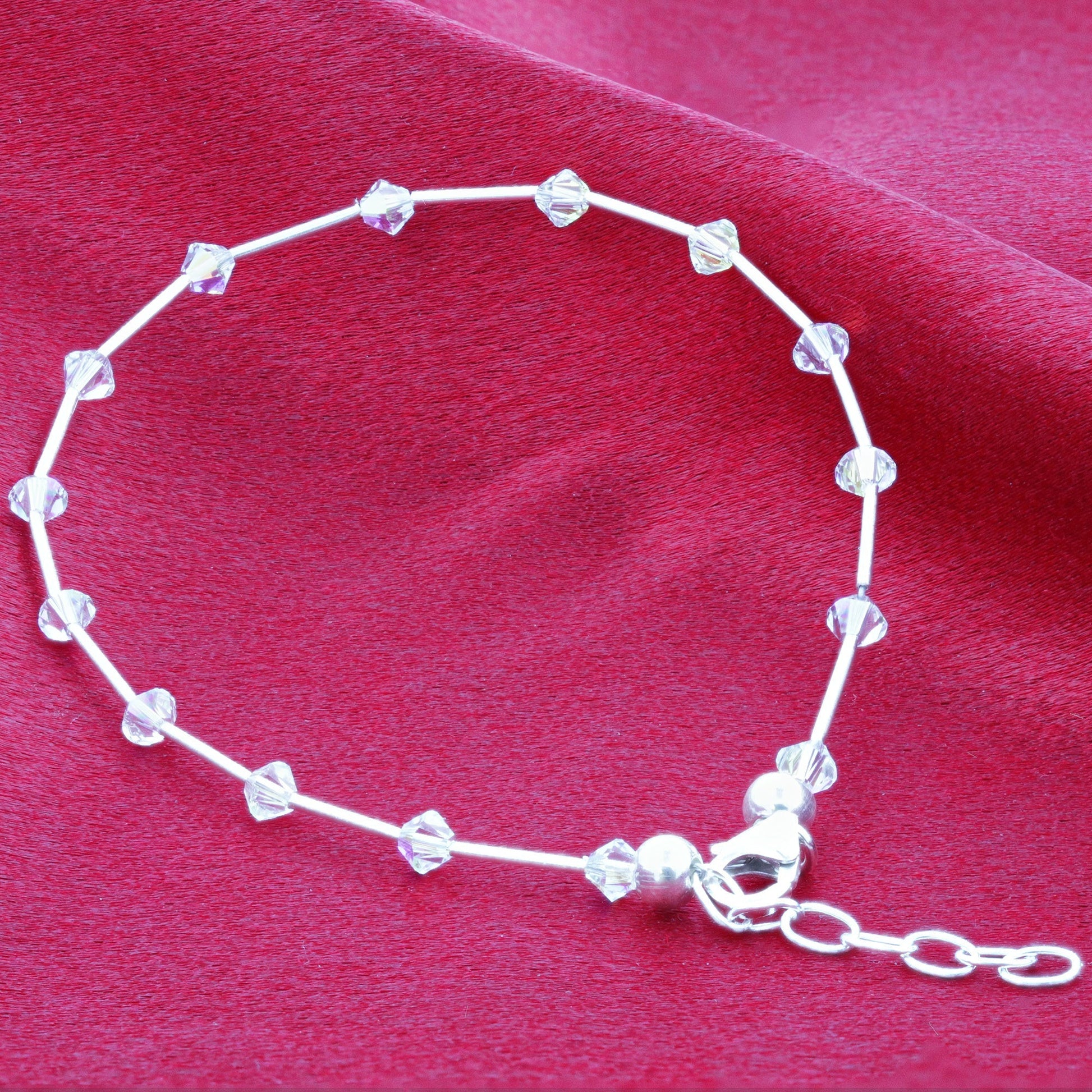 - title_tag : .925 Silver Anklet 8.5 to 10 Inch Long with Austrian Crystals - GAG003