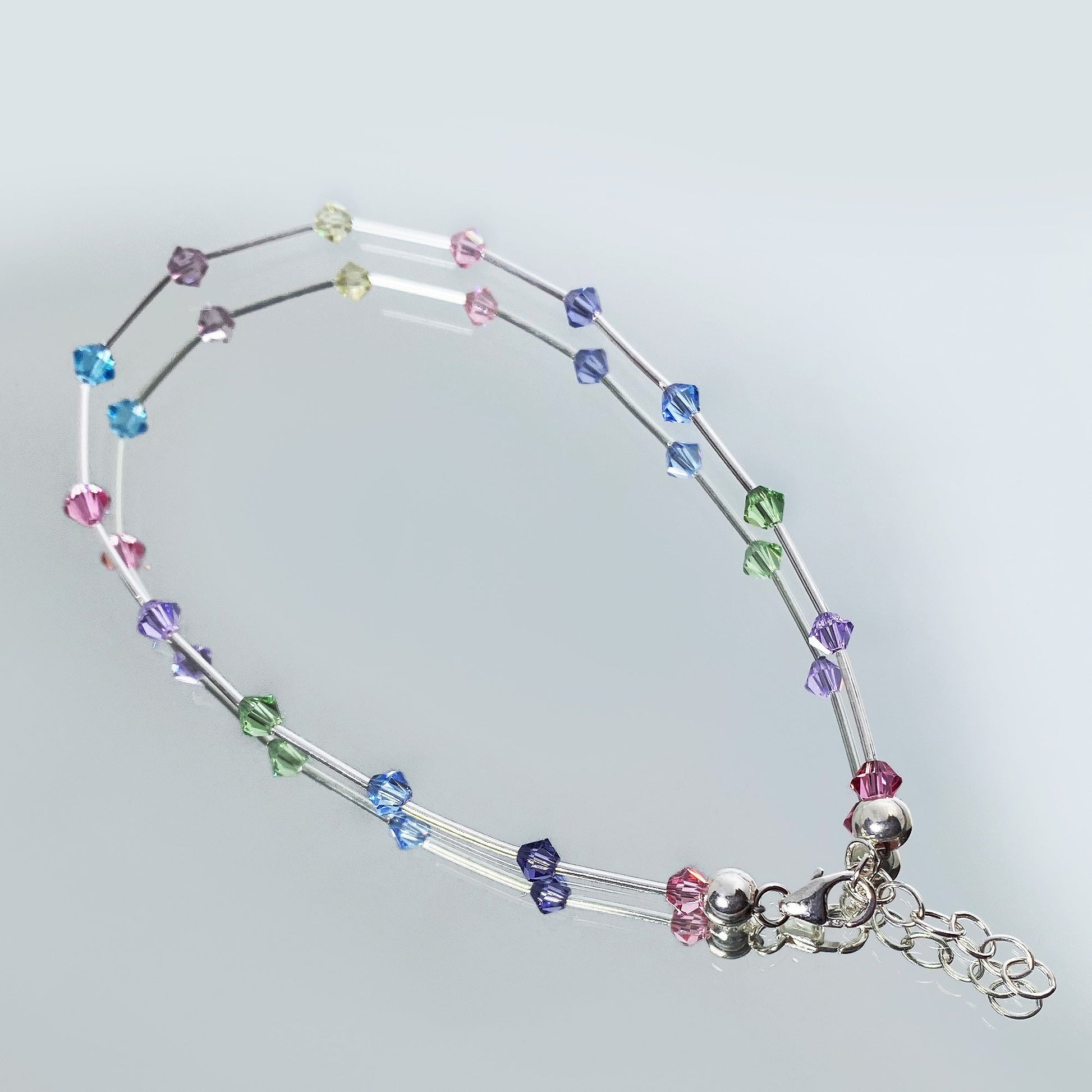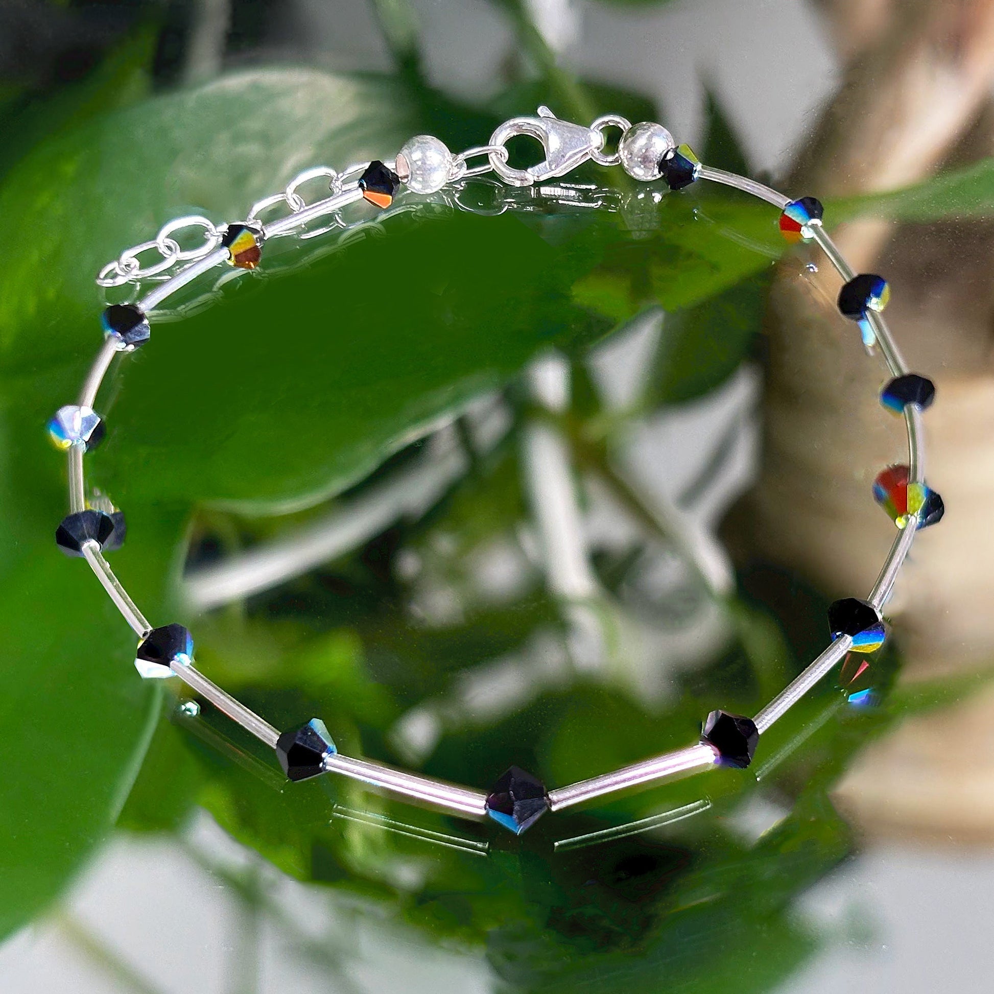 .925 Sterling Silver Anklet 8.5 to 10 Inch Long with Austrian Crystals