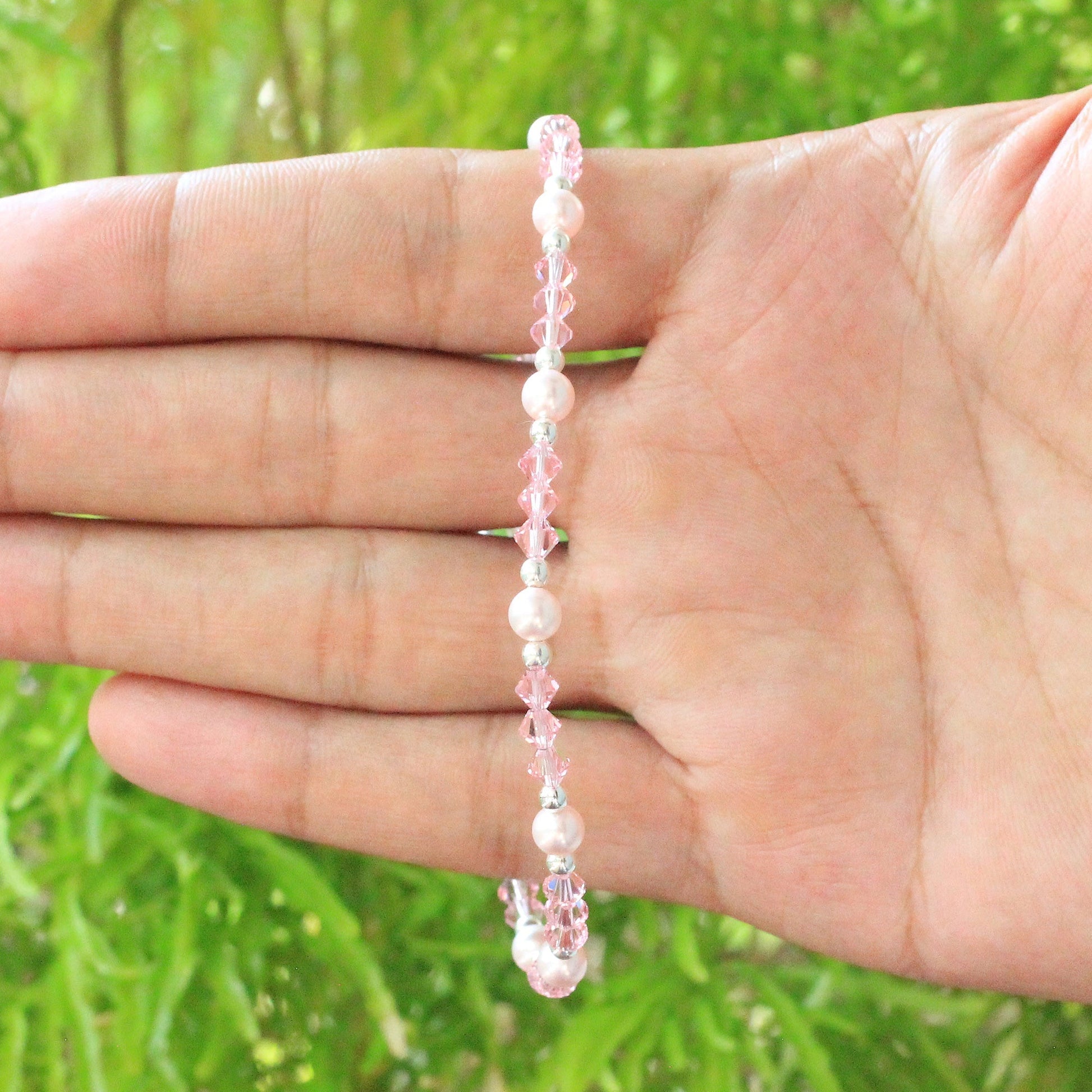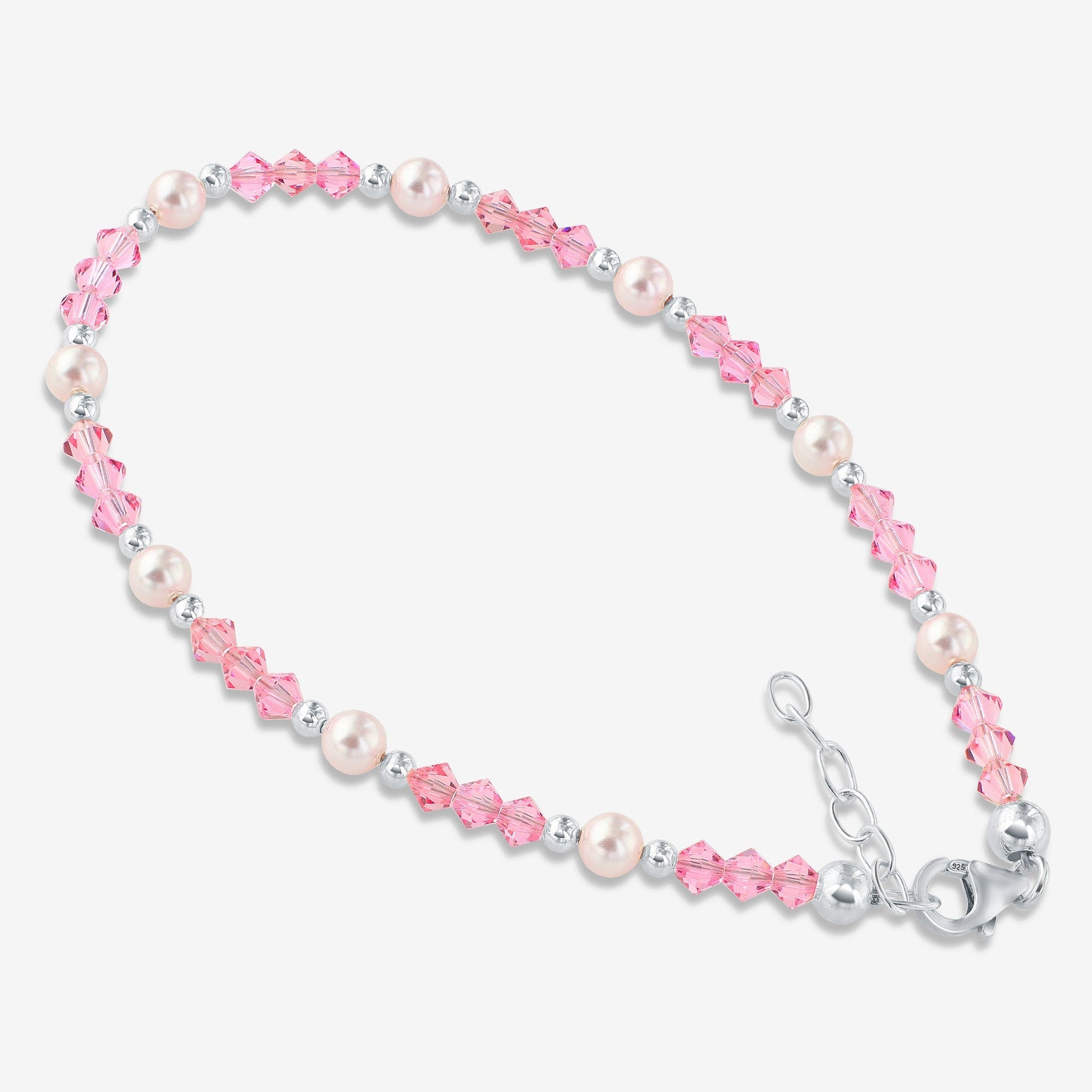 Sterling Silver Anklet 8.5–10 Inch with Pearl & Austrian Crystals Handmade Adjustable Anklet Jewelry for Women