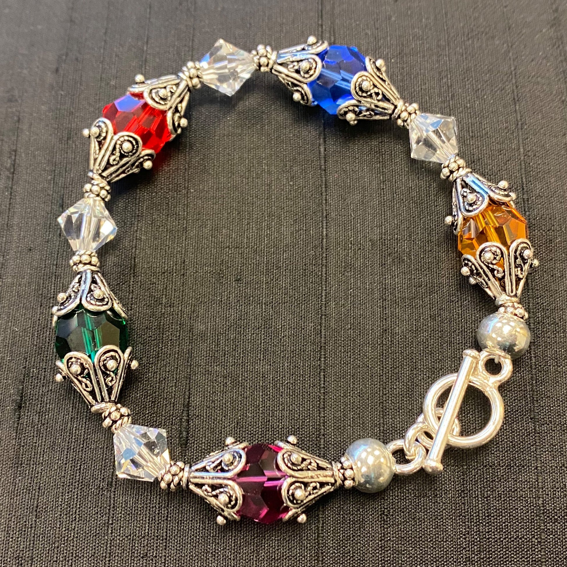 Sterling Silver Bracelet with Bali Bead Caps and Austrian Crystals