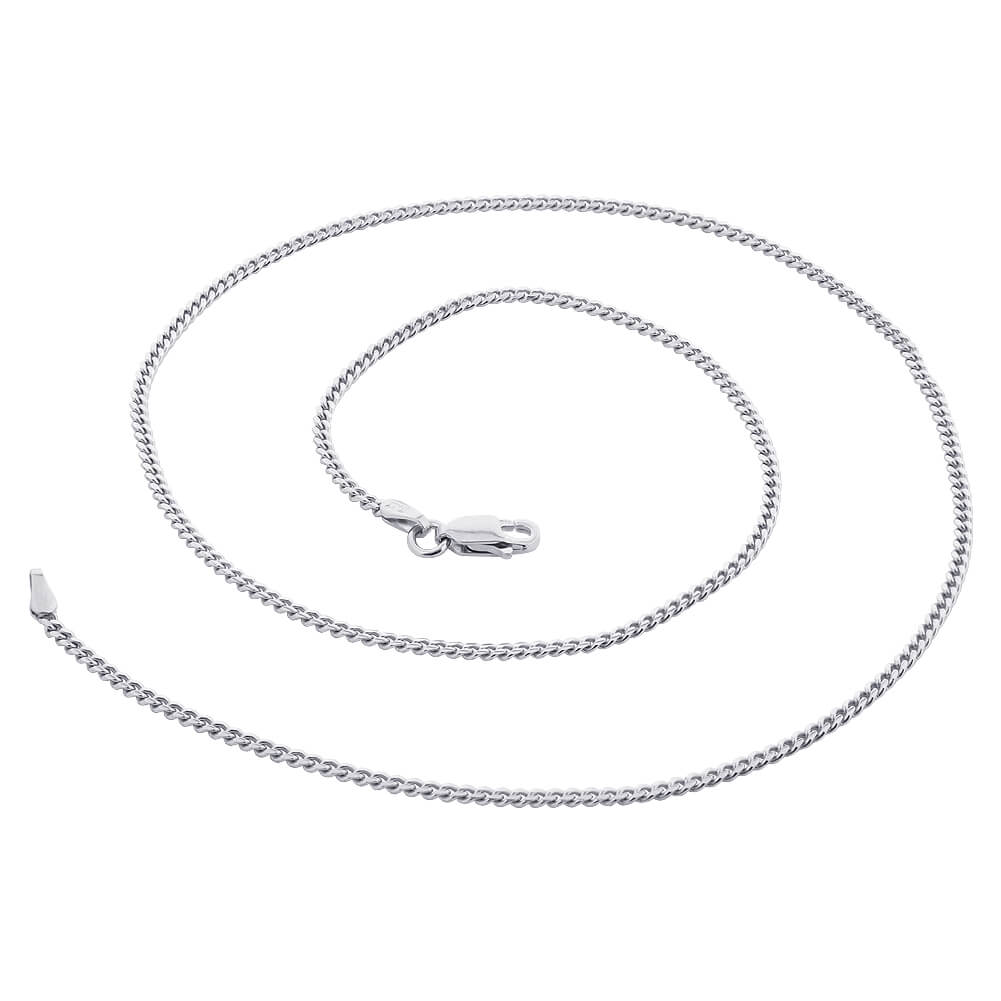 This dazzling 925 sterling silver chain is sure to be a perfect addition to any outfit for that subtle chic look! We offer these Cuban chain necklaces with rhodium plating in a variety of length sizes in order for you to get the perfect fit you’re looking for! We have sizes 20in, 22in, 24in, and 30in. These chains contain a lobster claw clasp to ensure a secure and comfortable fit. Wear it alone or add a pop of color with one of our fabulous pendants from our extensive collection! We are positive that our customers will not be left unsatisfied with the purchase of one of our beautiful chains!