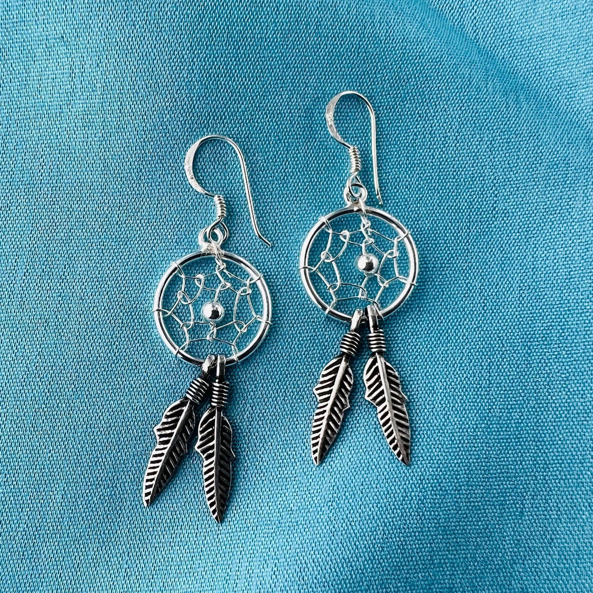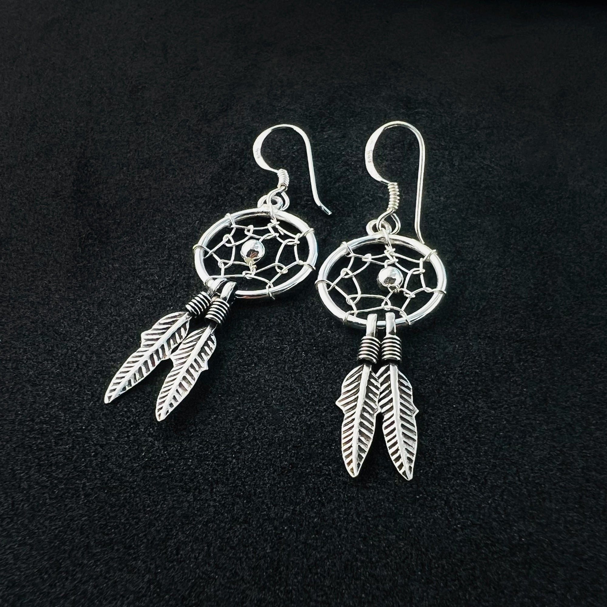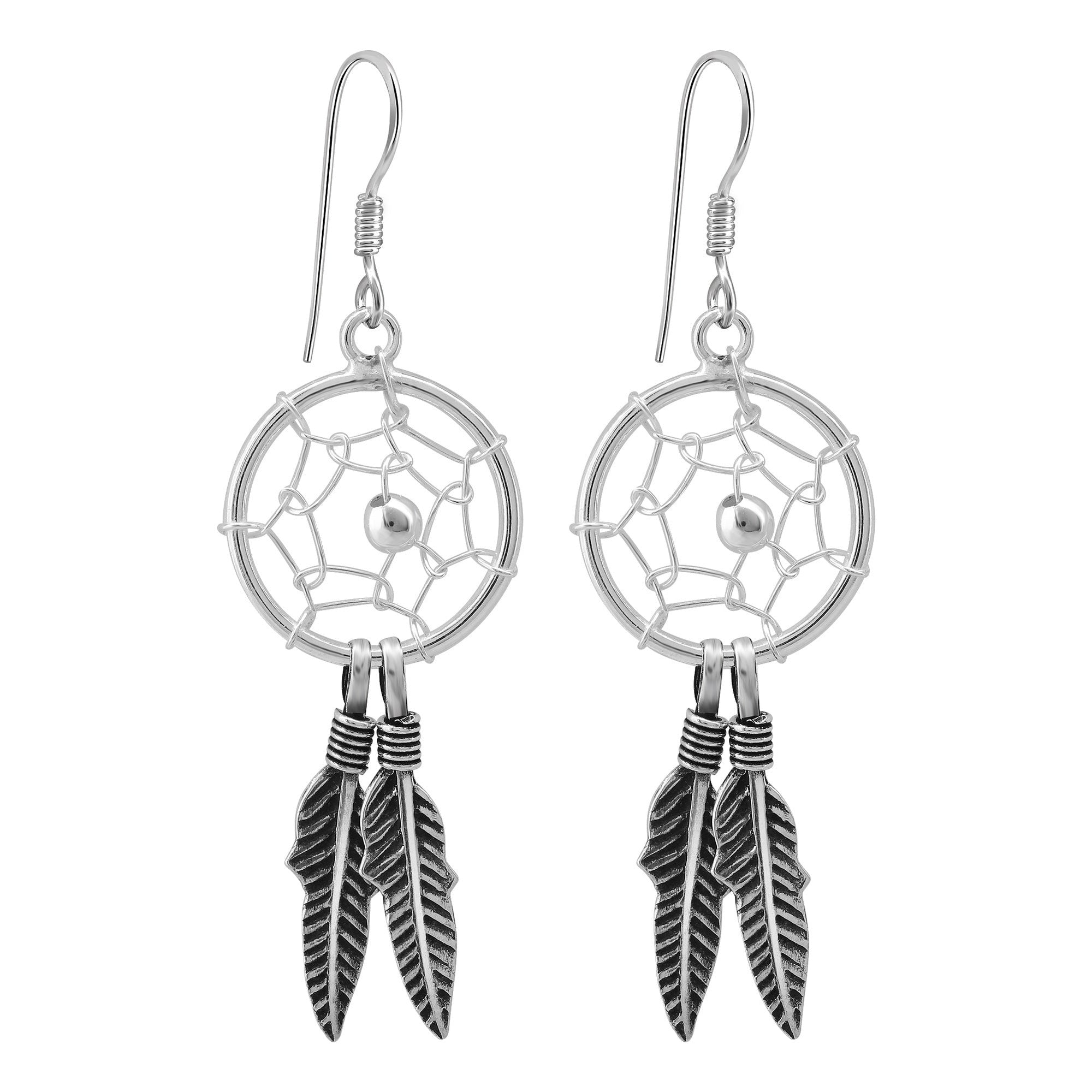 The Southwestern Style Tribal Dream Catcher & Web Feather Charm 925 Sterling Silver Hook Dangle Earrings are the perfect addition to your jewelry collection. These earrings are stylish and elegant and feature a dream catcher charm with web feather detail.