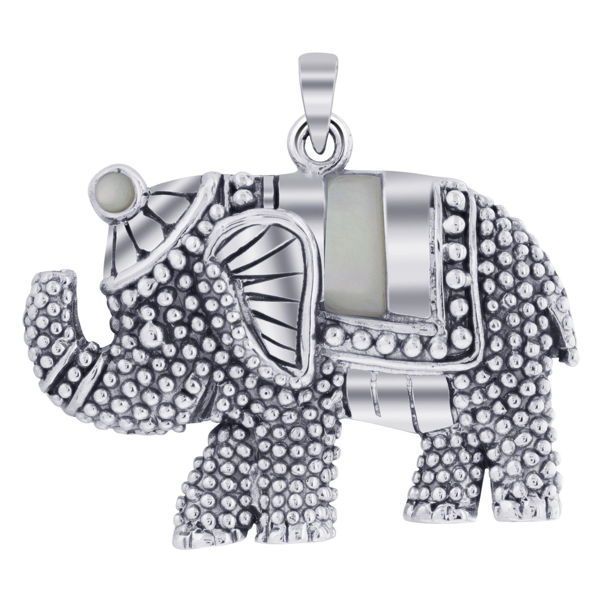 .925 Sterling Silver Elephant Pendant with Rhodium Plated Bali Design