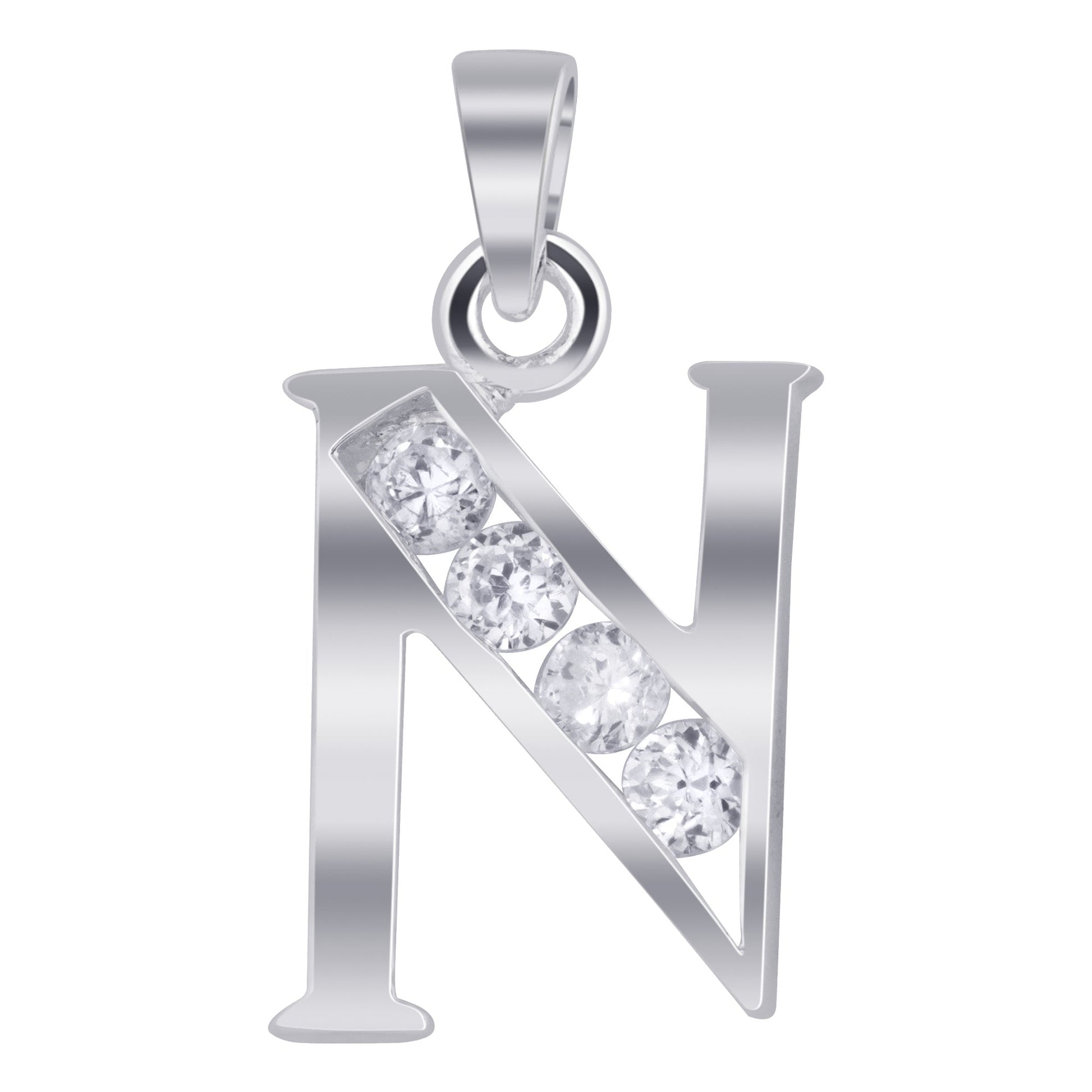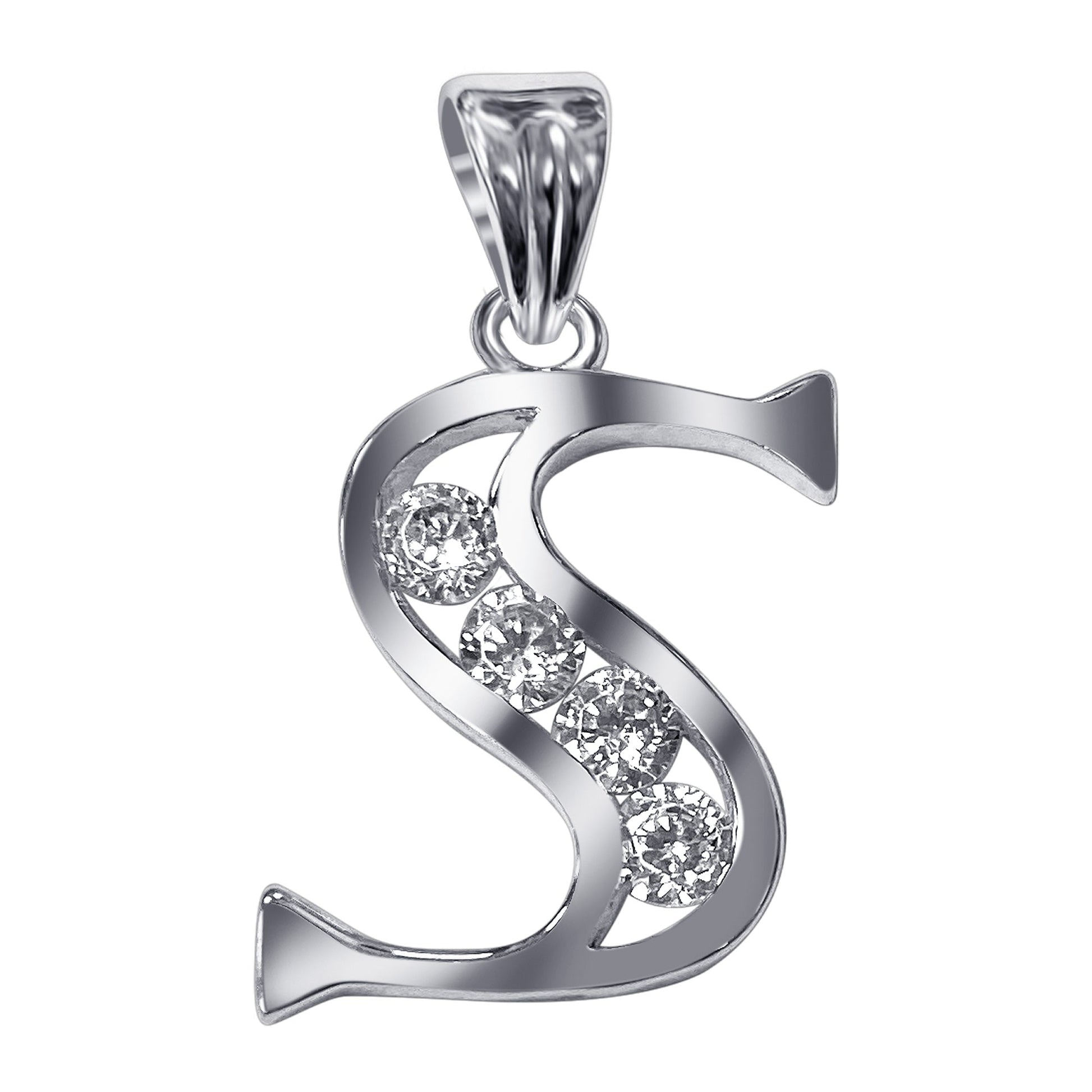Elevate your style with this personalized initial pendant. Expertly crafted from .925 sterling silver and adorned with four sparkling cubic zirconia stones, this pendant is the perfect addition to any outfit. Its versatile bail is compatible with all standard chains, giving you endless options for how to wear it. At just 25mm in height, this pendant packs a stylish punch without overpowering your look. Enjoy the luxury of high-quality silver at an unbeatable price, and see for yourself why this pendant outshines anything you'll find at a local store.