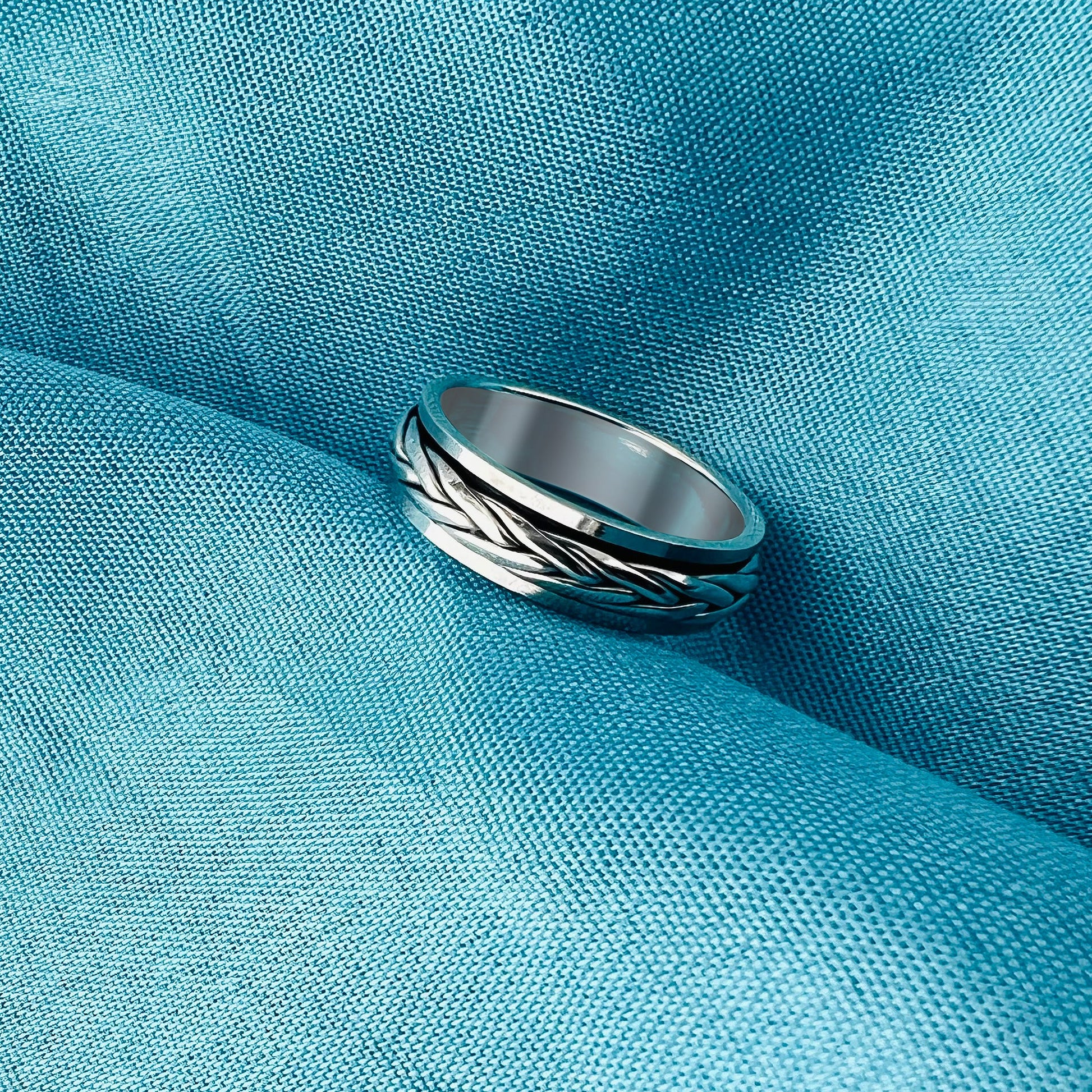 - description_tag : Discover the Braided Weave Spinner Fidget Ring, crafted from 925 sterling silver. This elegant yet functional band helps relieve stress and anxiety with its smooth spinning design. Perfect for daily wear, it combines style and relaxation. Ideal for meditation, focus, and calming nerves on the go.