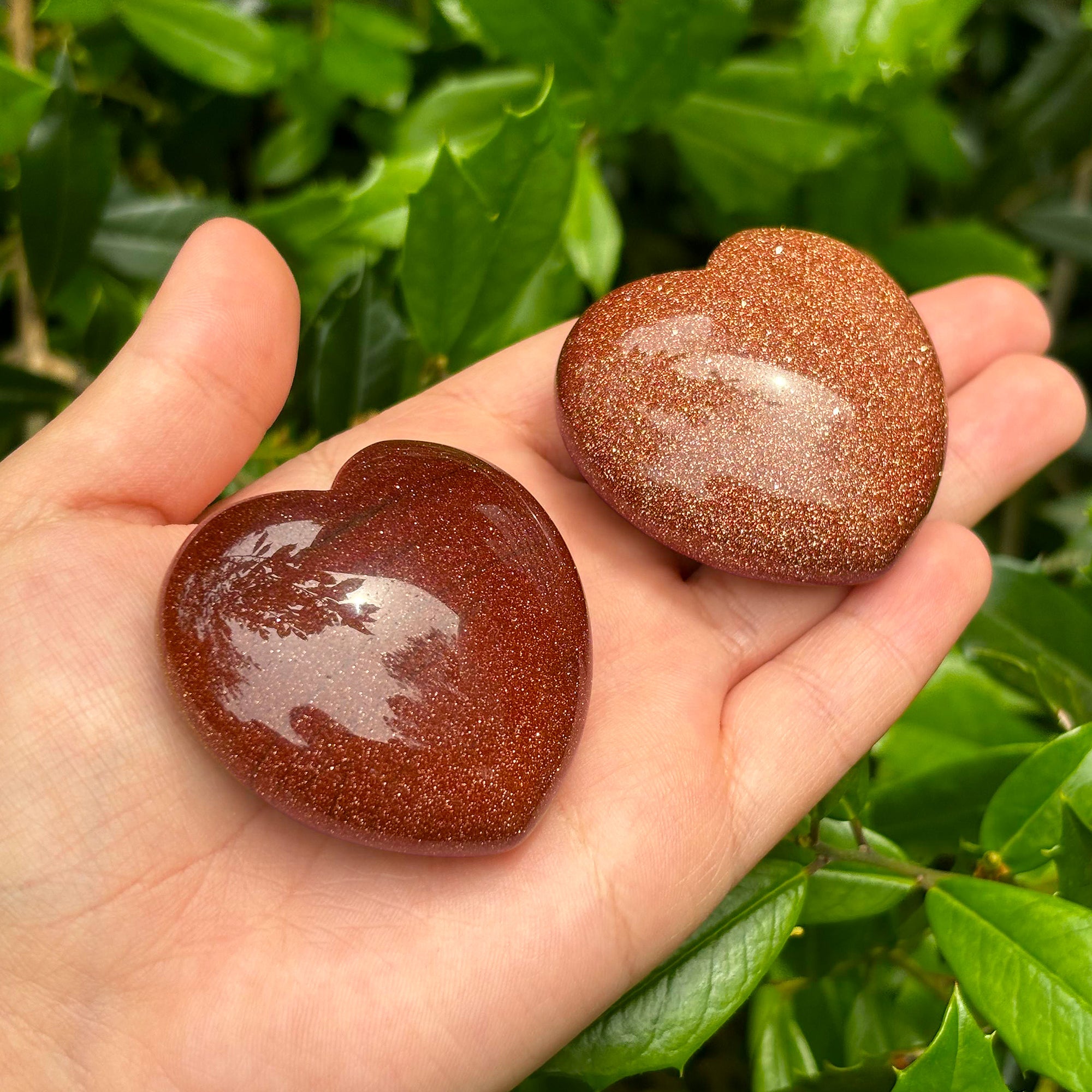 Fall in love with these gorgeous Goldstone hearts! Once met with light these hearts shimmer and sparkle beautifully! Please note you will receive one heart chosen at random, please allow for some variance between hearts, such as size, shape, and color. It measures approximately 1.5" inches in length by 1.5" inches in width and weighs 1.7 oz to 2 oz.
