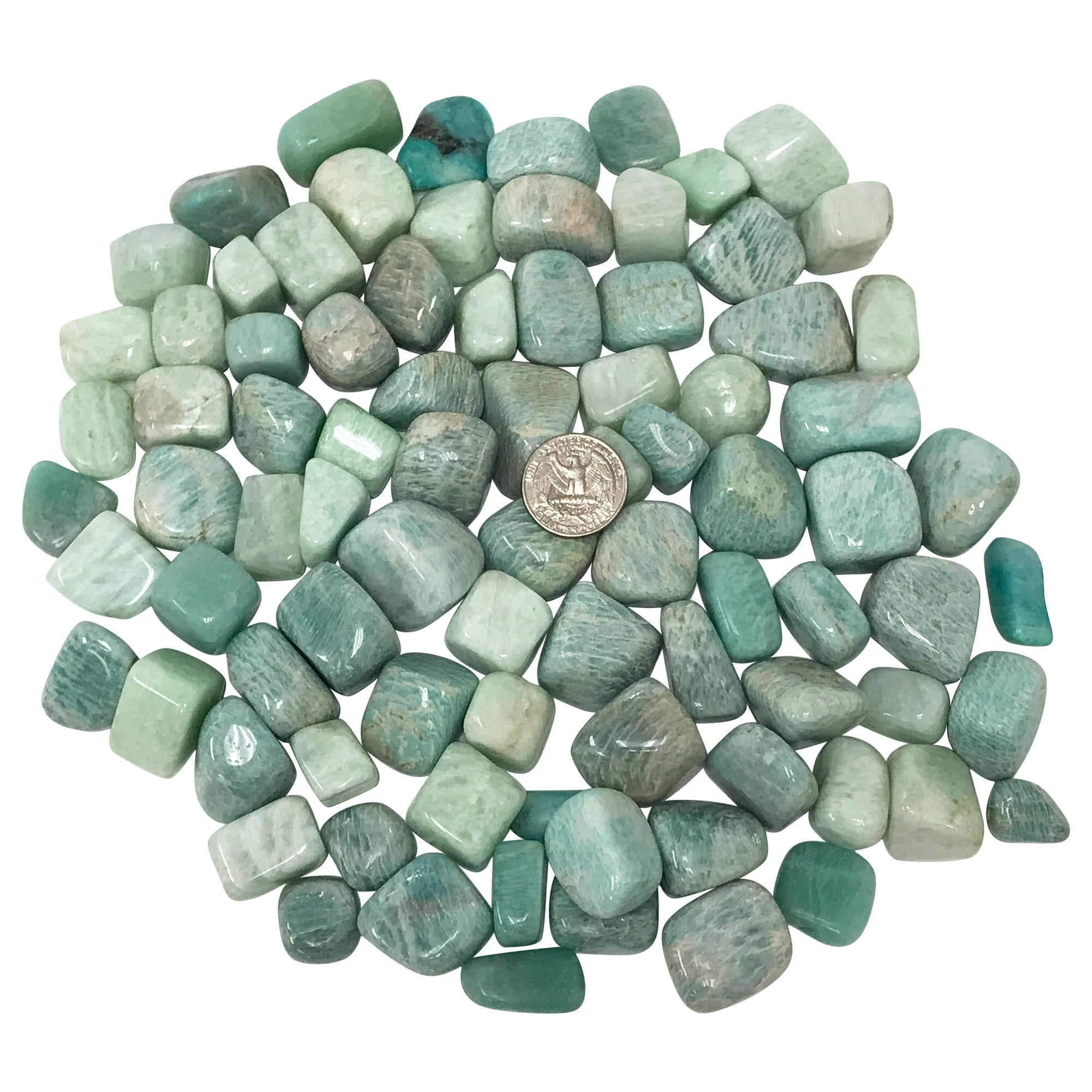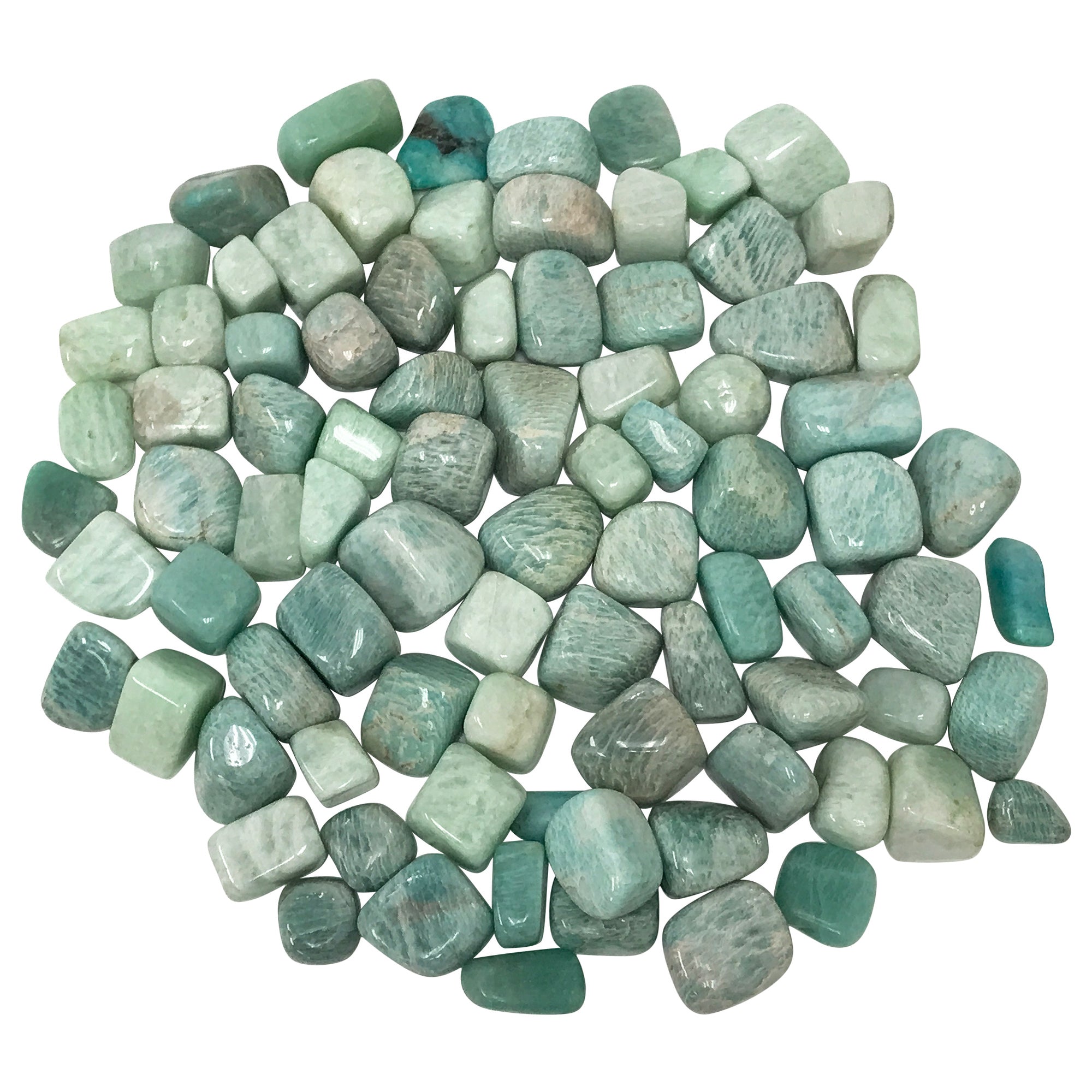 Discover the unique and beautiful patterns of Madagascar's Amazonite Tumbled Stones. Every stone features natural designs that add a touch of sophistication to your collection.