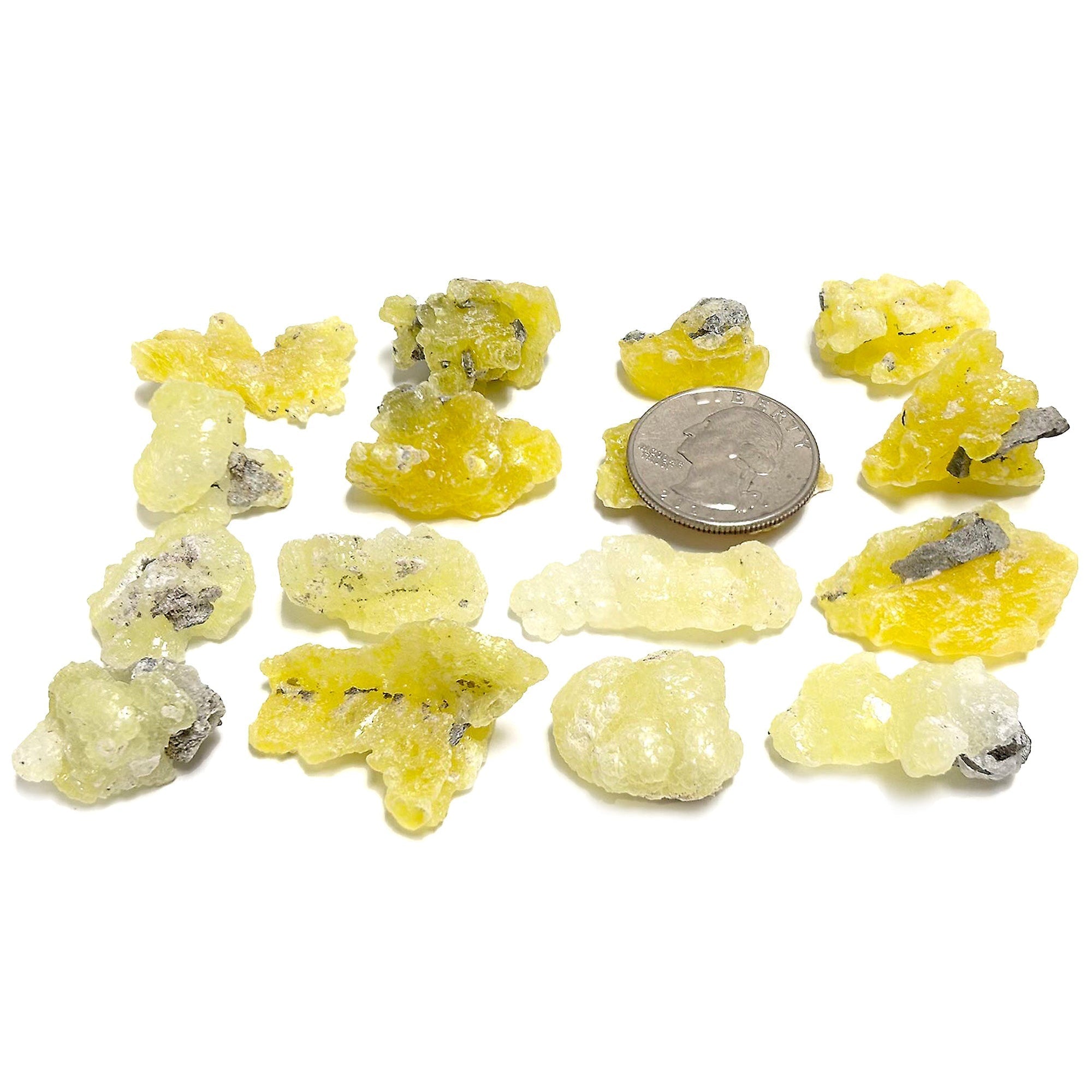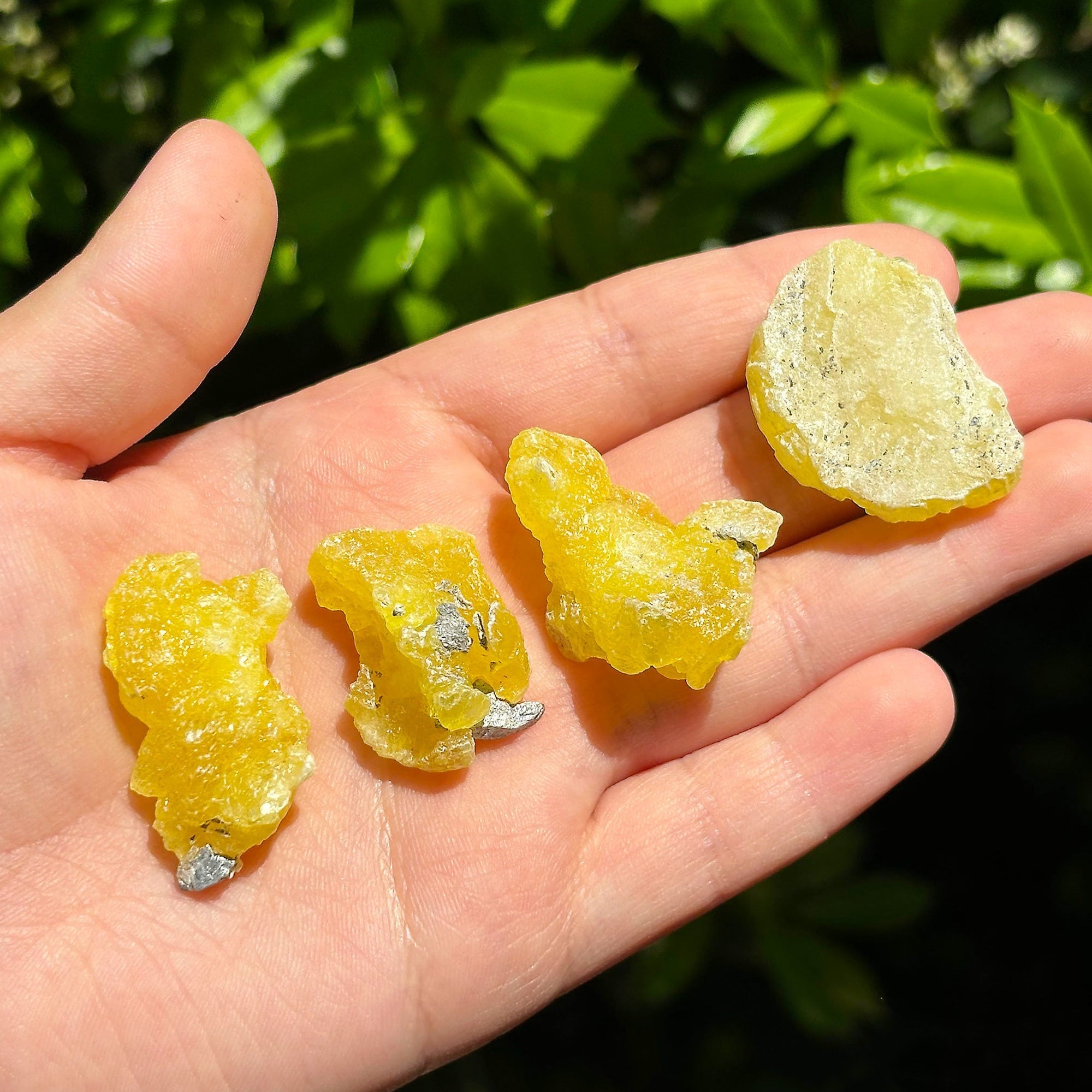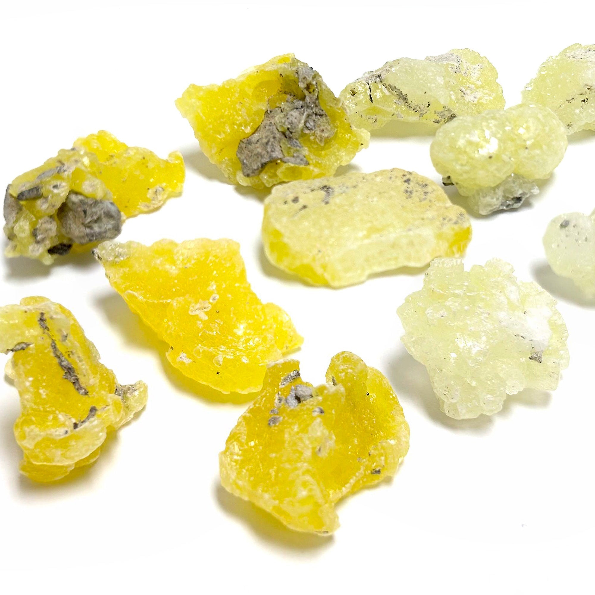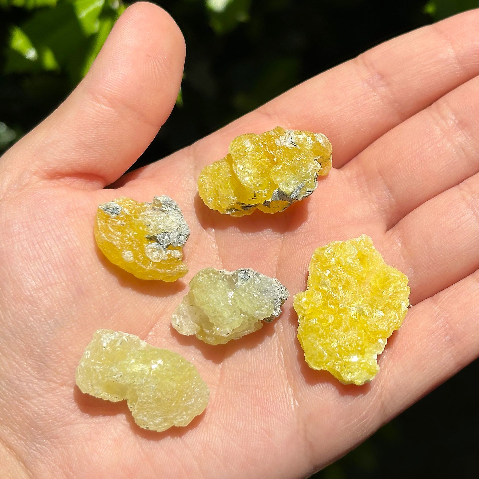 Straight from Pakistan, fall in love with these beautiful pieces of Brucite! Featured in these stunning pieces are vibrant shades of yellow accompanied by touches of white and gray. Please note you will only receive one piece of Brucite chosen at random, please allow for some variance between pieces such as size, shape, and color.