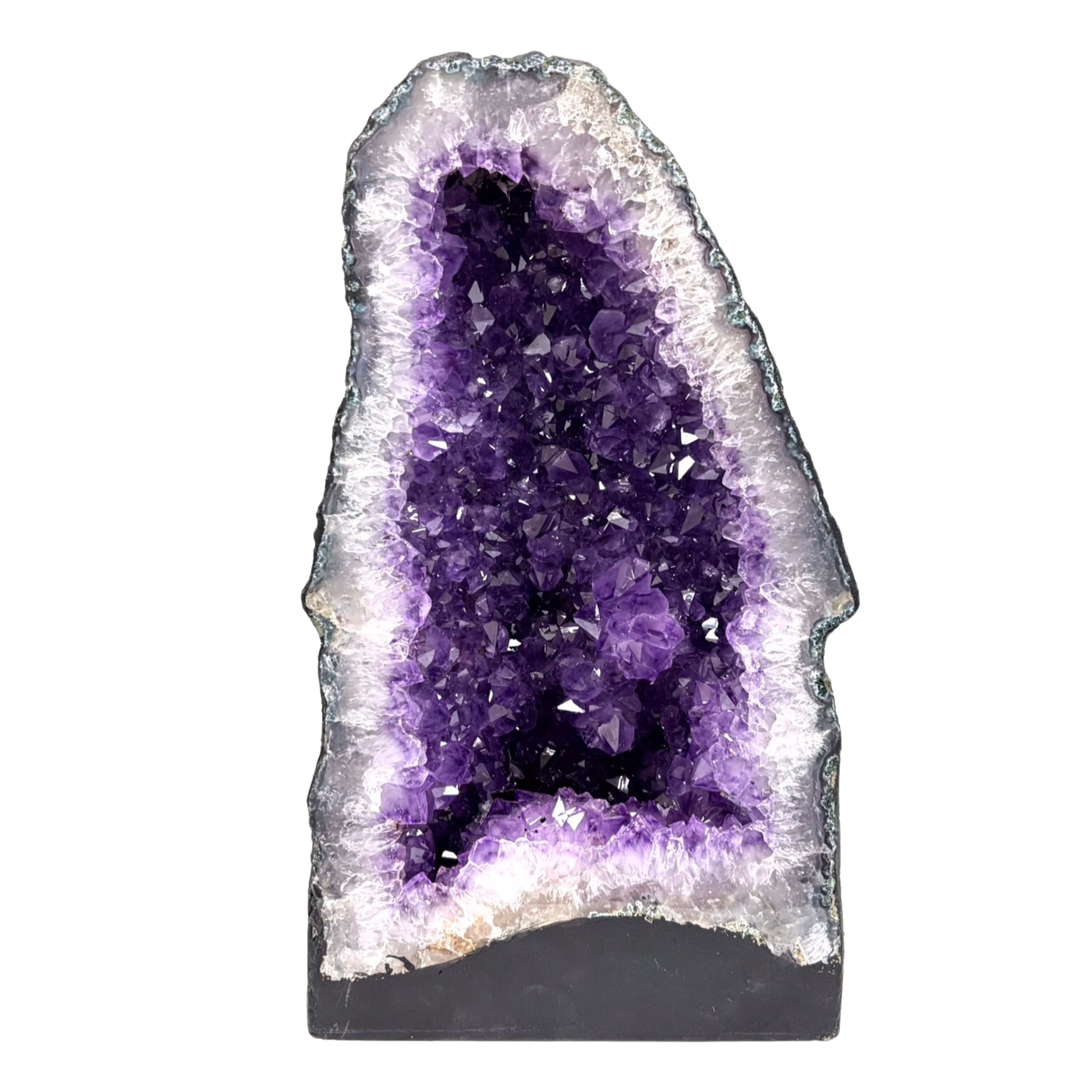 The Amethyst Crystal Geode is not just a decorative piece, but a powerful tool for energy balance and spiritual growth. Amethyst is known for its calming and healing properties, making it an ideal crystal for meditation and stress relief. The geode's natural form allows for a continuous flow of energy, creating a harmonious and positive atmosphere in your space. Whether you're a crystal enthusiast, a meditation practitioner, or simply someone who appreciates the beauty of nature, this geode is a perfect addition to your collection or home decor.