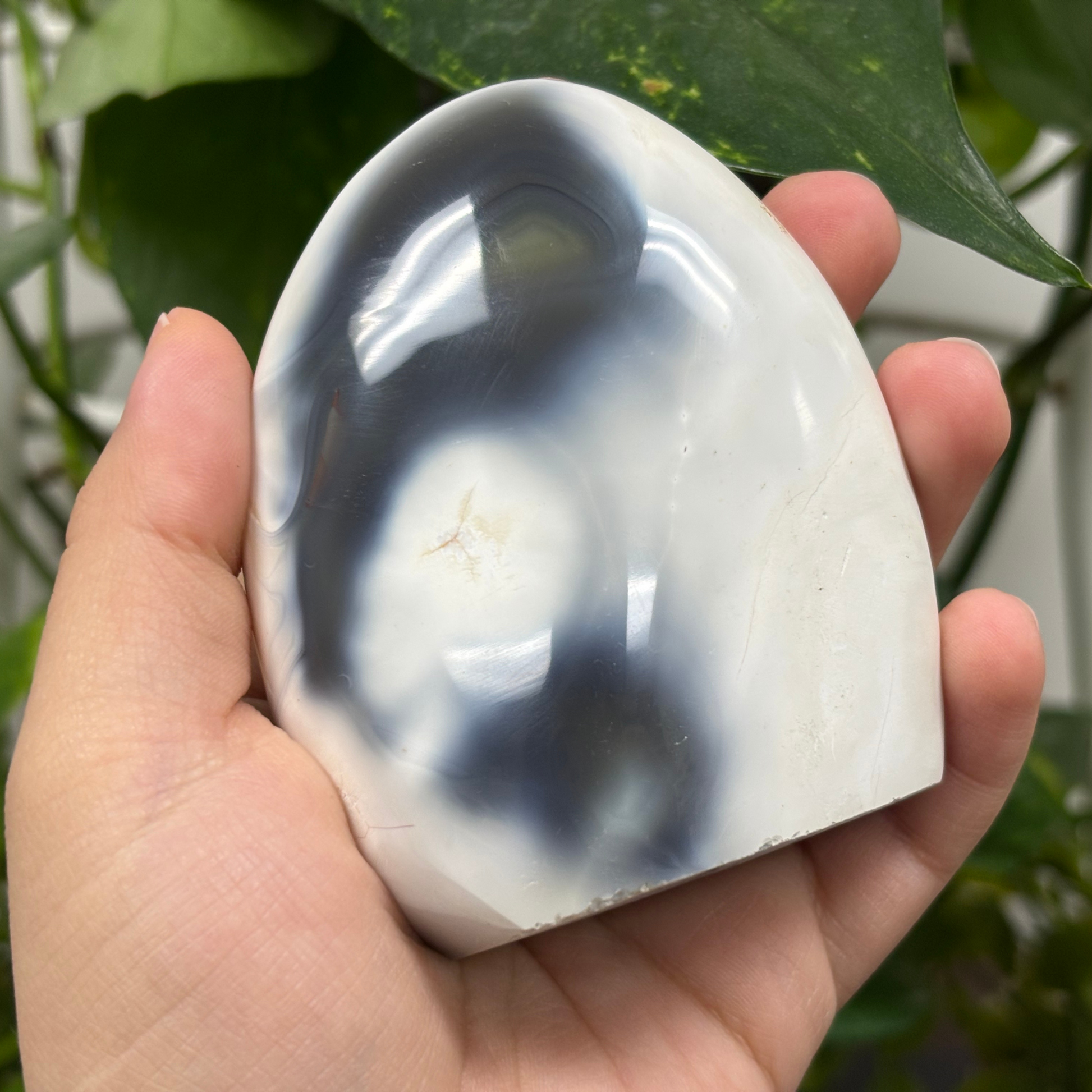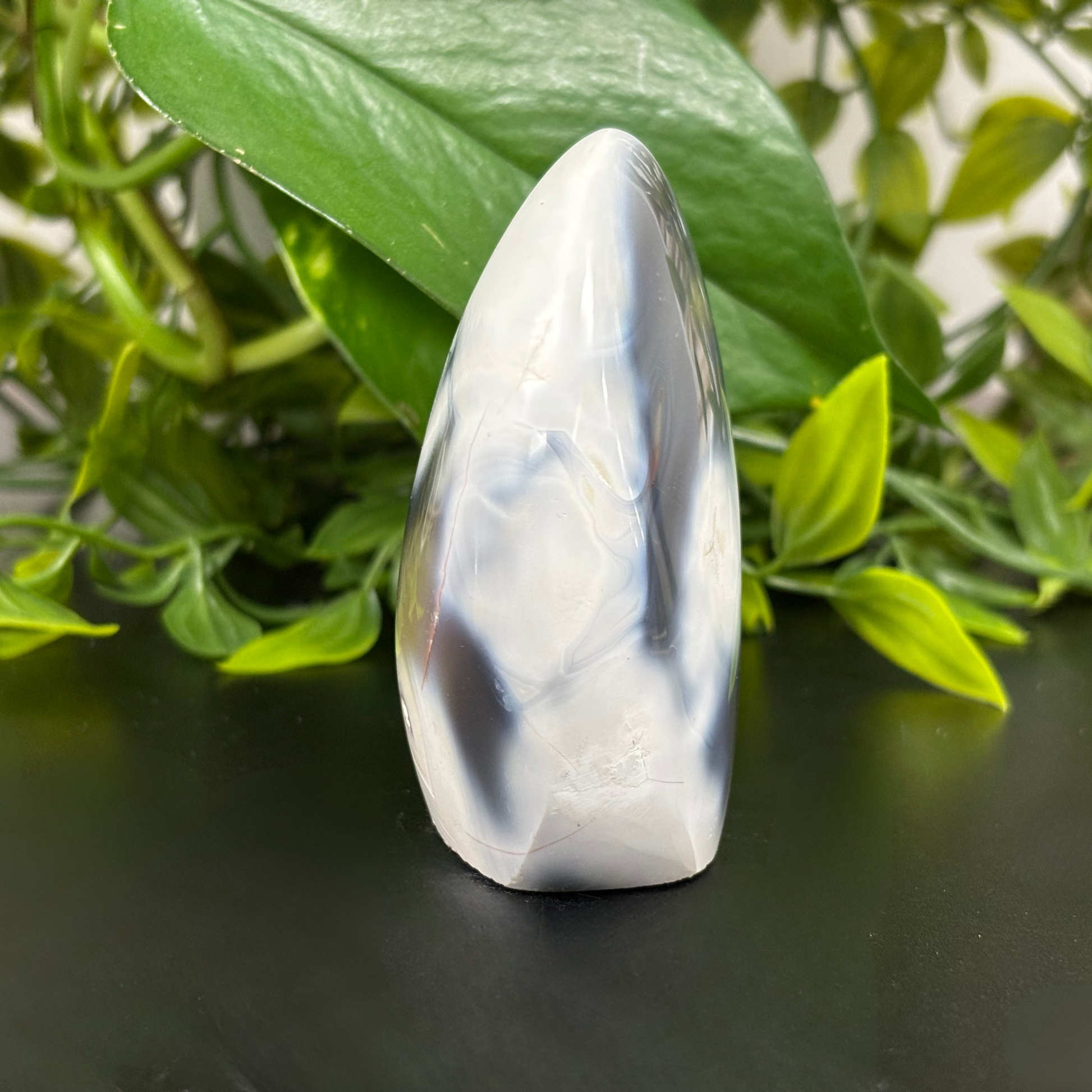 Ideal as display pieces, paperweights, or natural accents, this Orca Agate freeform adds a touch of elegance and interest to desks, shelves, or tabletops. Its substantial weight and smooth surface give it a premium, high-quality feel that makes it popular with collectors and home décor enthusiasts alike. This piece offers a refined yet earthy aesthetic, blending natural artistry with polished craftsmanship.