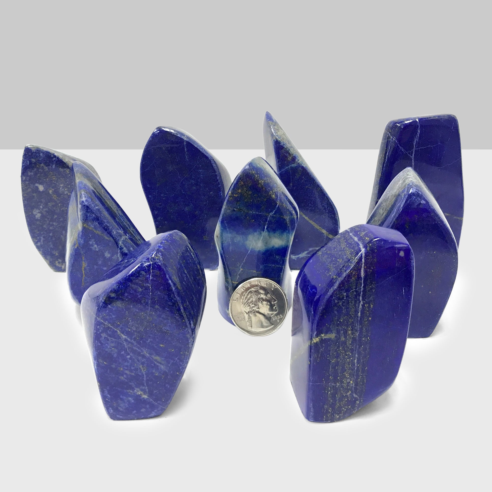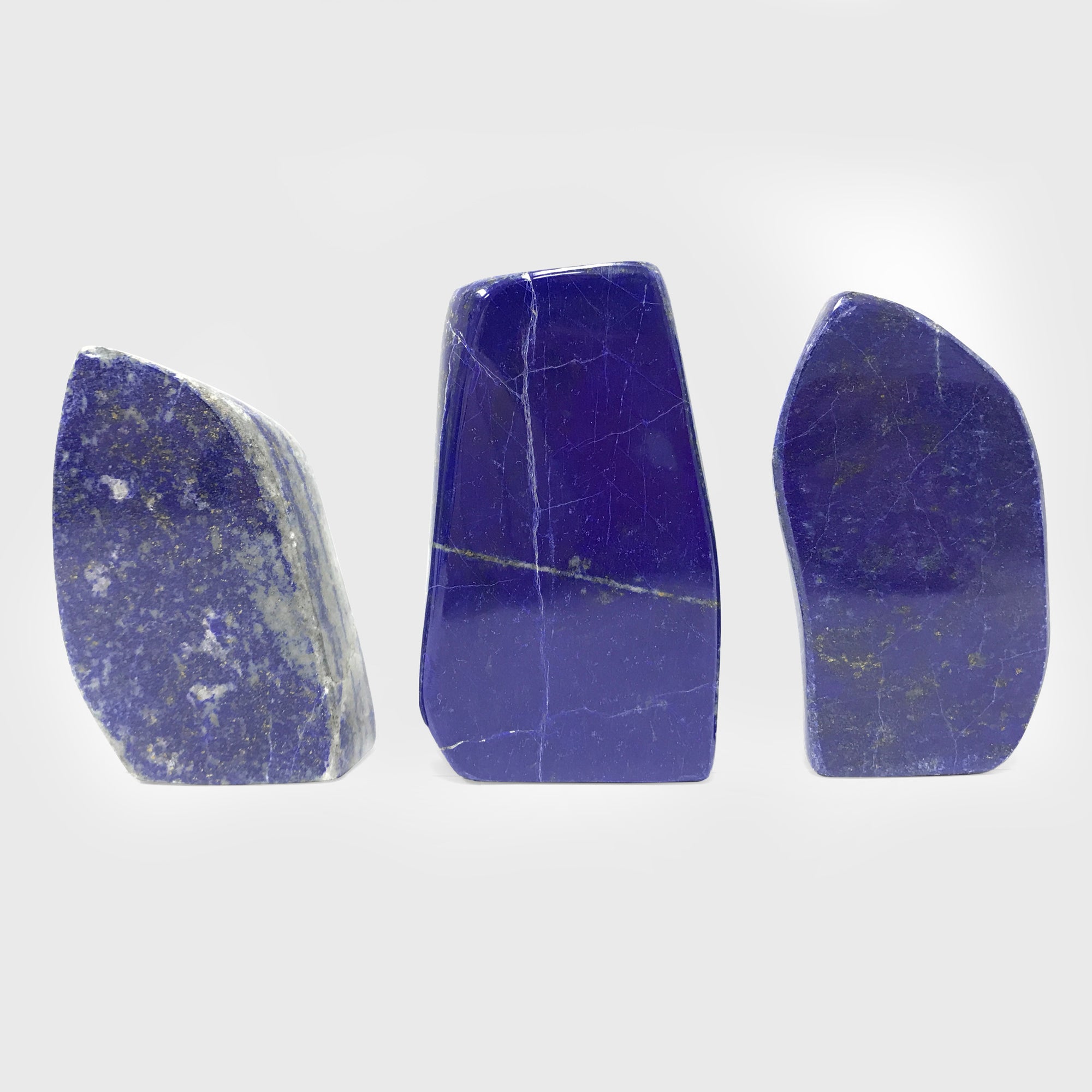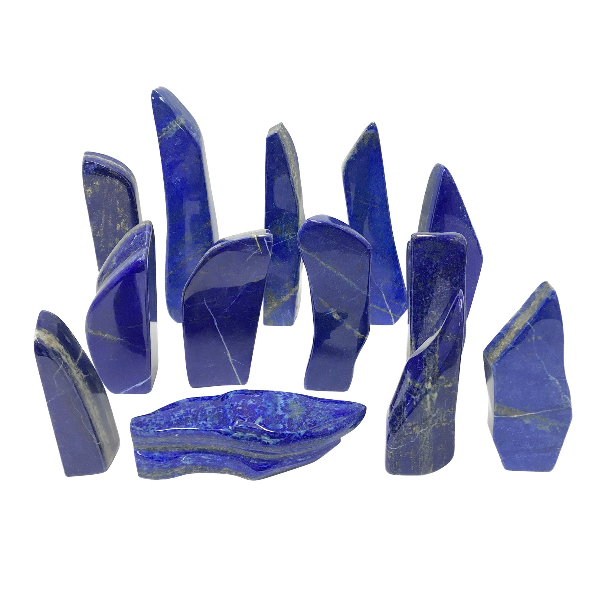 With vibrant shades of blue accompanied by touches of gray and subtle flecks of Pyrite, these Lapis Lazuli free forms are sure must haves! Incredible quality paired with everlasting beauty, these Lapis Lazuli free forms will surely make the perfect addition to any home or collection! Please note you will only receive one Lapis Lazuli freeform chosen at random. Due to the use of natural stone please allow for some variance between free forms such as size, shape, and color.