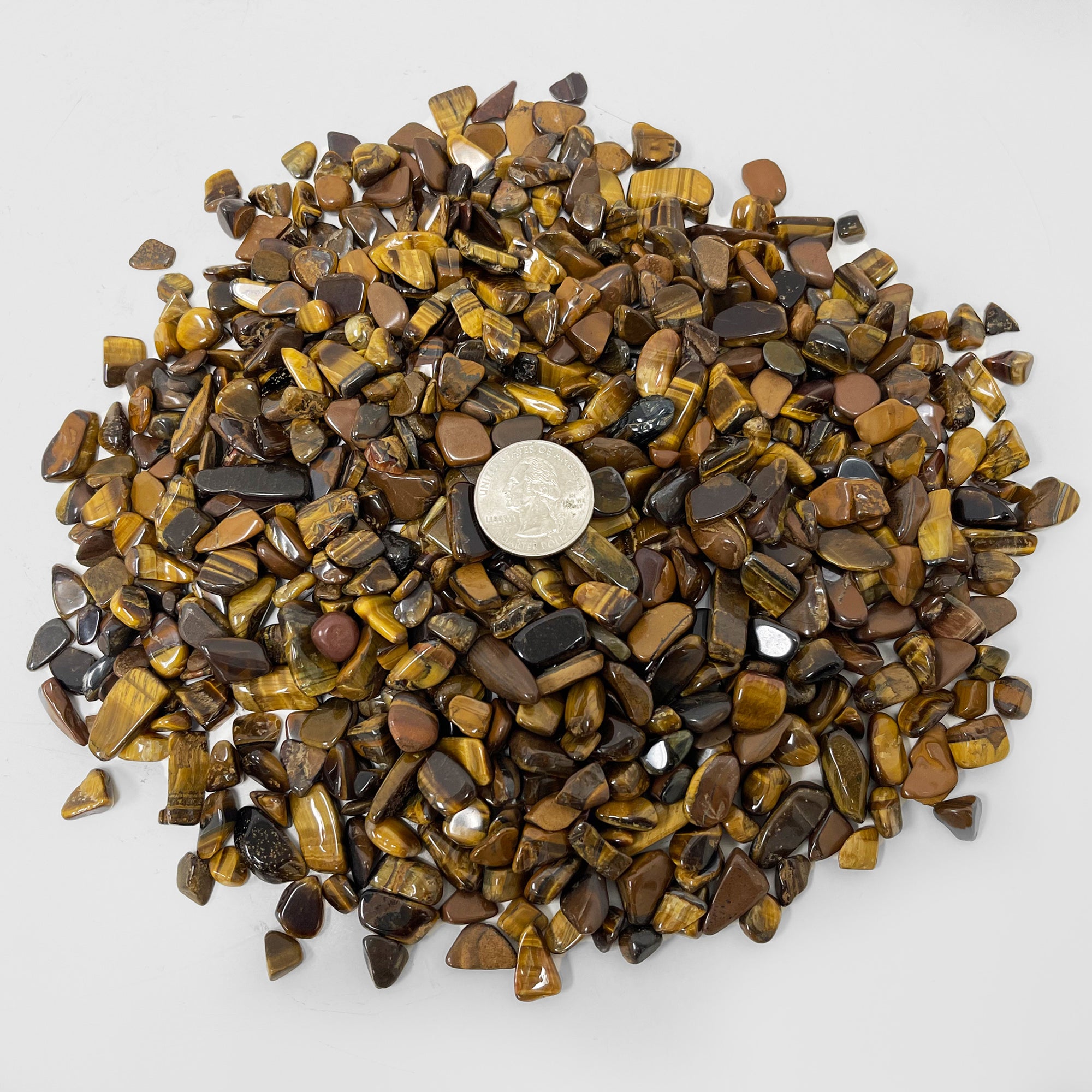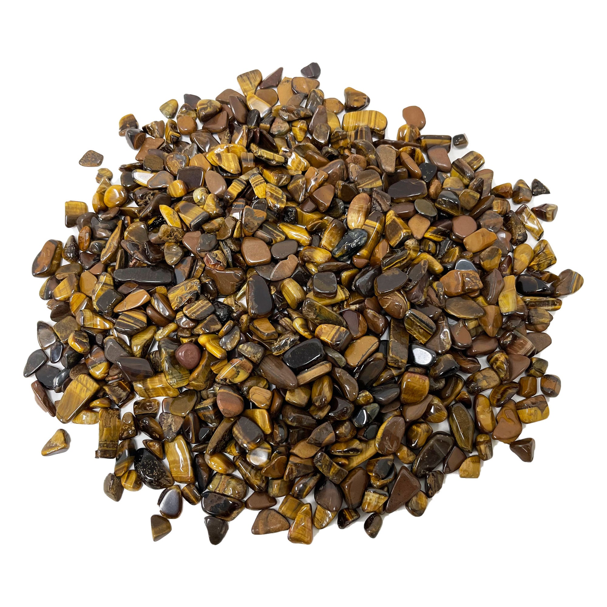 These Tiger Eye polished chips are approximately 0.16" x 0.4" (4mm to 10mm) in size and weigh 1 lb (460 grams). Useful for jewelry making, home decoration, art design, stone collecting, etc.