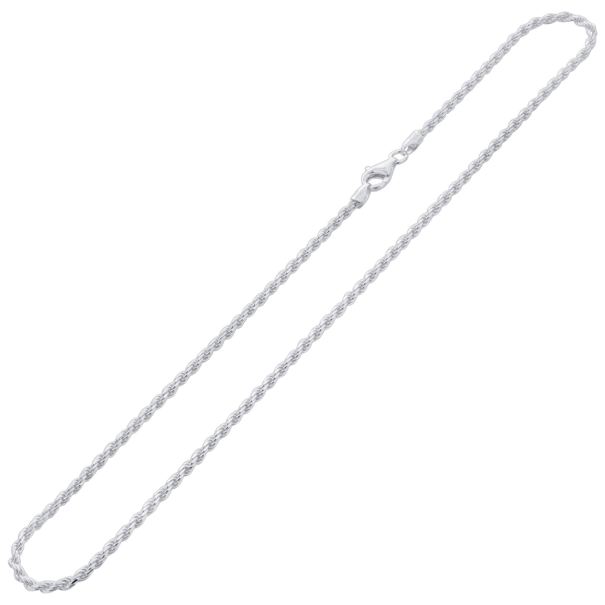 These dazzling 925 sterling silver chains are perfect additions to any outfit for that subtle chic touch! We offer these rope chain necklaces in a variety of sizes in order for you to get that perfect fit you’re searching for. We have sizes 16in, 18in, 20in, 22in, 24in, and 30in. This chain necklace contains a thickness of 2.5mm as well as a lobster claw clasp to ensure a secure and comfortable fit. Wear alone or add a pop of color with one of our gorgeous pendants from our extensive collection! Gem Avenue is positive you will not be left unsatisfied!
