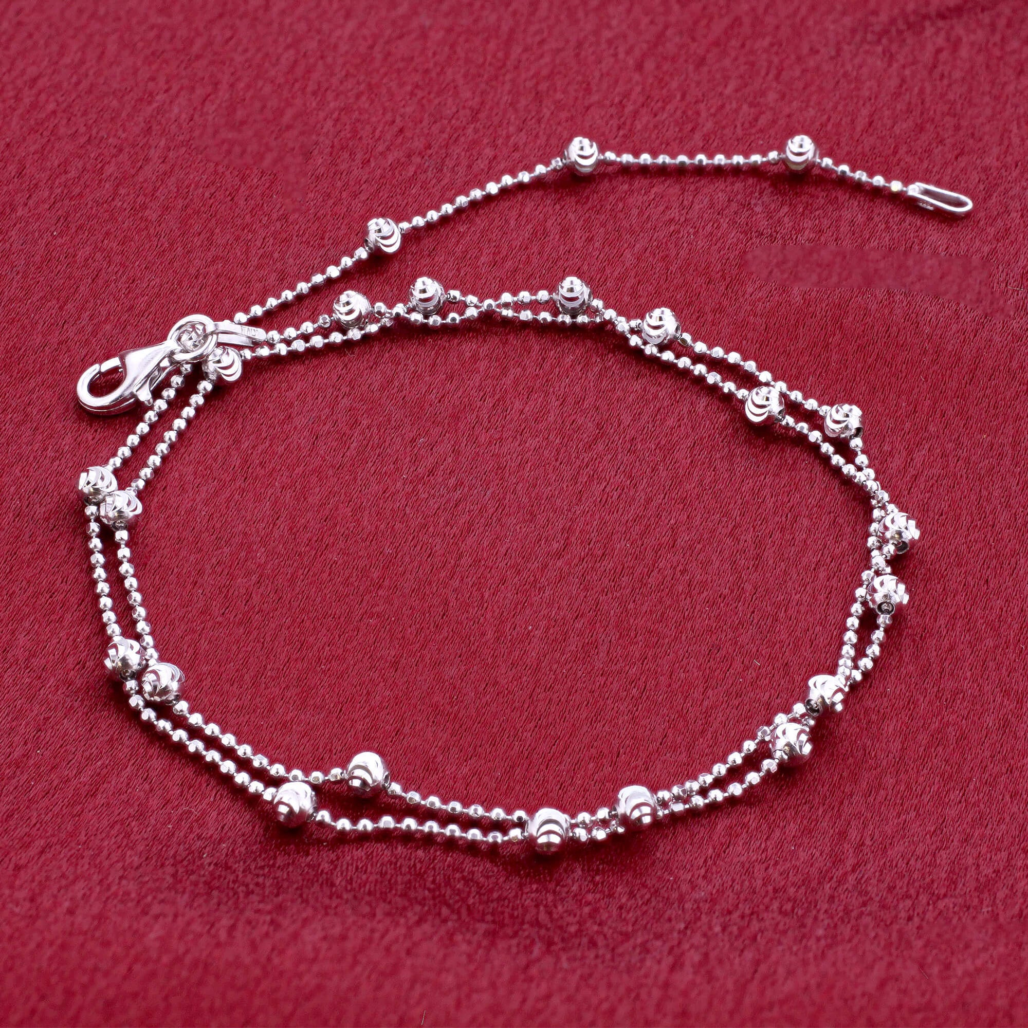- title_tag : 925 Sterling Silver Moon Cut Bead Chain Necklace Lobster Clasp - GC048