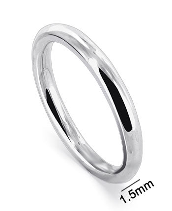 Sterling Silver 1.5mm Fully Rounded Wedding Band. A classic piece at a very affordable price. No need to worry about matching with your engagement piece, as this minimal design is sure to go with it.