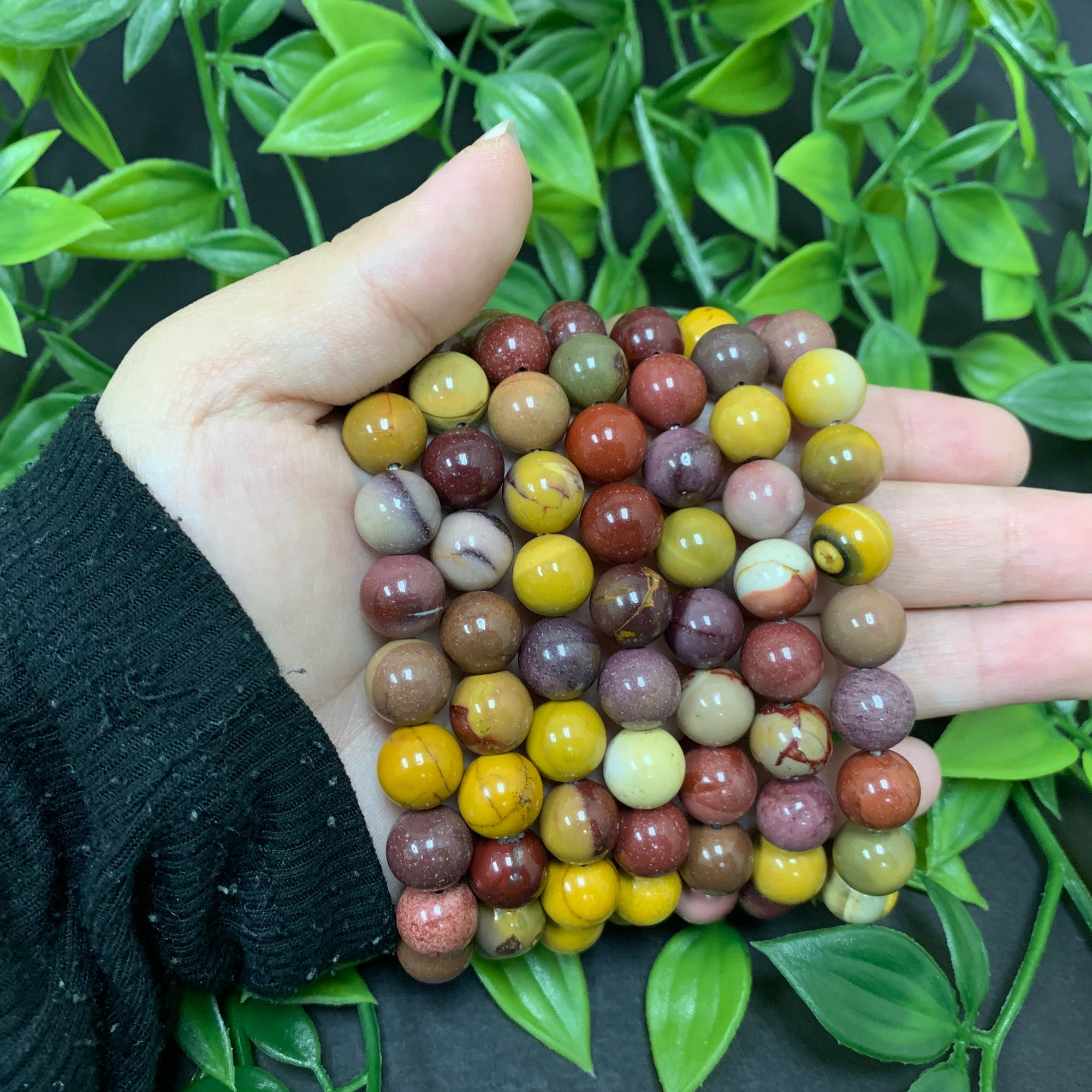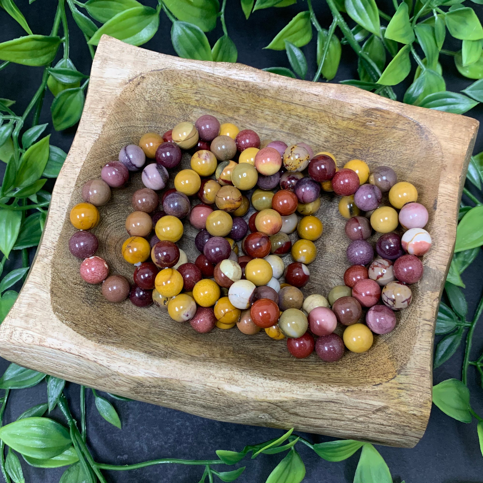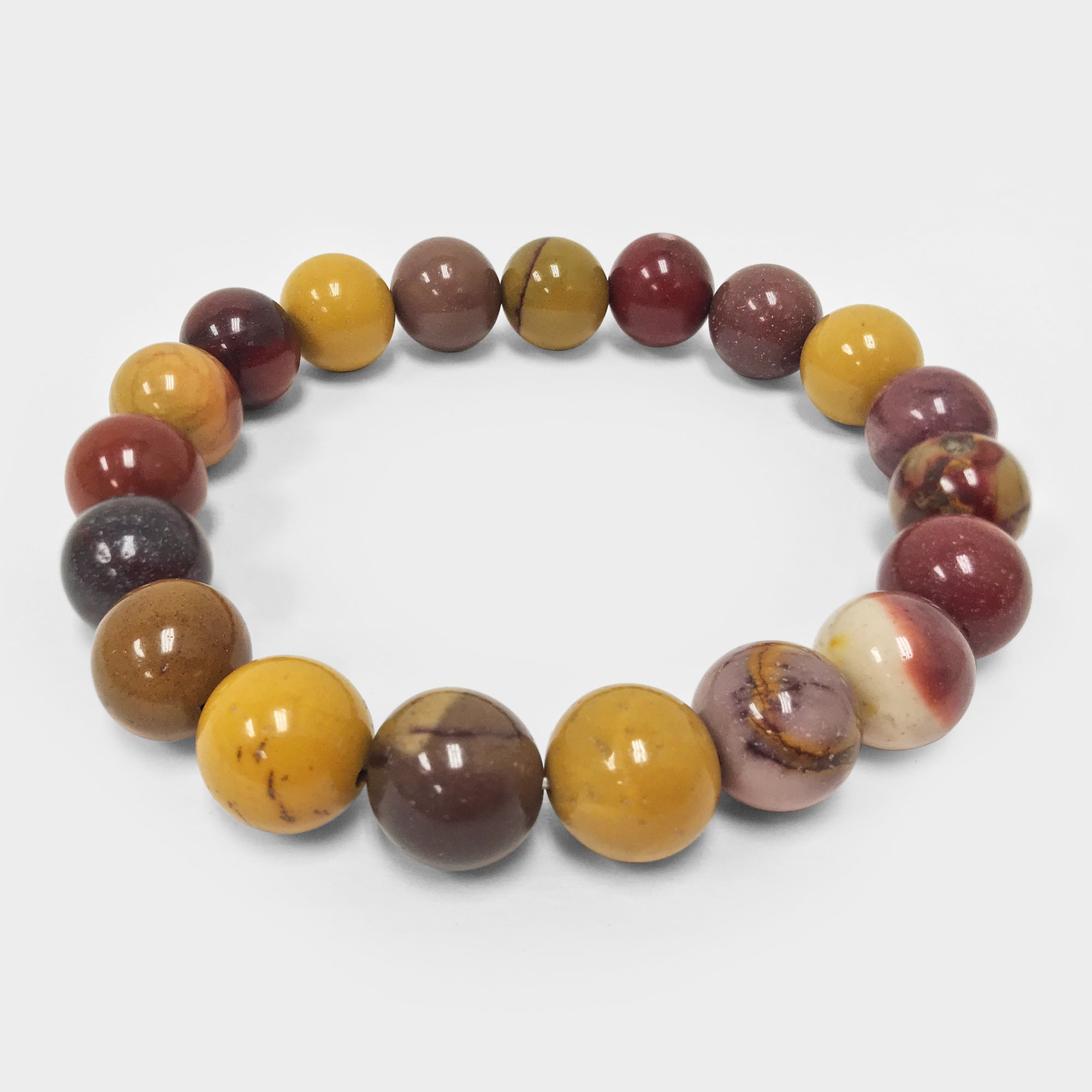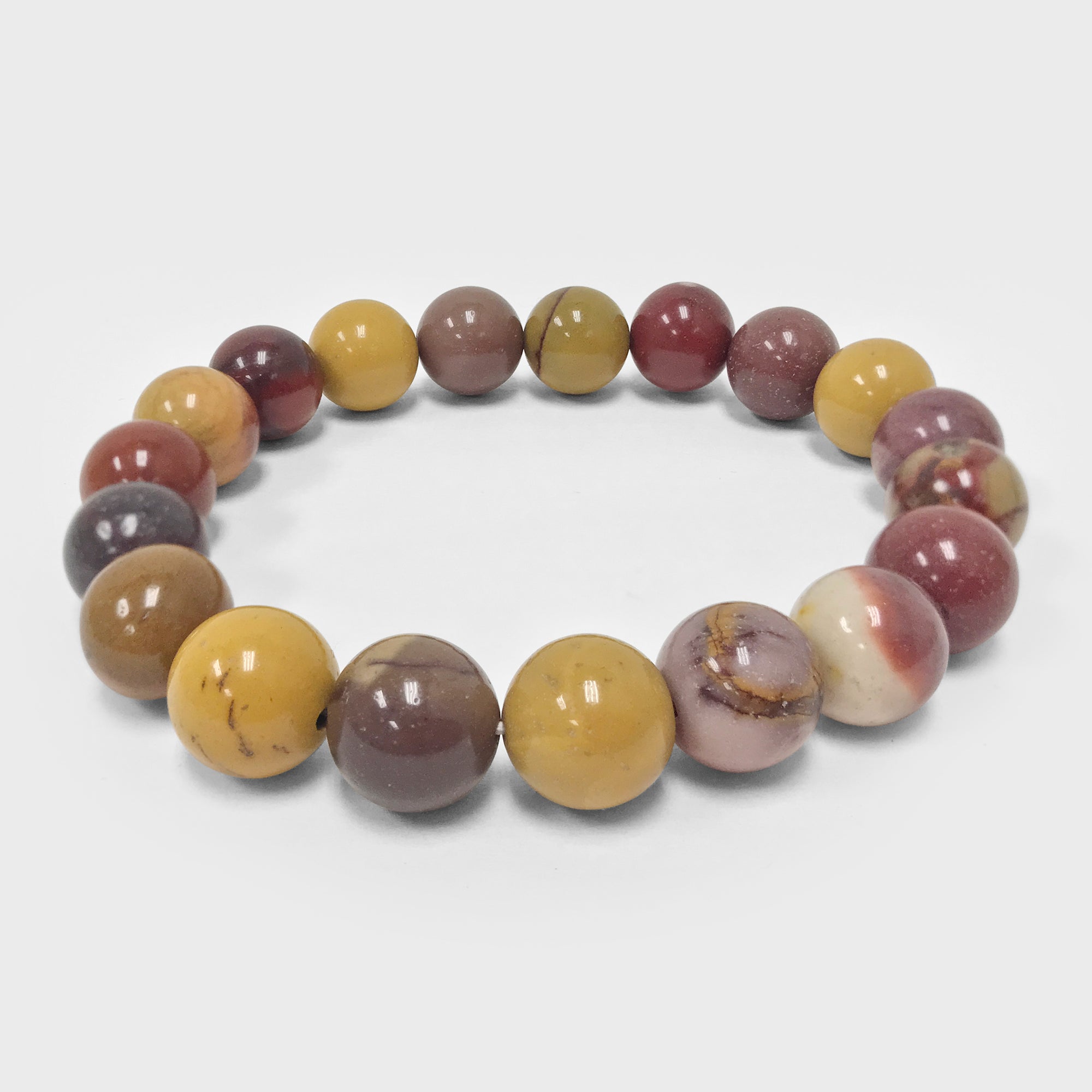 These bracelets are composed of 10mm Mookaite beads that have vibrant colors such as yellow, red, and white. These round bead bracelets are incredibly beautiful at an unbeatable price! Get yours today we are positive you will not be disappointed!