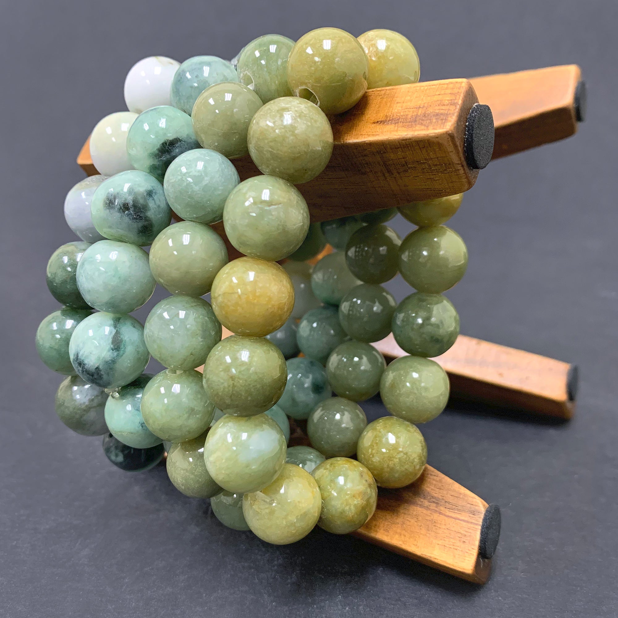 Each bracelet features 12mm spherical Jade beads, showcasing a wealthy, inexperienced hue, with a few beads displaying delicate hints of white or various shades of inexperienced. Please note that the green tones may additionally vary from one bracelet to another, with a few acting darker or lighter.