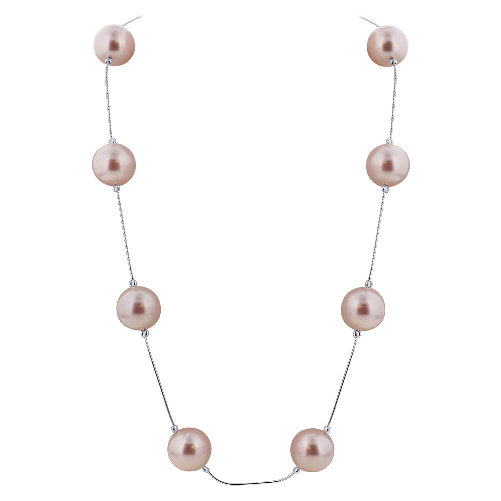 - title_tag : 12mm Light Pink Simulated Austrian Pearl 925 Silver Necklace - SCNK360