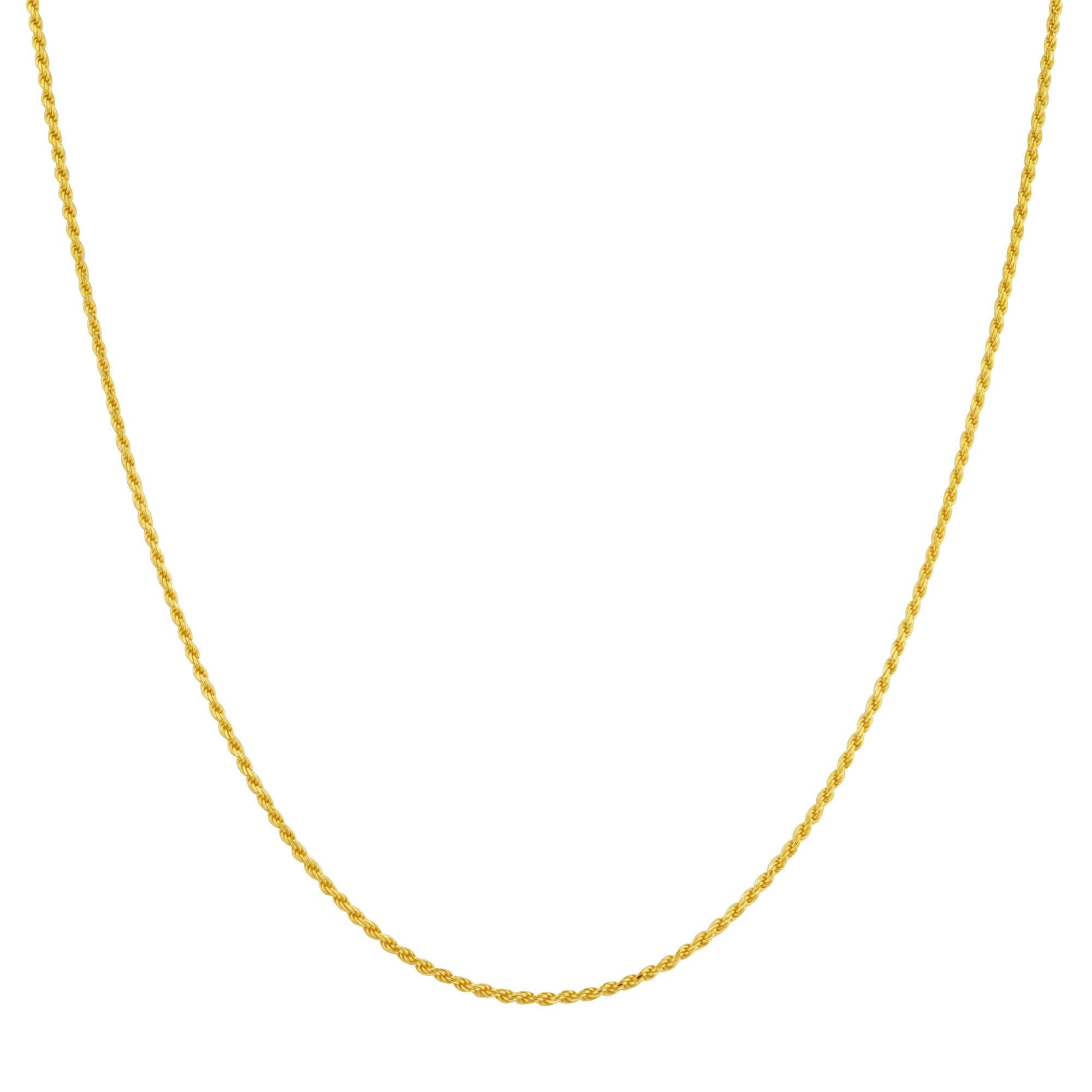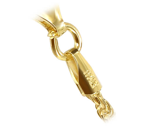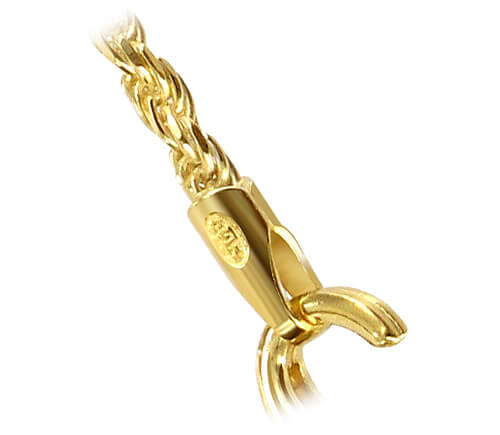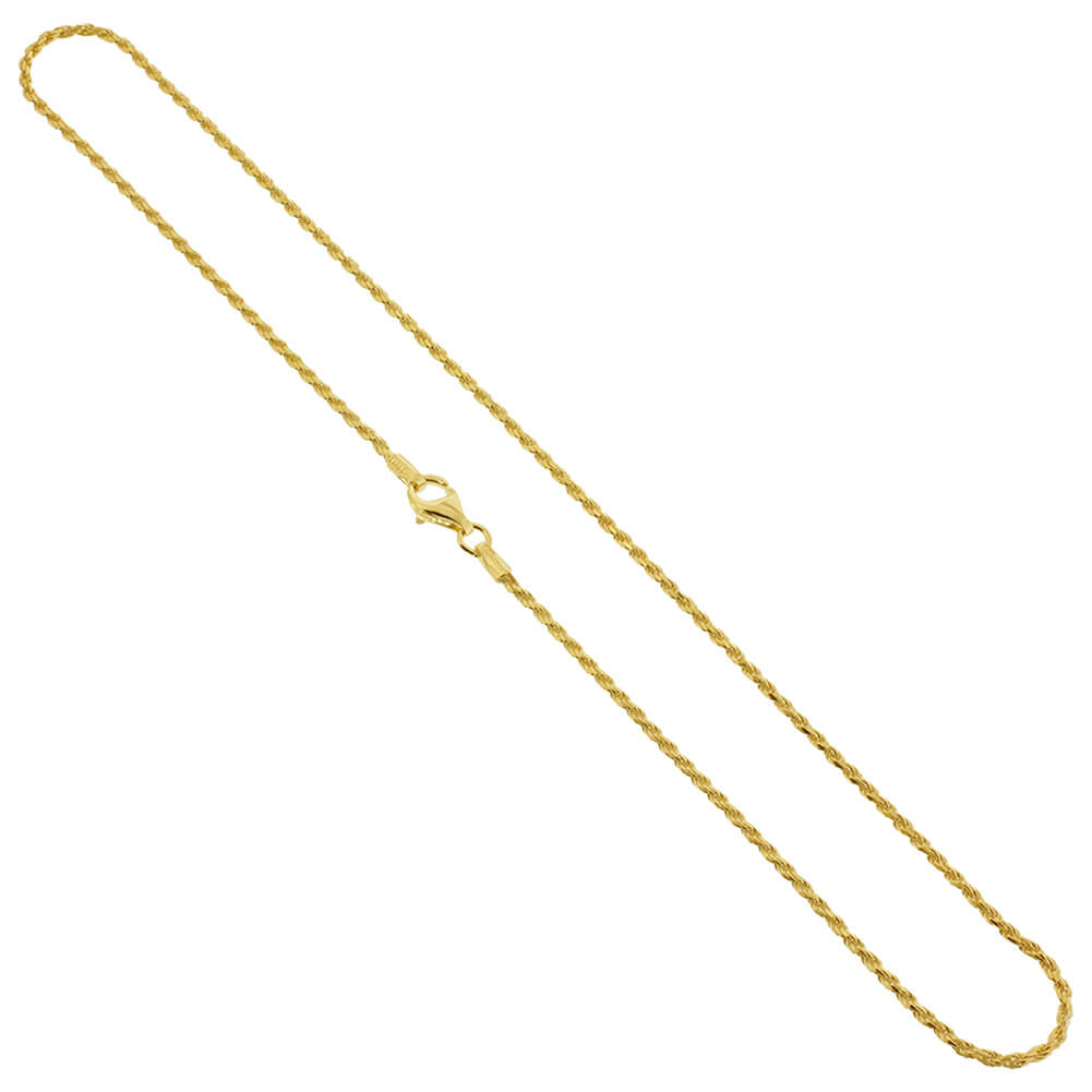These lovely gold rope chain necklaces come in 7 different sizes: 14, 16, 18, 20, 22, 24, and 30 inches. These beautiful necklaces glisten and shimmer in the light, perfect for everyday wear!. The classy chain measures 1.5mm wide and comes with a secure lobster claw clasp. This 14k gold vermeil 1.5mm rope chain necklace is crafted with quality materials, ensuring its beauty and durability. The lobster claw clasp guarantees a secure fit.