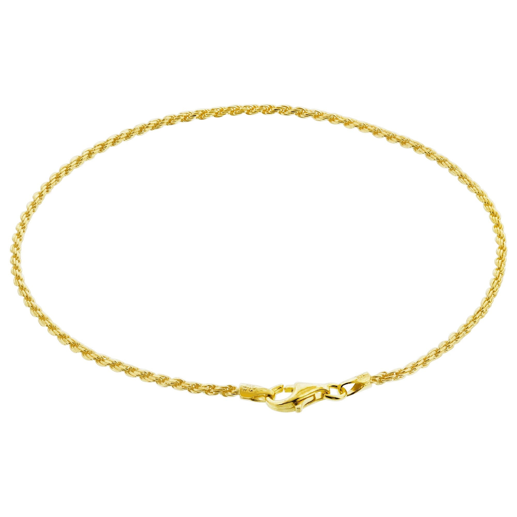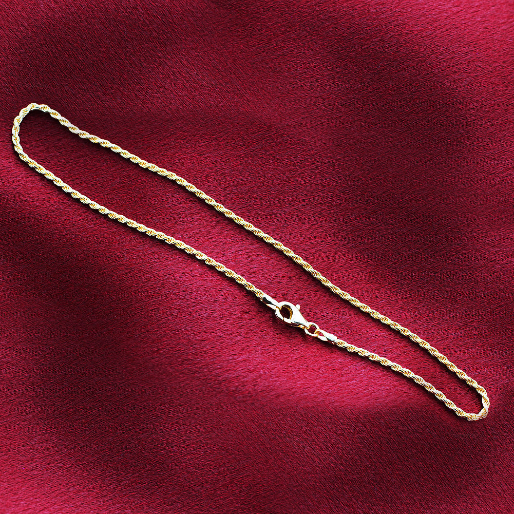 Stunning gold rope chain anklet. These gorgeous gold anklets come in three sizes, from 9 inches to 11 inches. Each anklet comes with a secure clasp to ensure a great fit. This is a 14 KT yellow gold over sterling silver 1.5 rope vermeil chain anklet.