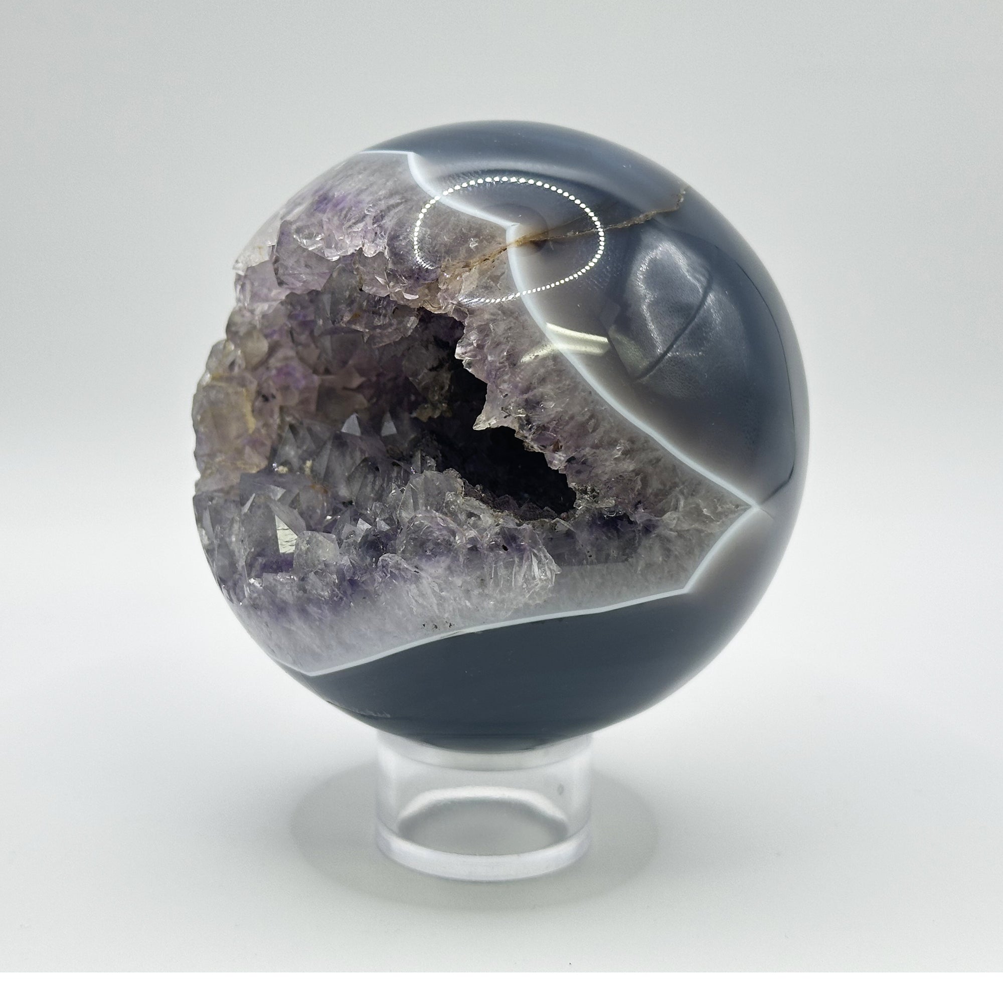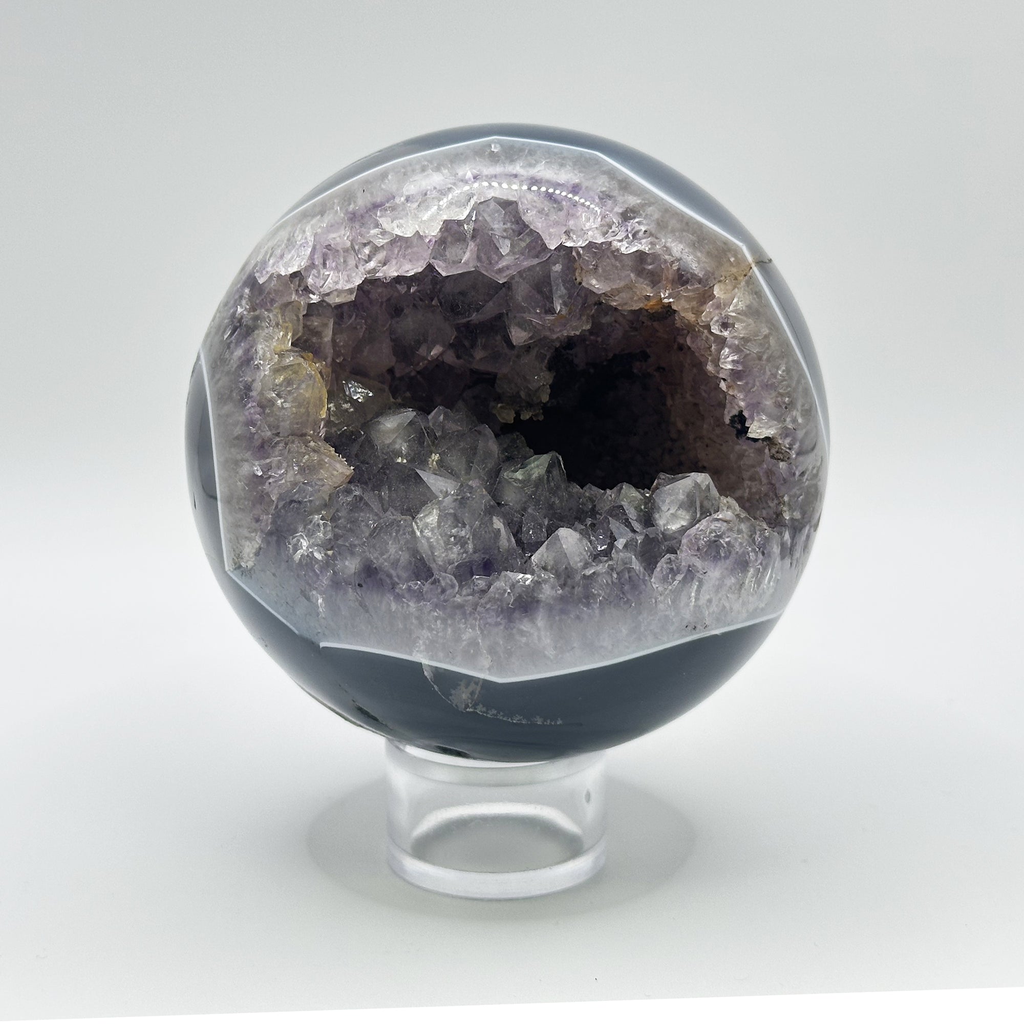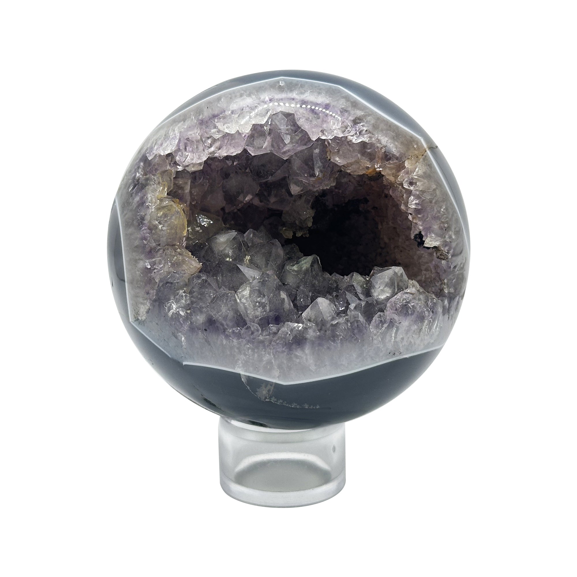 Natural Amethyst Geode Sphere Crystal Ball Healing Stone for Meditation, Energy Cleansing & Home Decor - RBL336