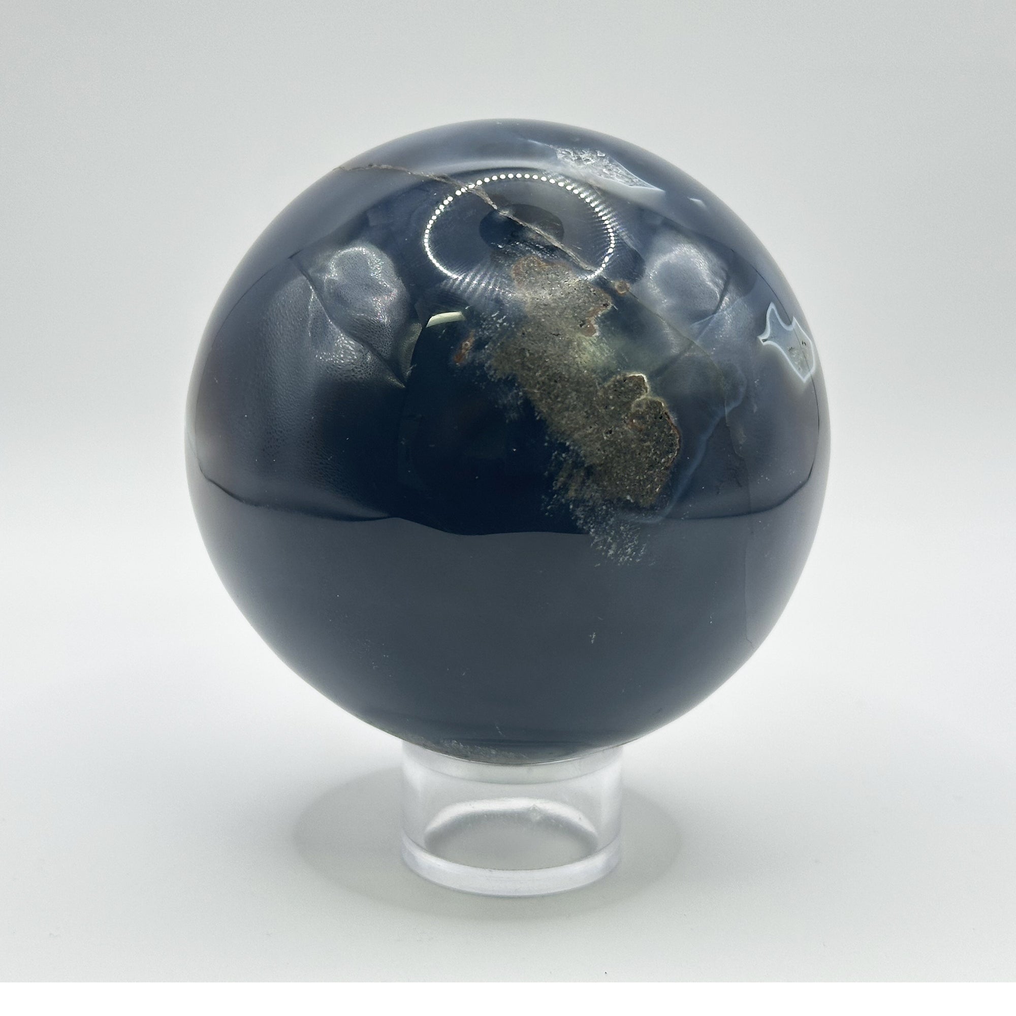 This amethyst sphere is a stunningly polished piece that showcases the rich purple tones and natural banding characteristic of high-quality amethyst. Featured on this sphere are eye-catching crystals that sparkle beautifully once met with light. With an approximate weight of 1.82lbs, this Amethyst sphere will make a perfect addition to any home or collection!