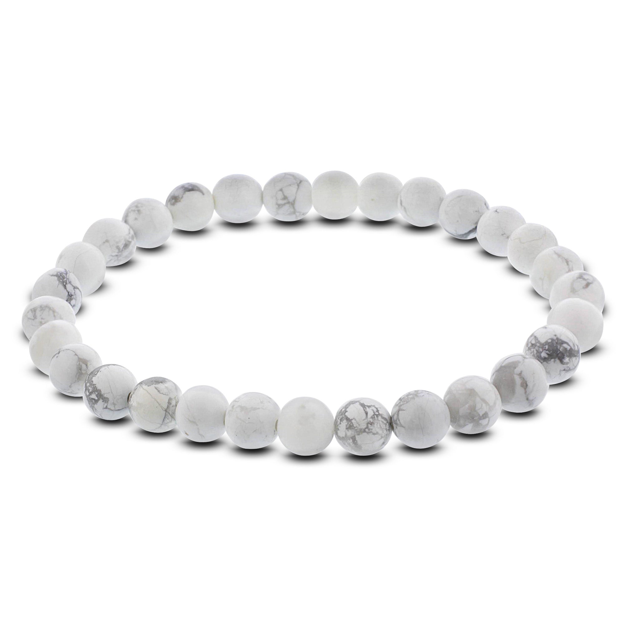 6mm Howlite Gemstone Round Bead Unisex Stretch Bracelet