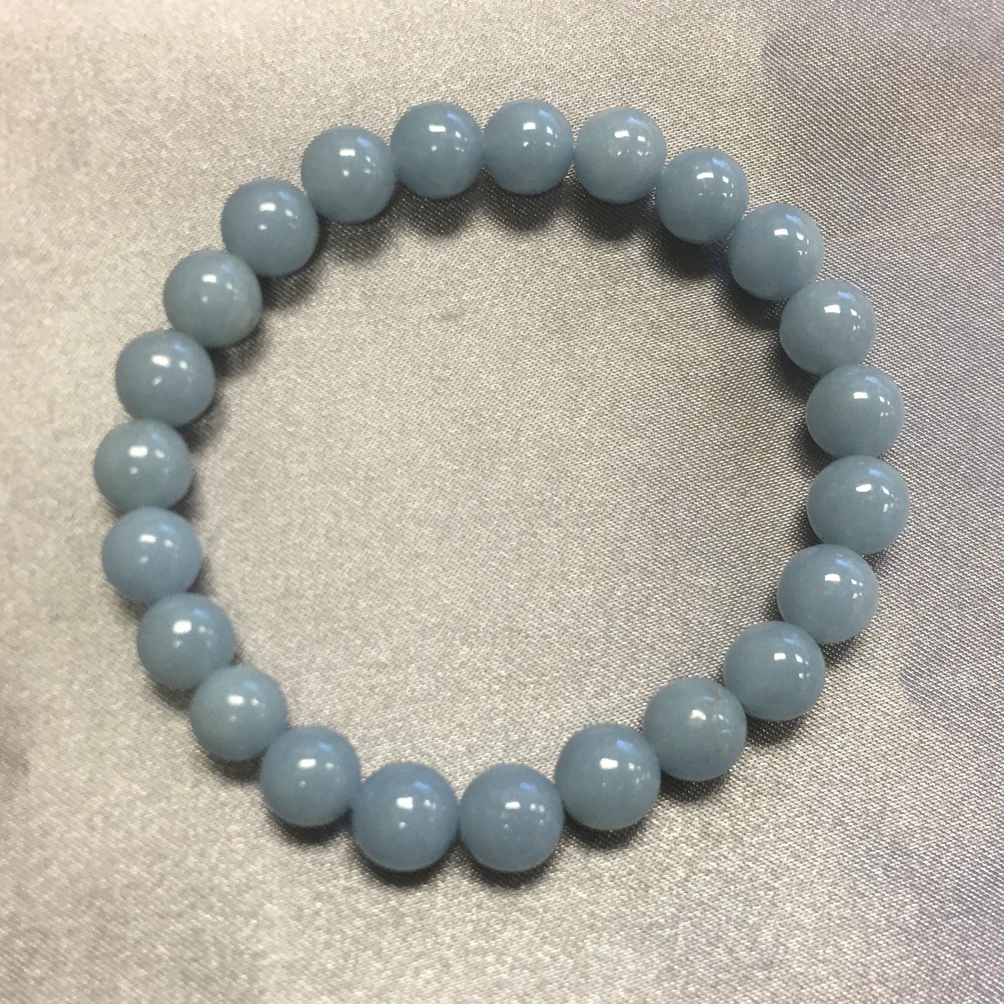 You will fall in love with this gorgeous bracelet. Genuine Angelite 8mm Gemstone Beads Stretch Bracelet. A great choice at an unbeatable price. A great way to dress up any outfit, you cannot go wrong with this gorgeous bracelet get yours now.