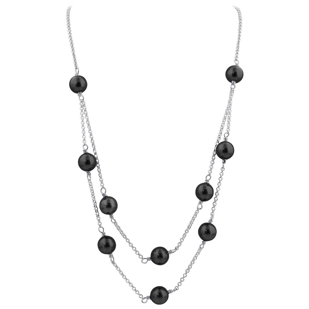 925 Sterling Silver Dark Grey Austrian Pearl Strand Necklace. Each pearl measures 8 mm. Drape this necklace around your neck for an instant touch of sophistication.