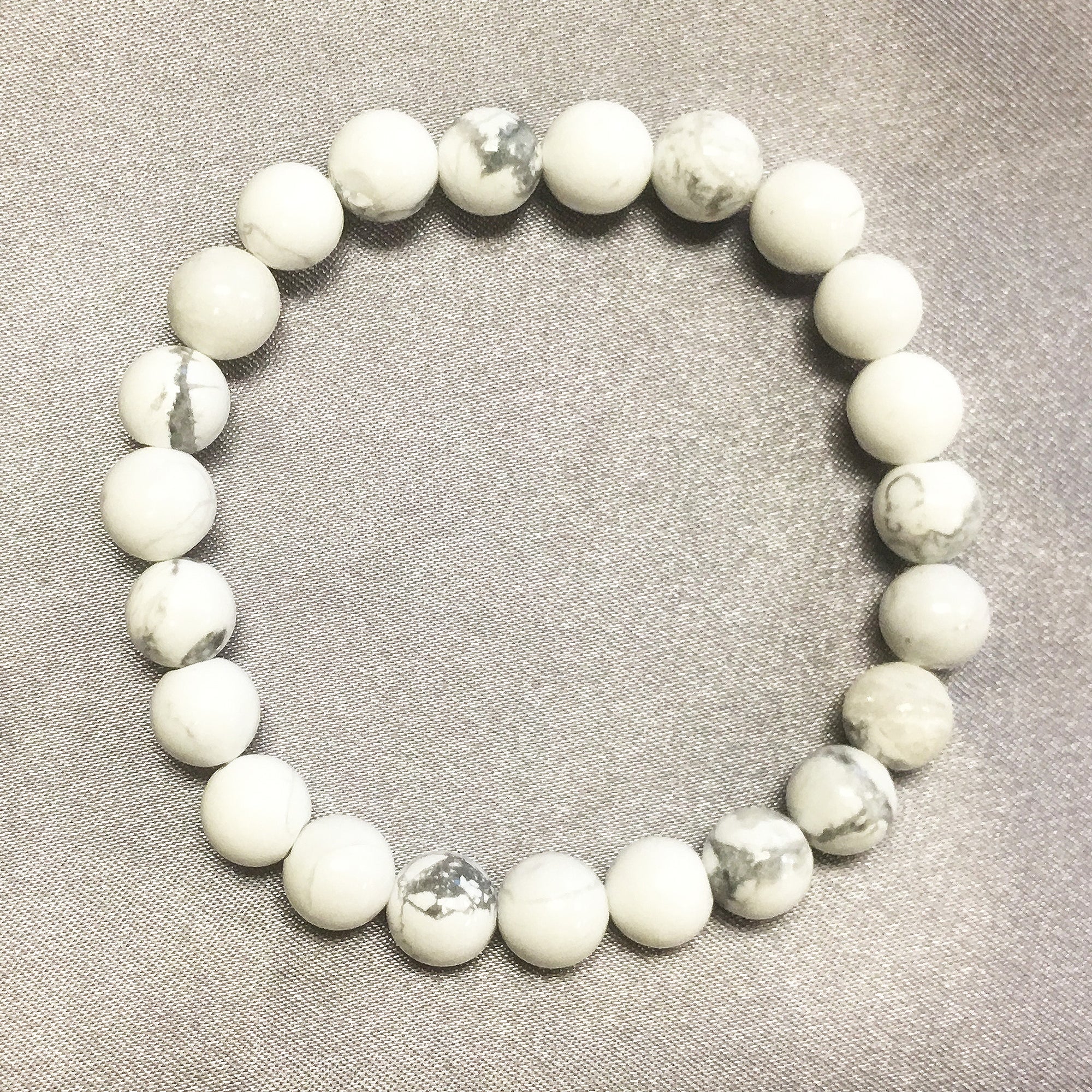 • title_tag : 8mm Howlite Gemstone Round Bead Stretch Bracelet - GB131