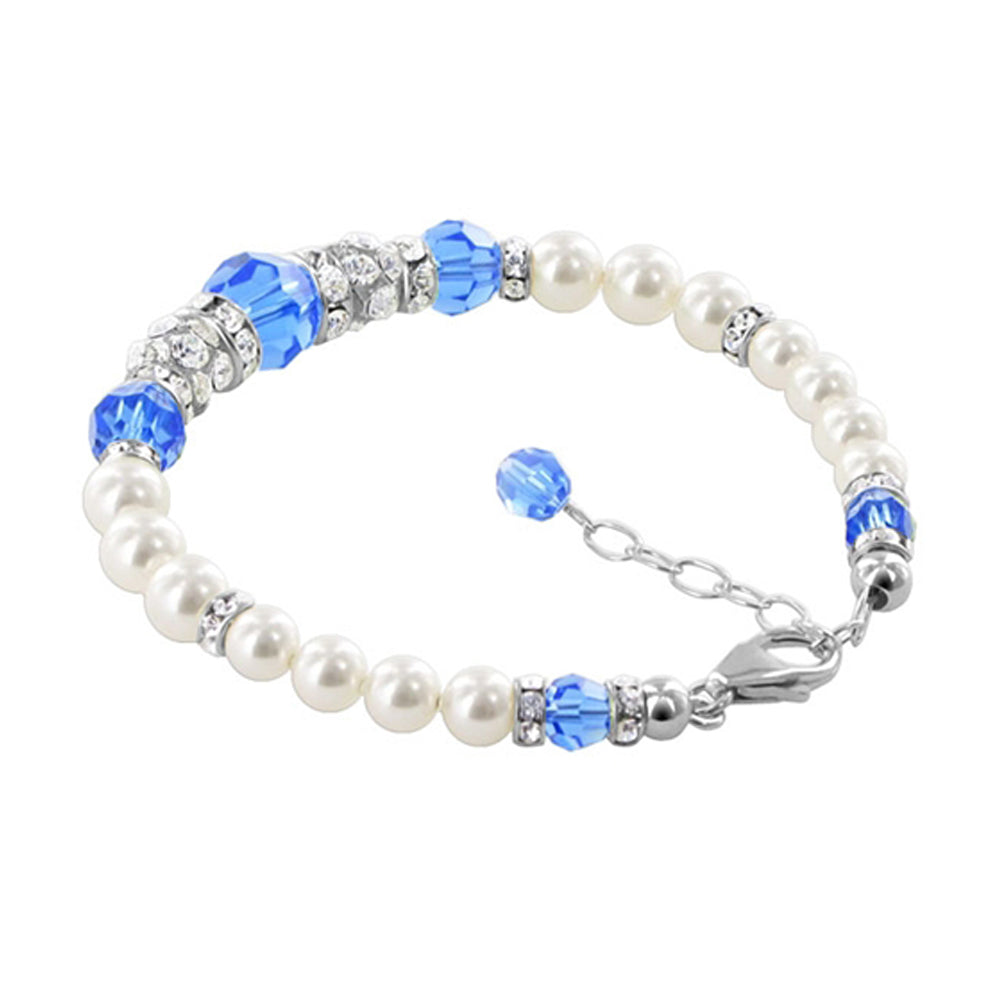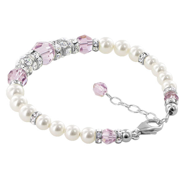 - title_tag : .925 Silver Bracelet with Simulated Pearls and Crystals - GBG46