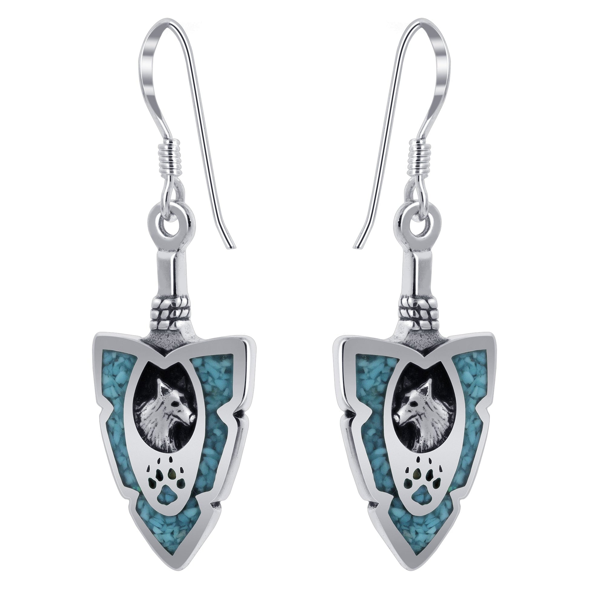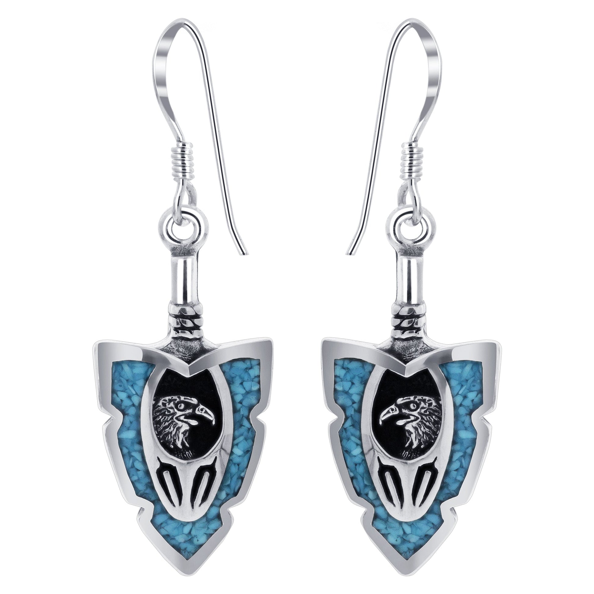 - title_tag : .925 Silver Hoop Shape Drop Earrings with Turquoise & Coral Inlay - GEG188