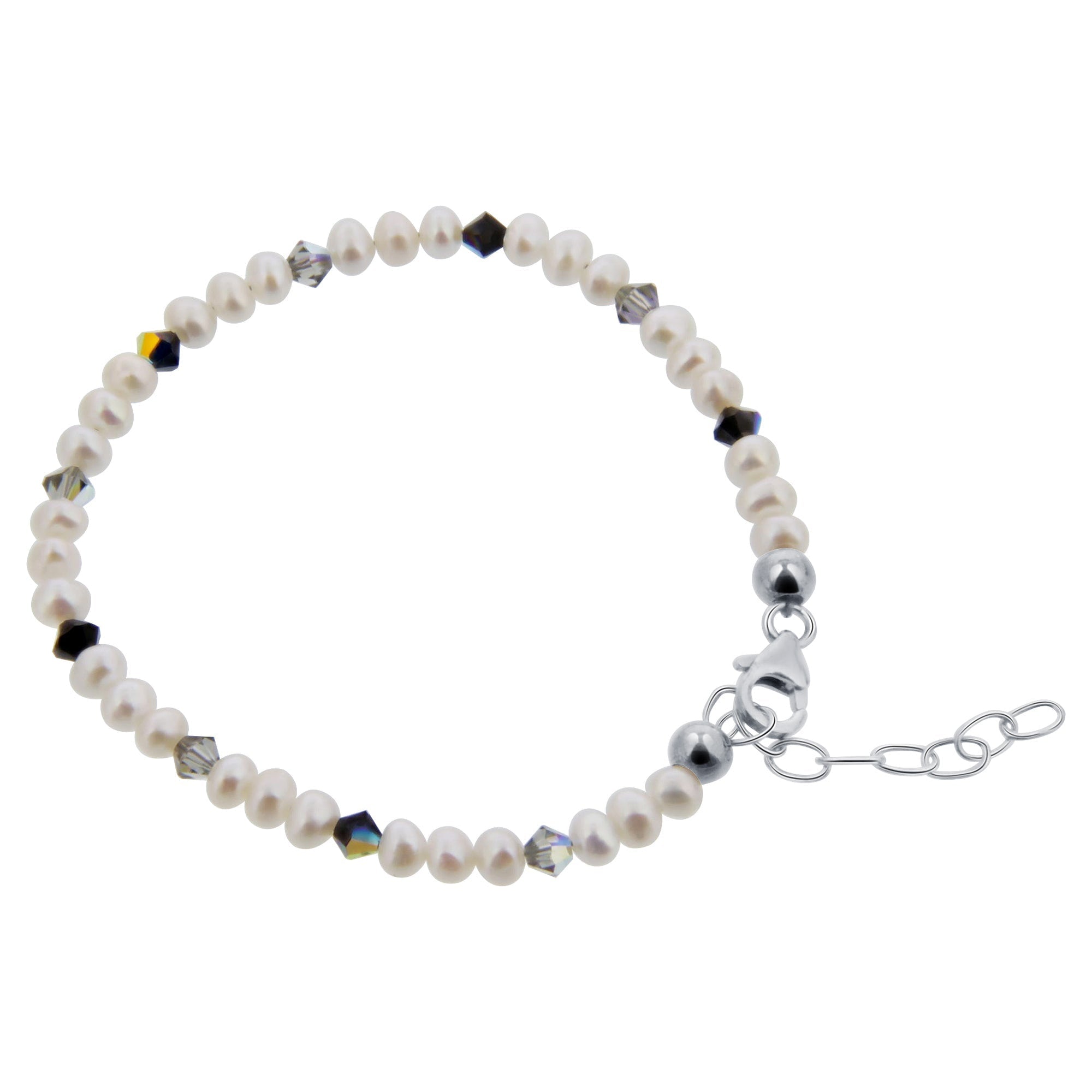 Sterling Silver Gorgeous Bracelet made with Austrian Crystals. Imitation Pearl is approximately 4.5mm wide. Bracelet made in .925 Sterling Silver. Length is adjustable from 7 to 8 inch with Lobster Claw Clasp in Sterling Silver.