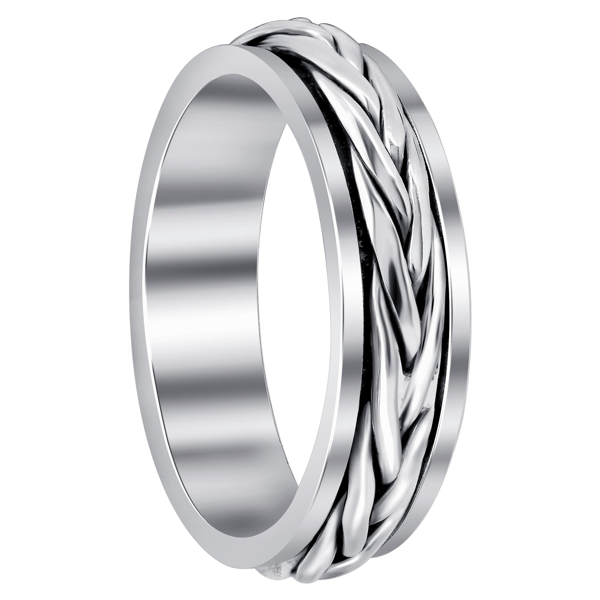 - title_tag : 925 Sterling Silver Braided Weave Spinner Fidget Ring - GR475