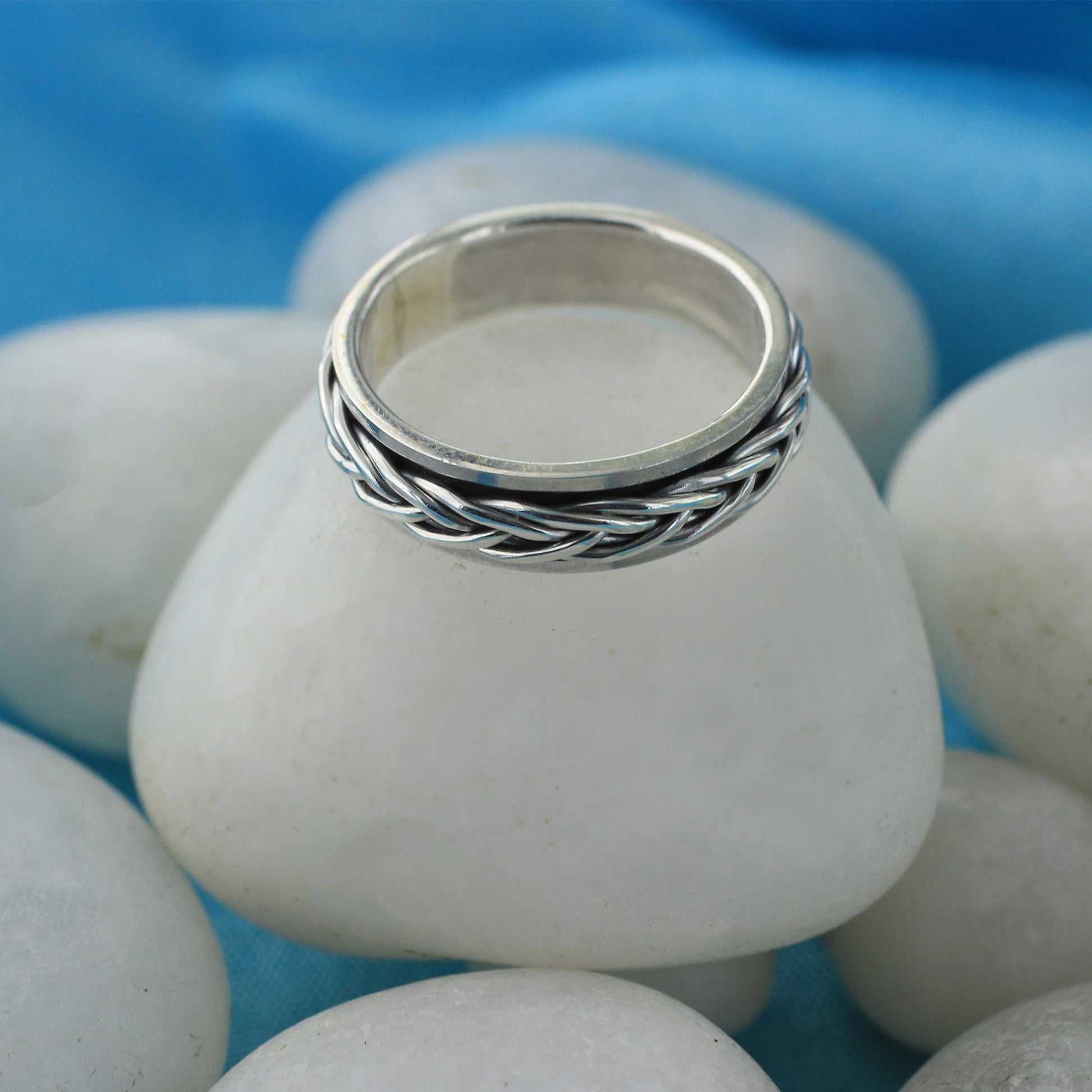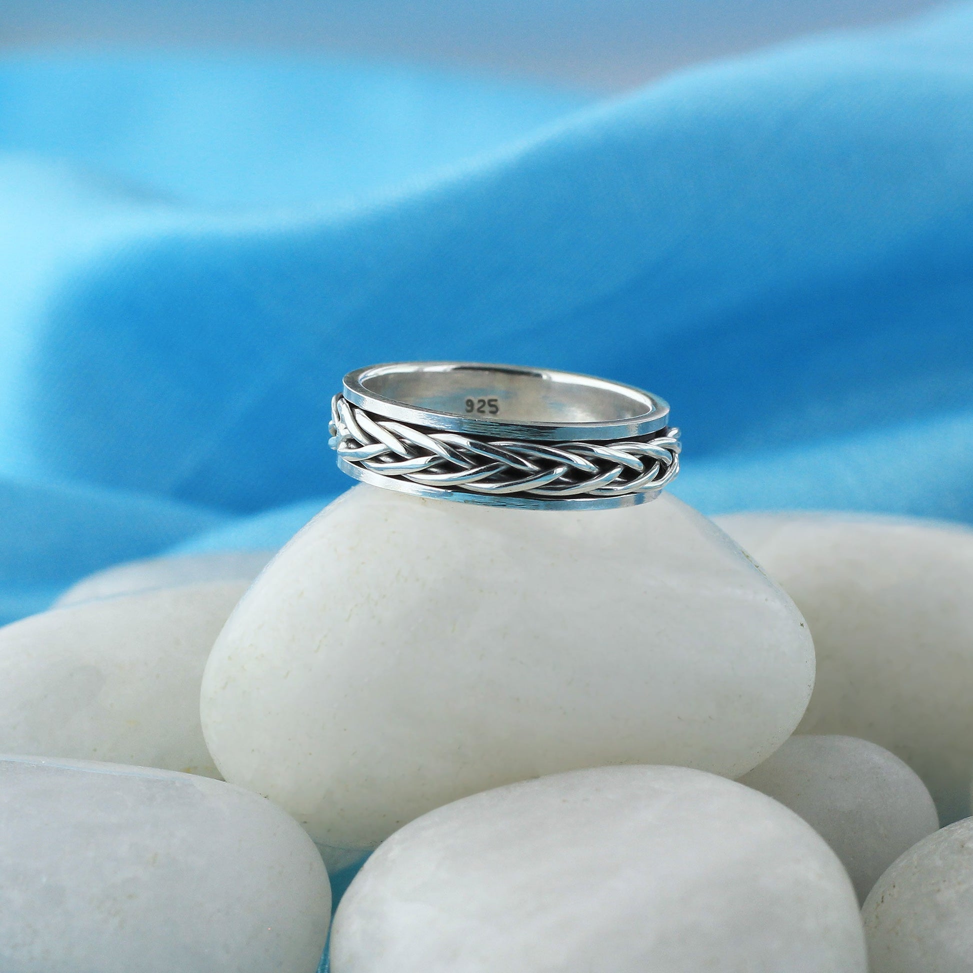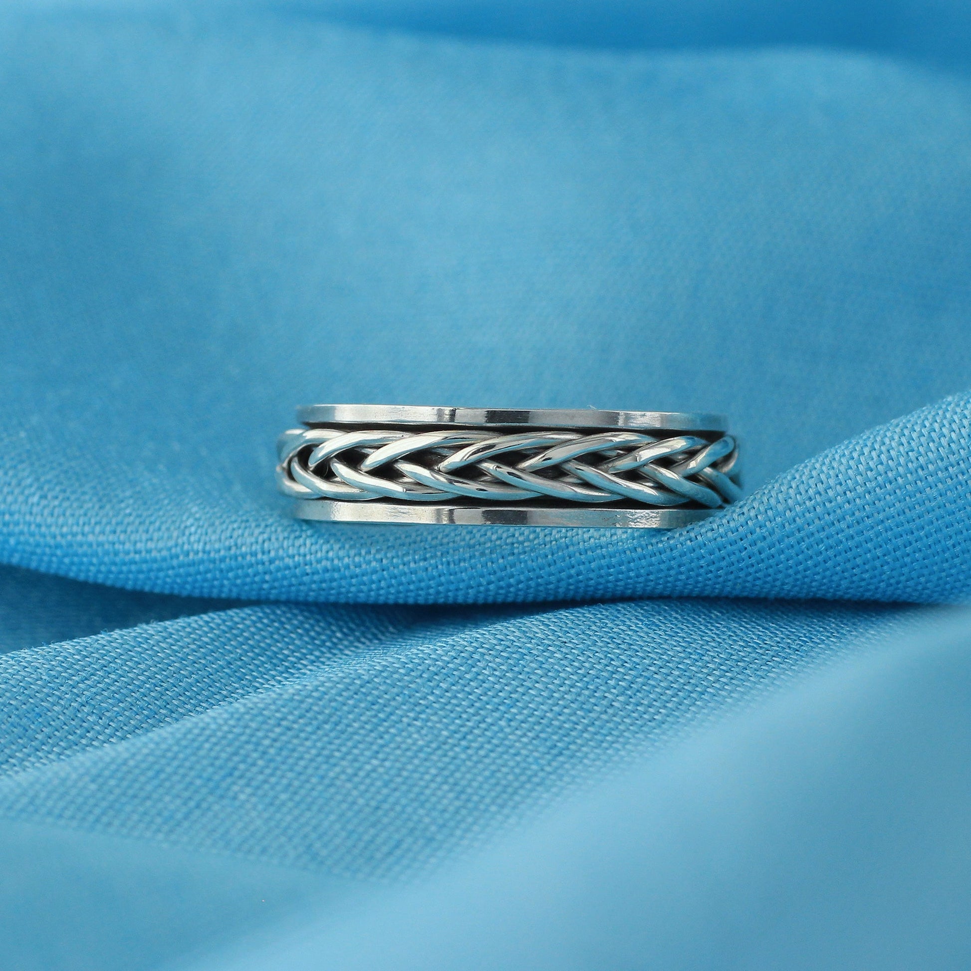 - description_tag : Discover the 925 Sterling Silver Braided Weave Spinner Fidget Ring, designed to reduce stress and anxiety. Featuring a stylish braided design and a smooth spinning function, this ring offers a calming experience. Perfect for men and women seeking elegance and relaxation in one unique accessory.