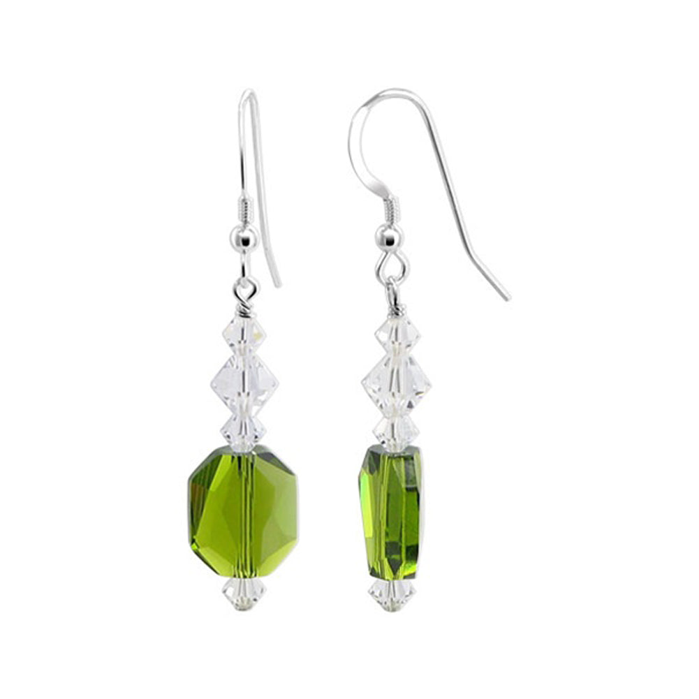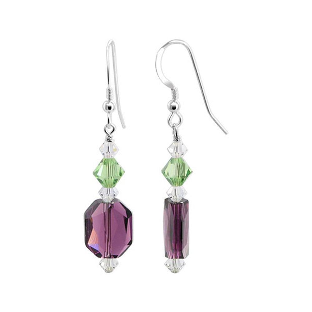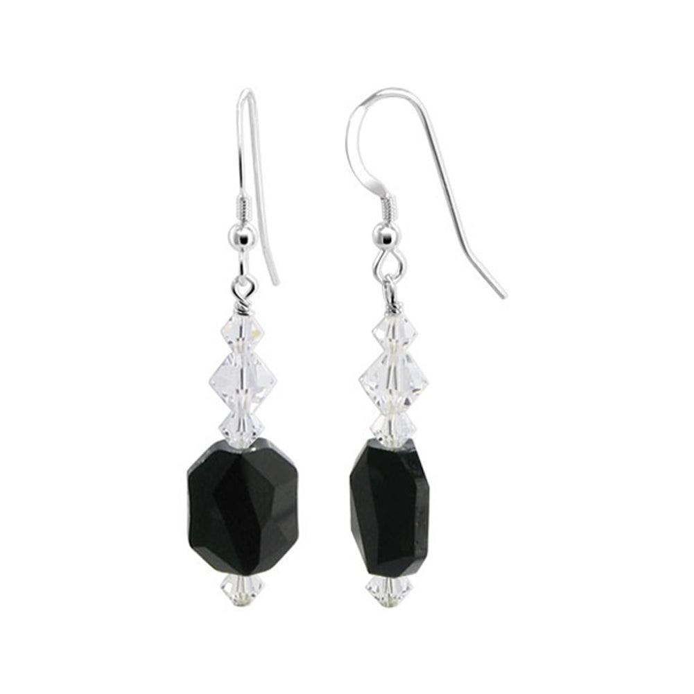 Exude elegance with the sparkly shimmer of these. 925 sterling silver drop earrings with multifaceted Austrian crystals. Each earring features two 5mm Bicone Austrian Crystals with a 3mm Bicone accent in between, all delicately set in high-quality sterling silver. The sterling silver French wire back findings add to their luxurious touch. With these earrings, you can add a touch of sophisticated glamour to any outfit, whether it's a formal occasion or a casual outing. Plus, the high-quality materials ensure they will last for years to come, making them a smart investment for any jewelry collection.